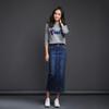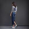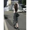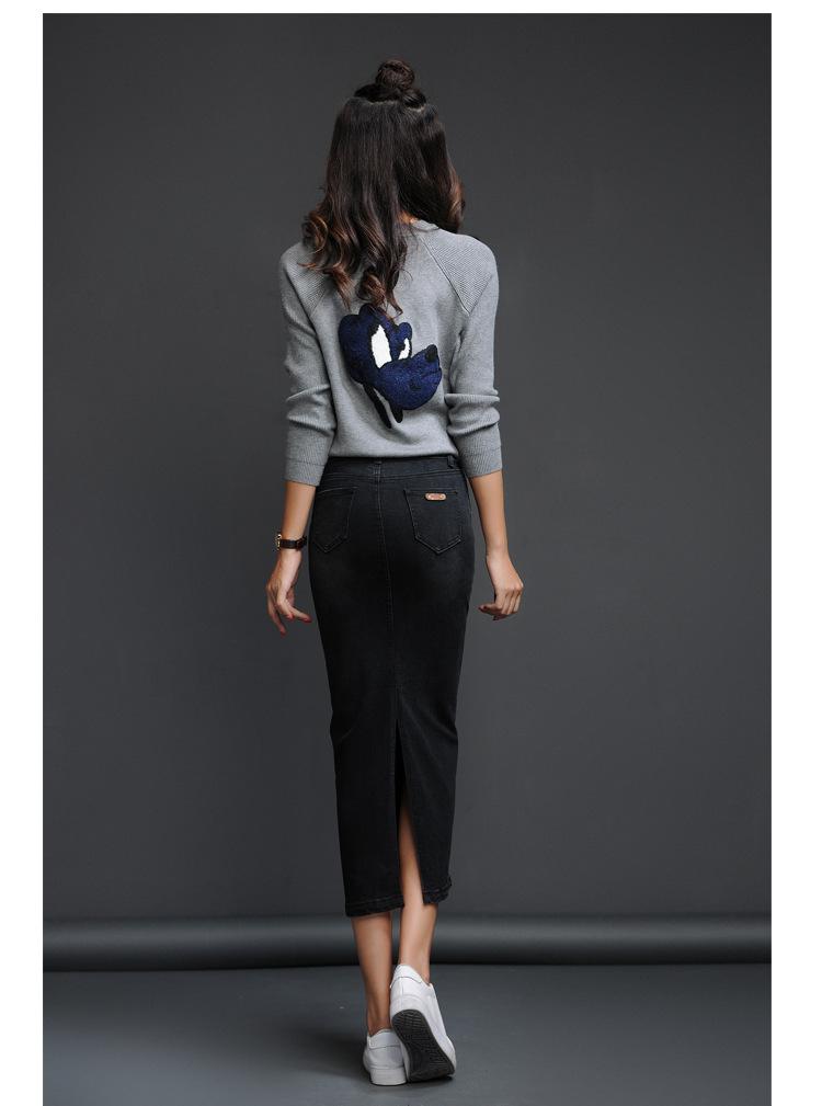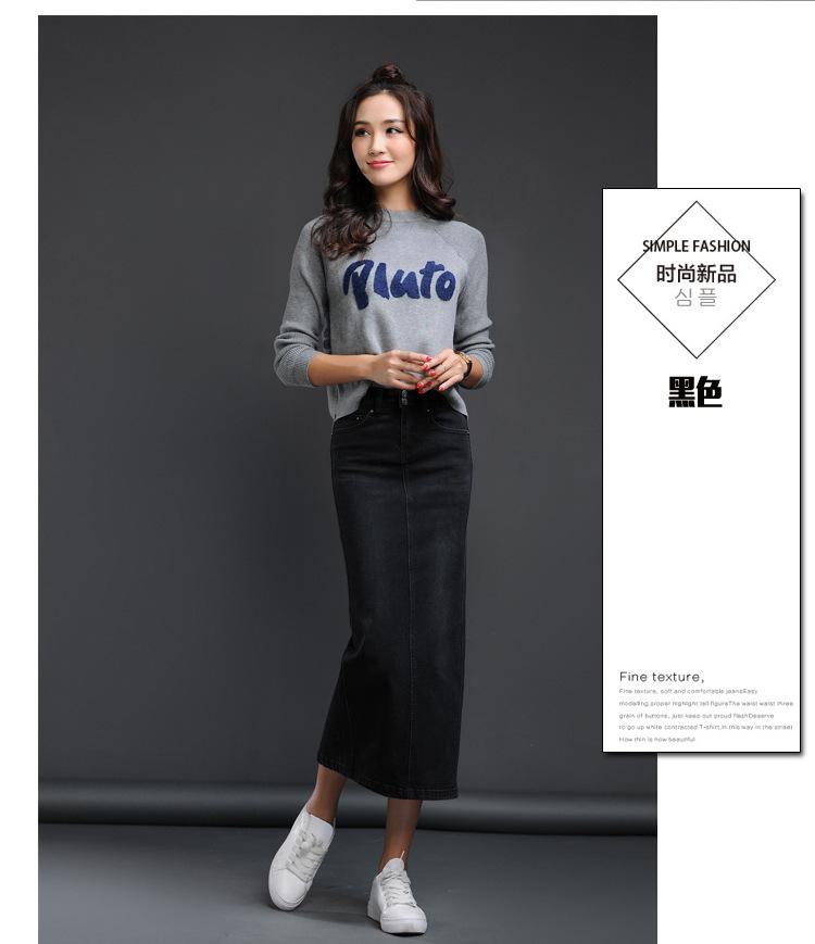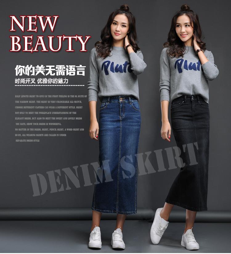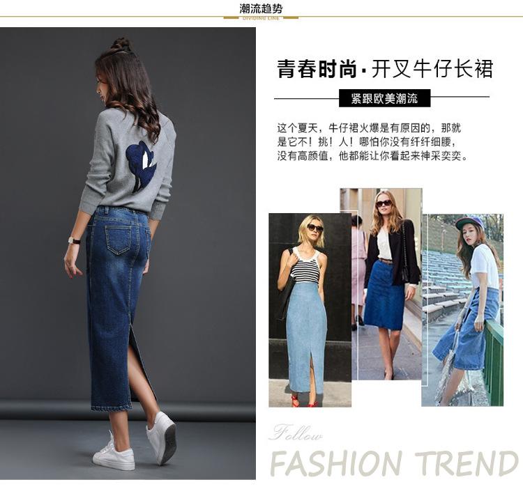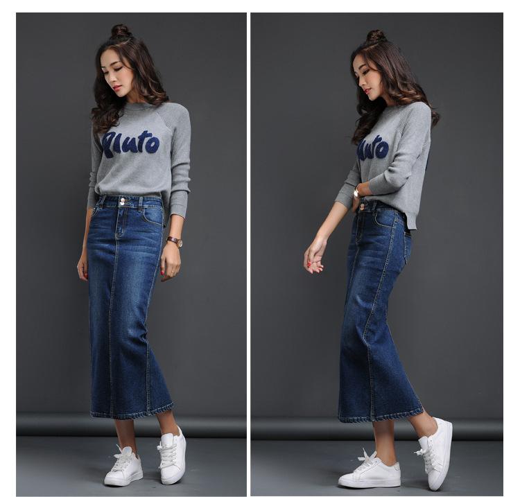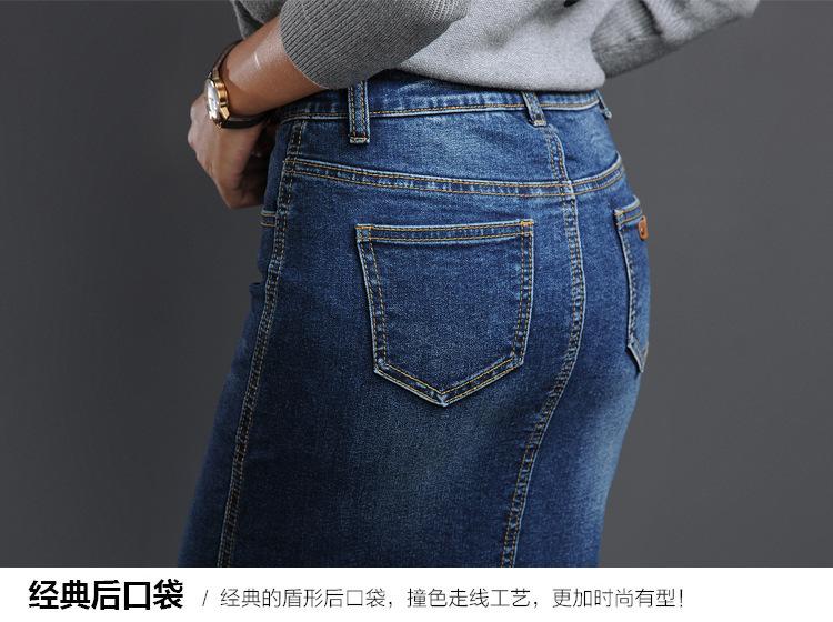 Falda de mezclilla de cintura alta para mujer 2025 Nuevo estilo coreano Falda elástica Falda midi con abertura trasera Falda que cubre los brazos