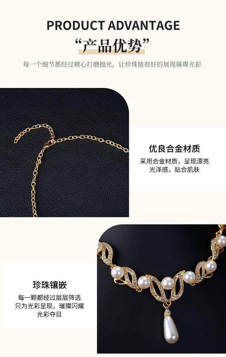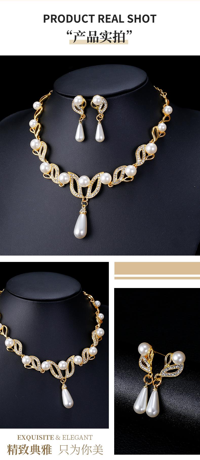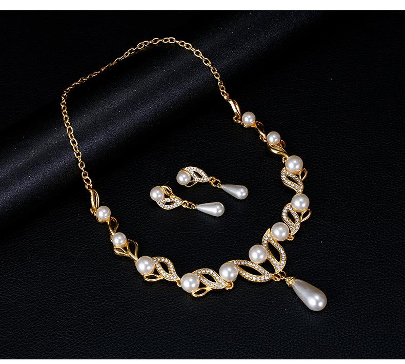 Set de Collar y Aretes de Perlas con Forma de Hoja y Gota de Agua, Elegantes Accesorios de Aleación para Banquete Nupcial, Joyería, Forma de Gota de Agua