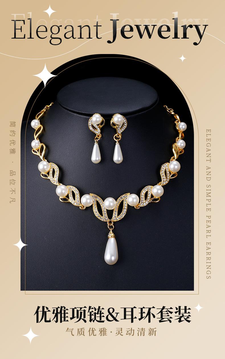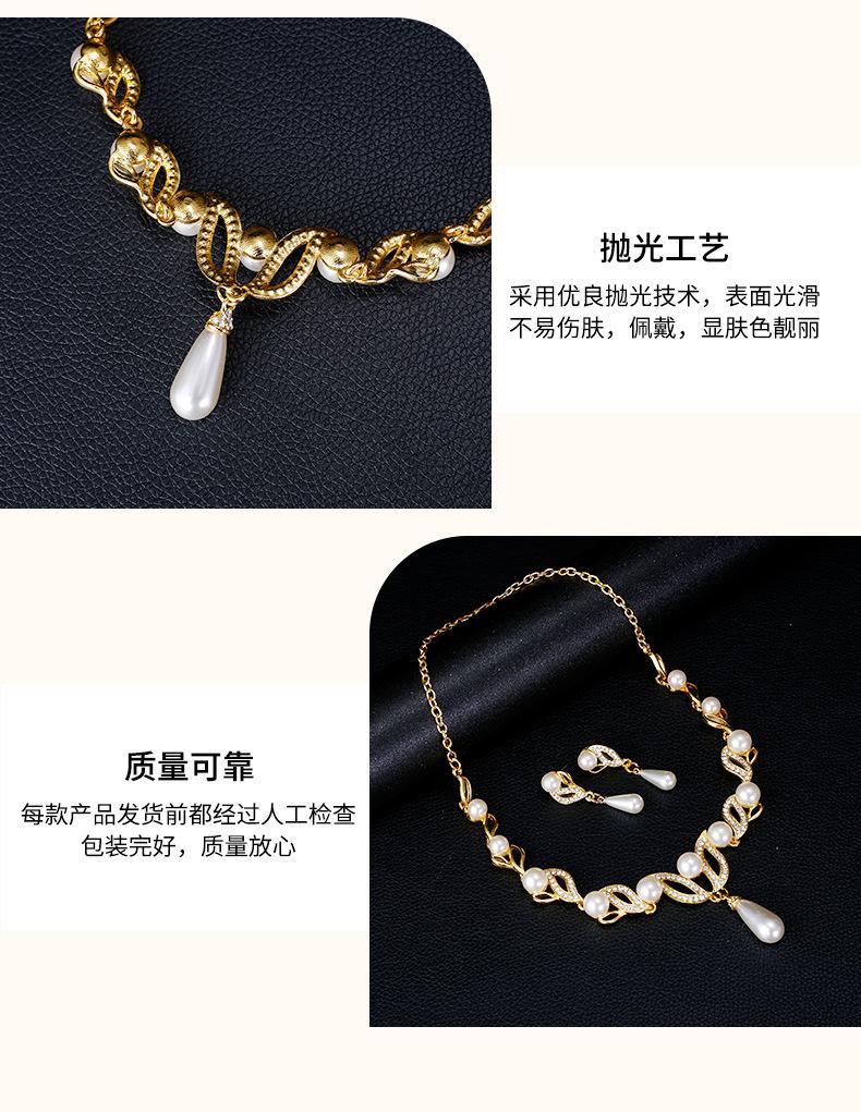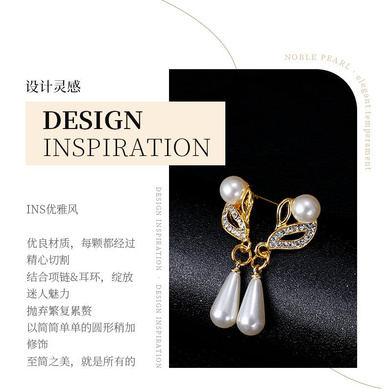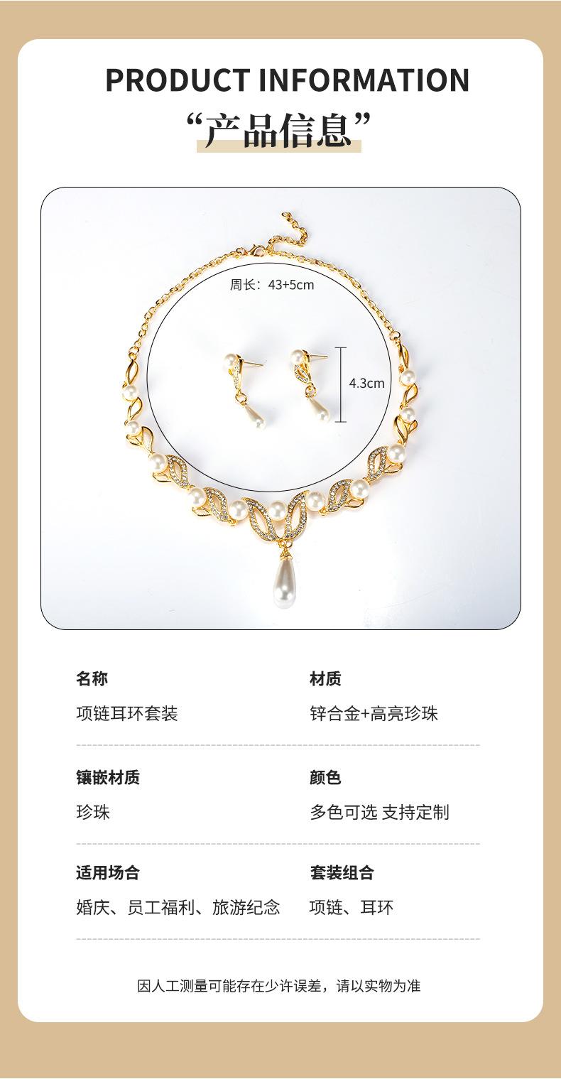 Set de Collar y Aretes de Perlas con Forma de Hoja y Gota de Agua, Elegantes Accesorios de Aleación para Banquete Nupcial, Joyería, Forma de Gota de Agua