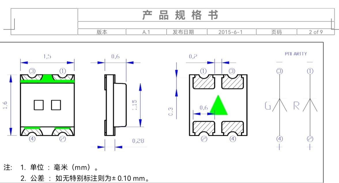 SMD 0603 rojo verde esmeralda bicolor 1615 rojo verde bicolor LED Rojo verde puro bicolor lámpara perlas diodo emisor de luz