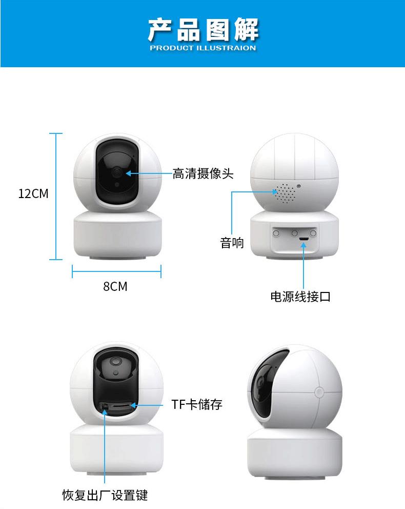 Cámara de vigilancia inteligente wifi HD para interiores, 1080p, control remoto inalámbrico, cámara web para el hogar