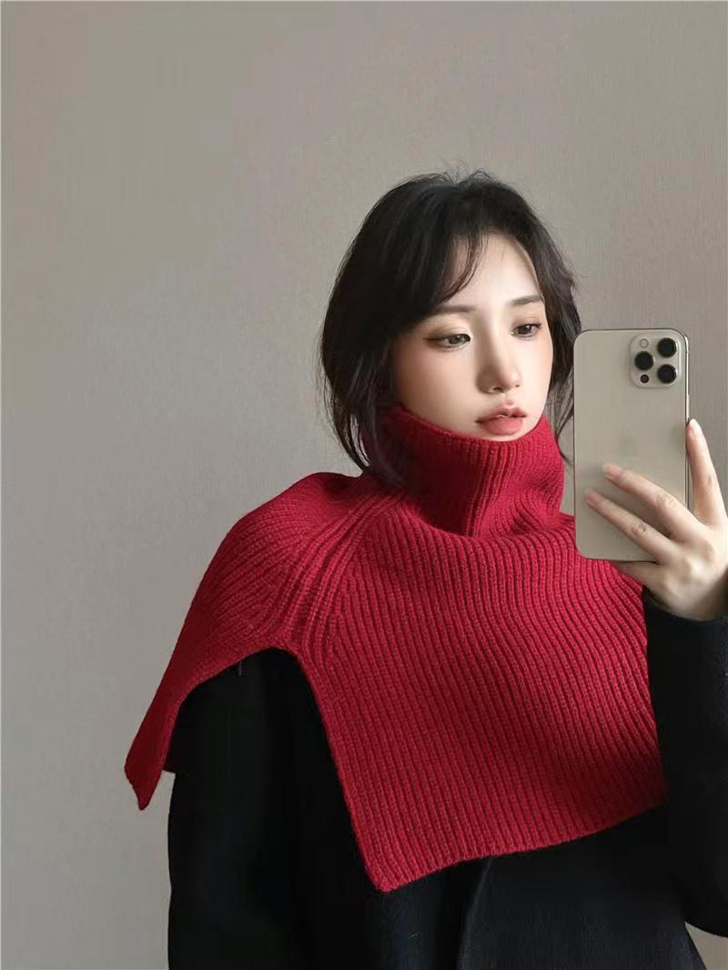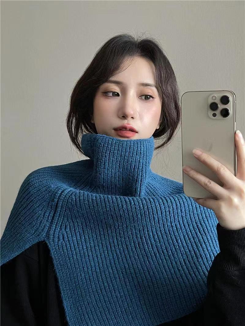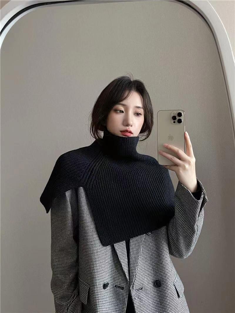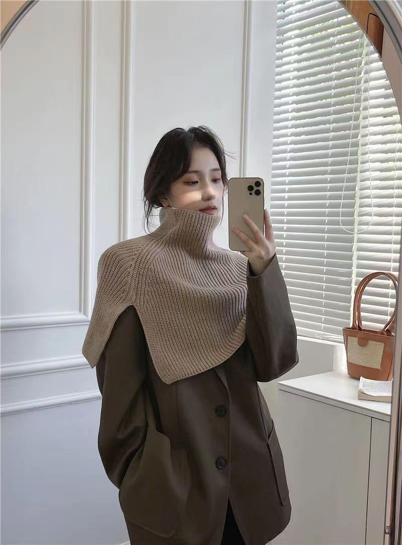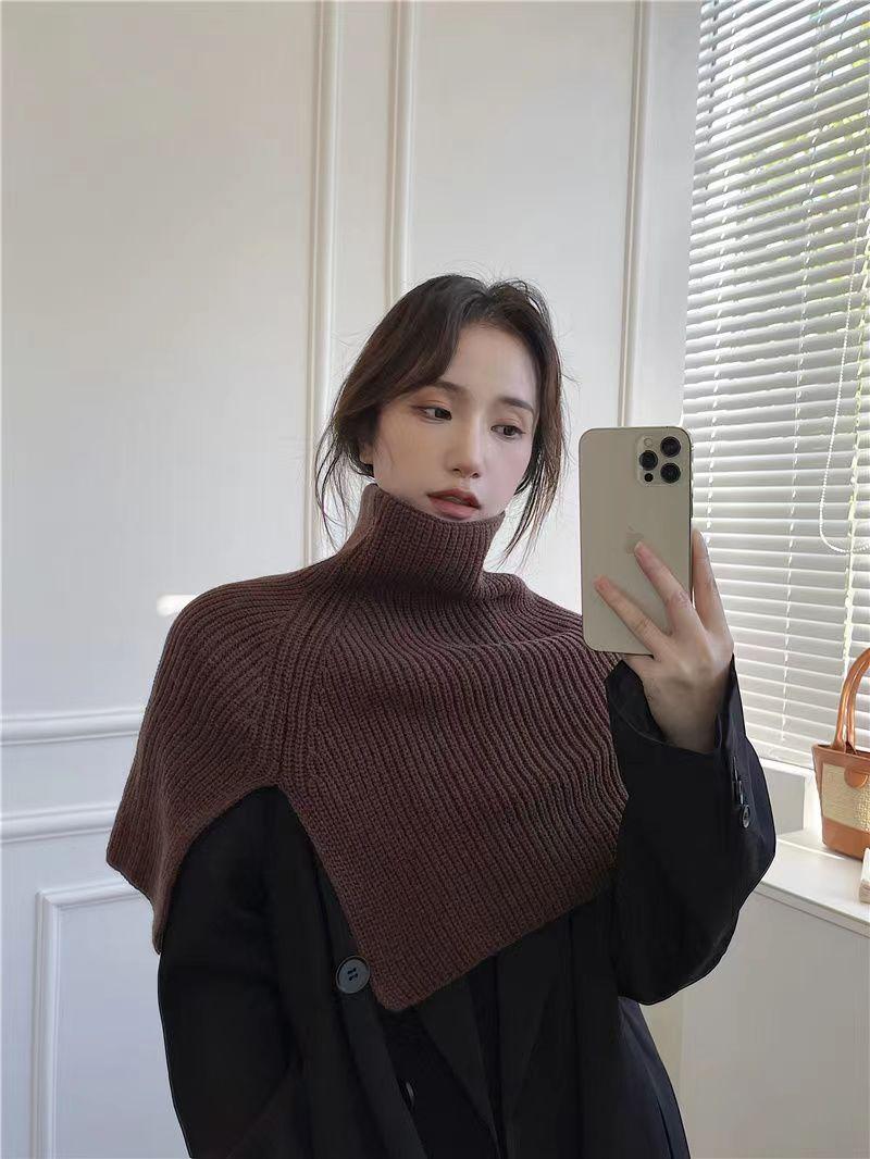 Chal para mujer otoño e invierno ropa exterior cálida suéter bufanda cuello alto bufanda dividida de punto hombrera estilo coreano estilo occidental capa