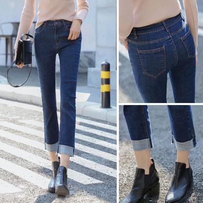 Ventas directas de fábrica 2020 versión coreana alta elasticidad talla grande puño borde crudo jeans moda mujer recto nueve puntos pantalones de mujer