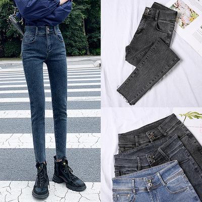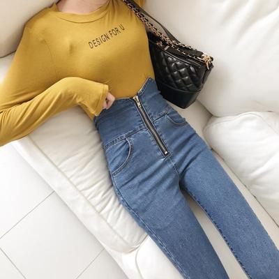 Jeans de celebridad de internet para mujer 2019 primavera y otoño súper cintura alta corte ajustado pantalones HyunA ajustados de nueve puntos tendencia
