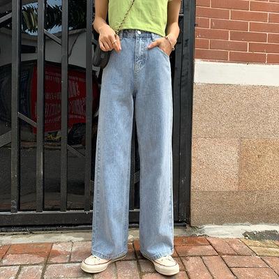 Pantalones rectos de pierna ancha de cintura súper alta 2020 nuevos para combinar con todo para mujer, holgados y ajustados, jeans de doble cintura con borde crudo de celebridad de internet