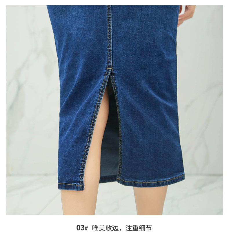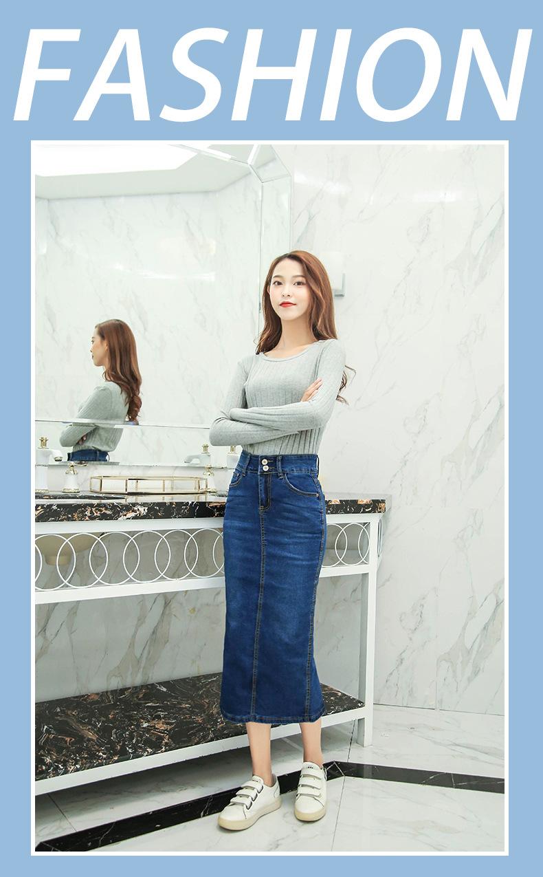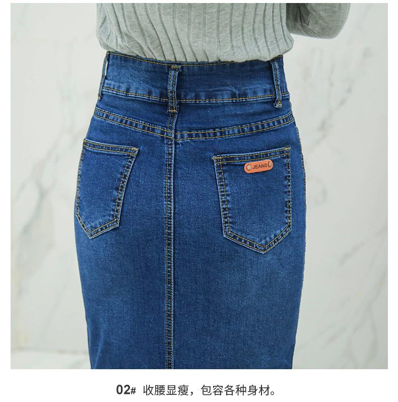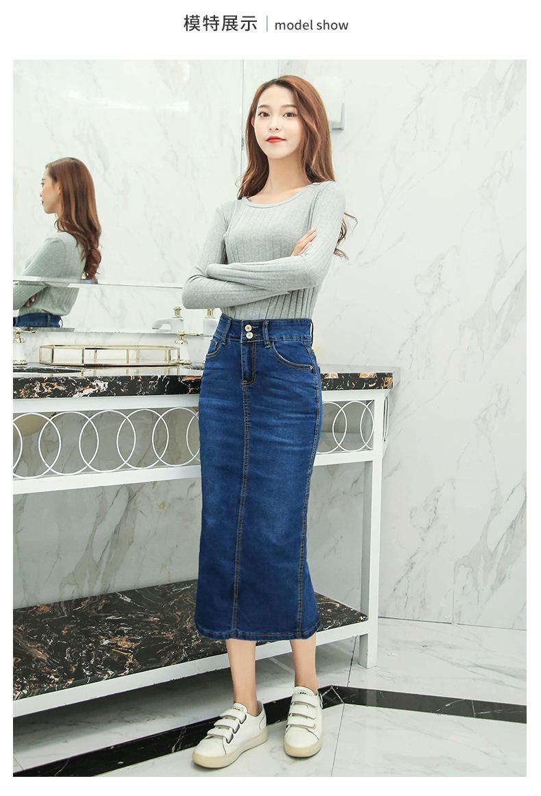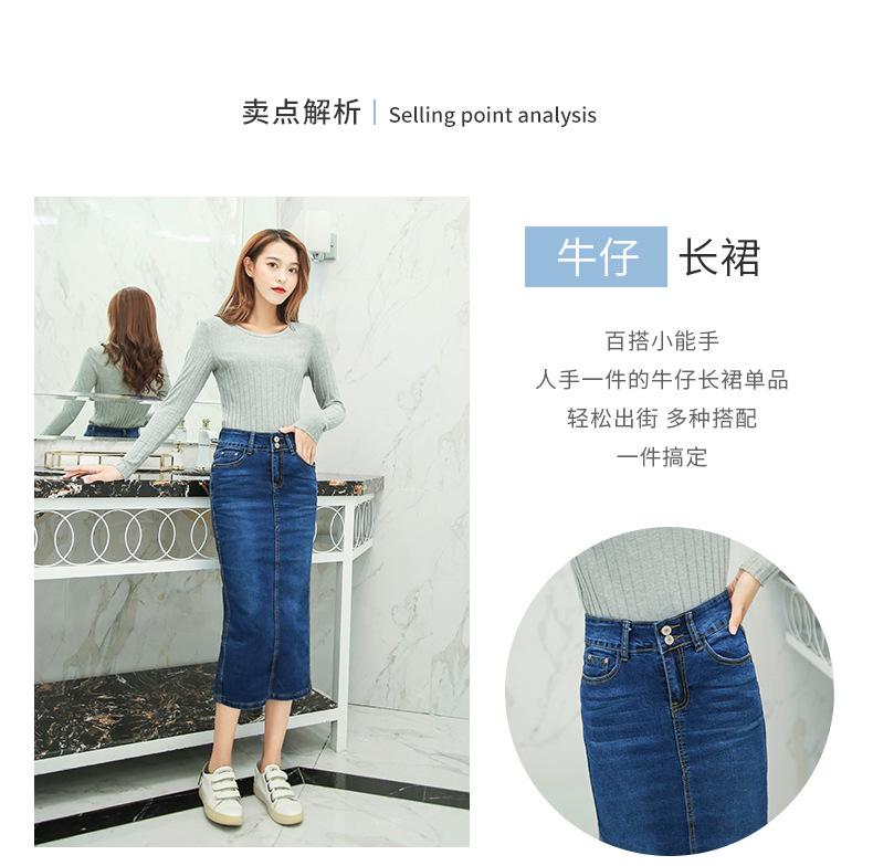 Suministro transfronterizo de falda de mezclilla elástica de cintura alta adelgazante estilo europeo y americano otoño e invierno 2019 para mujer con abertura trasera en la cadera falda larga