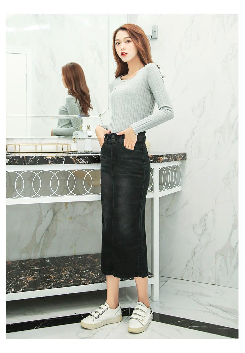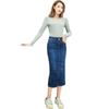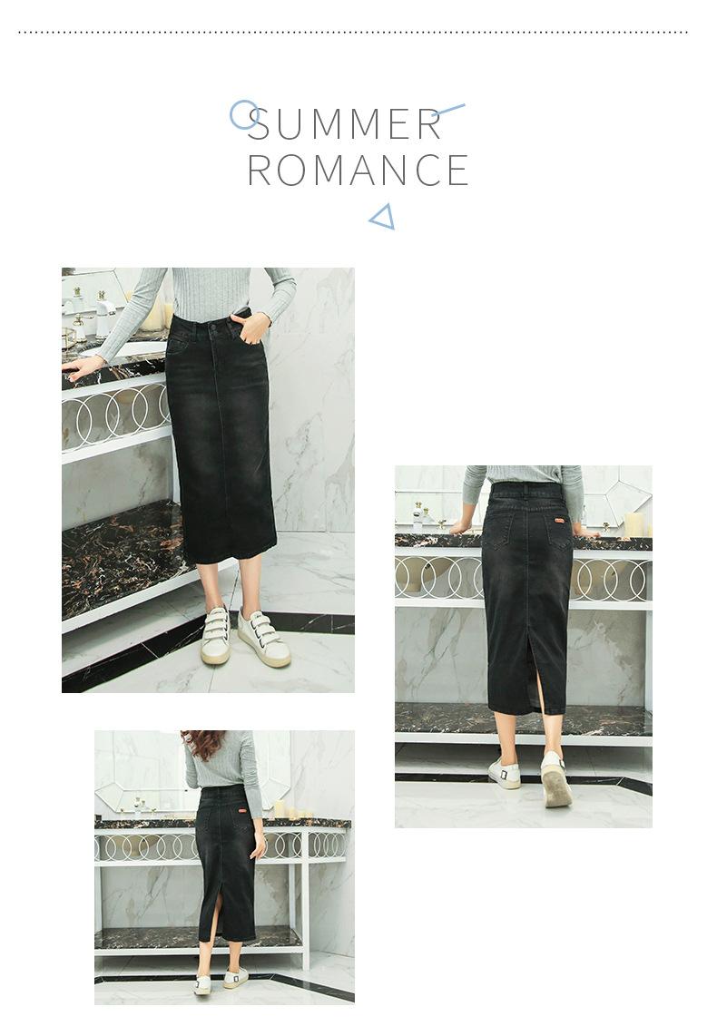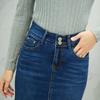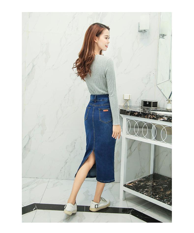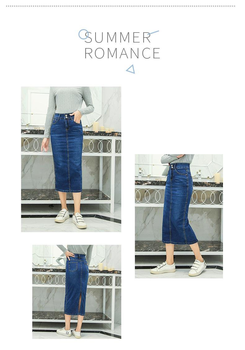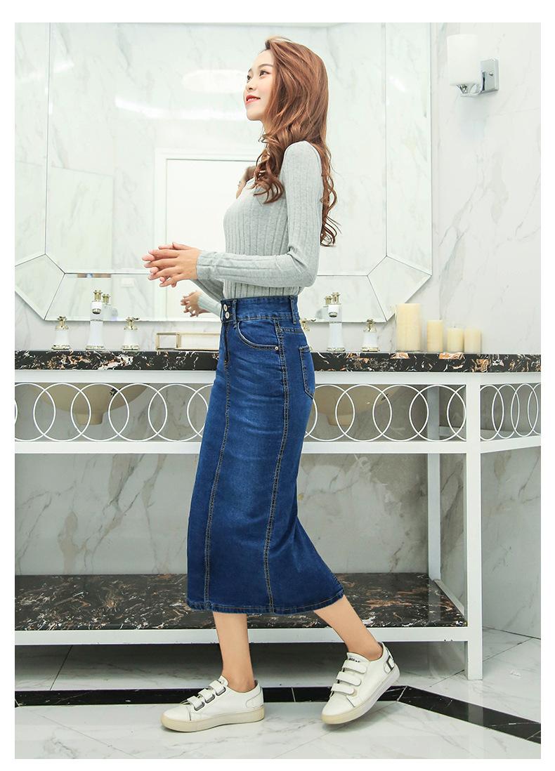 Suministro transfronterizo de falda de mezclilla elástica de cintura alta adelgazante estilo europeo y americano otoño e invierno 2019 para mujer con abertura trasera en la cadera falda larga