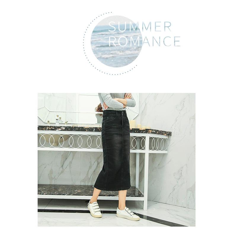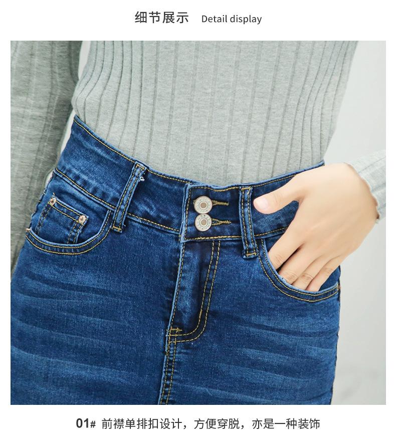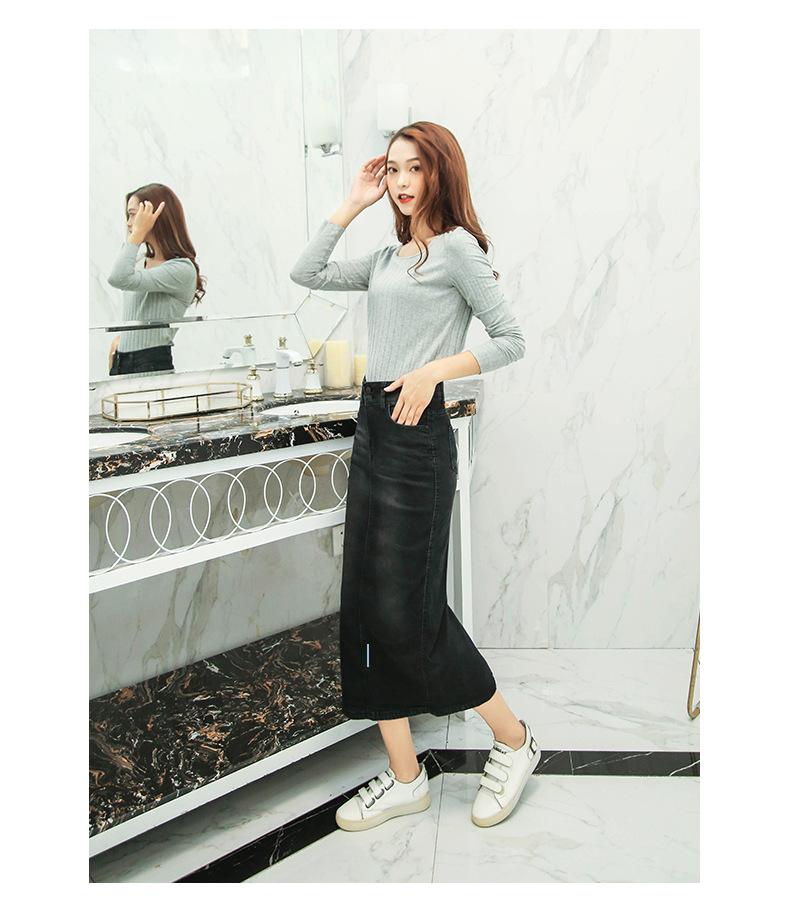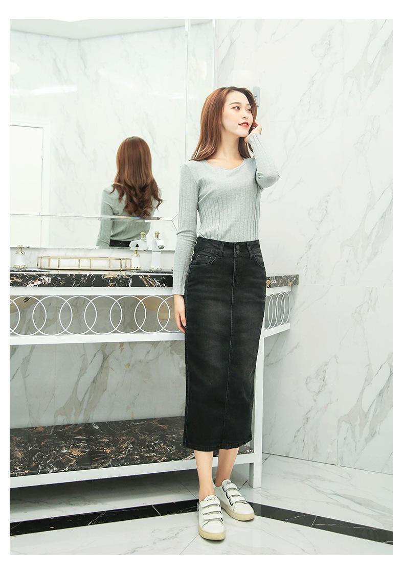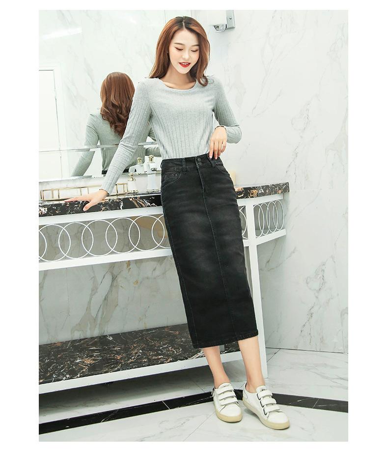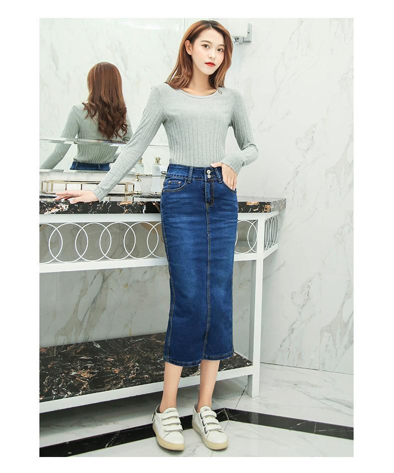 Suministro transfronterizo de falda de mezclilla elástica de cintura alta adelgazante estilo europeo y americano otoño e invierno 2019 para mujer con abertura trasera en la cadera falda larga