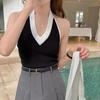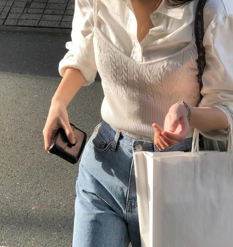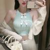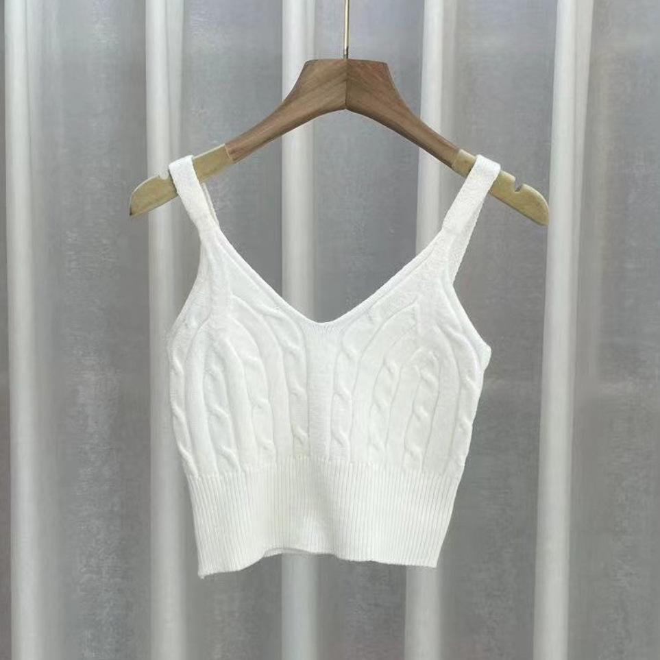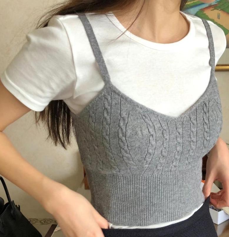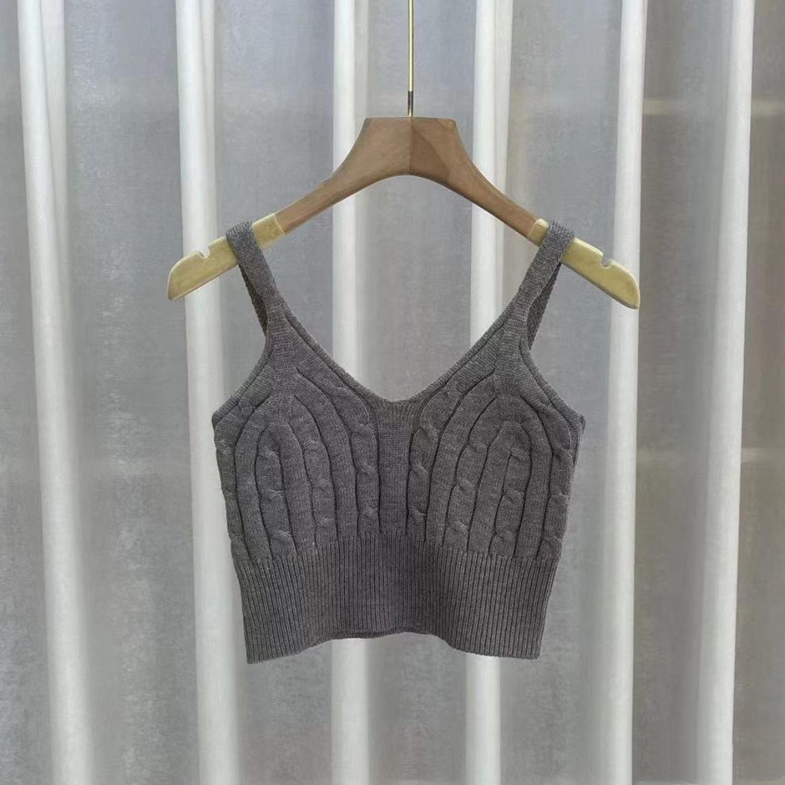 Chaleco de punto apilado de primavera 2024, nuevo estilo, para mujer, cuello en V, cintura alta, corto, interior, pequeño, con tirantes, prenda exterior.