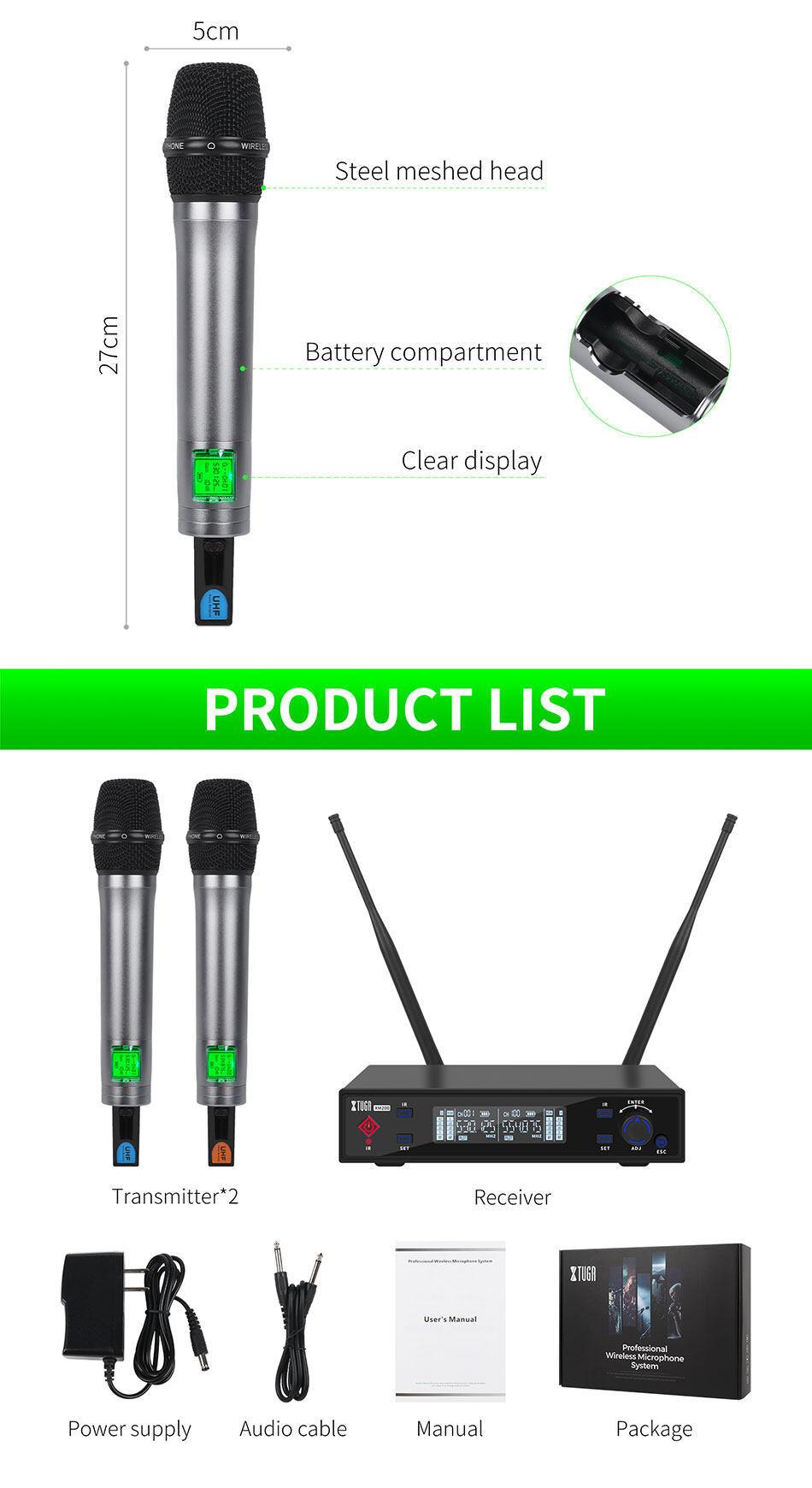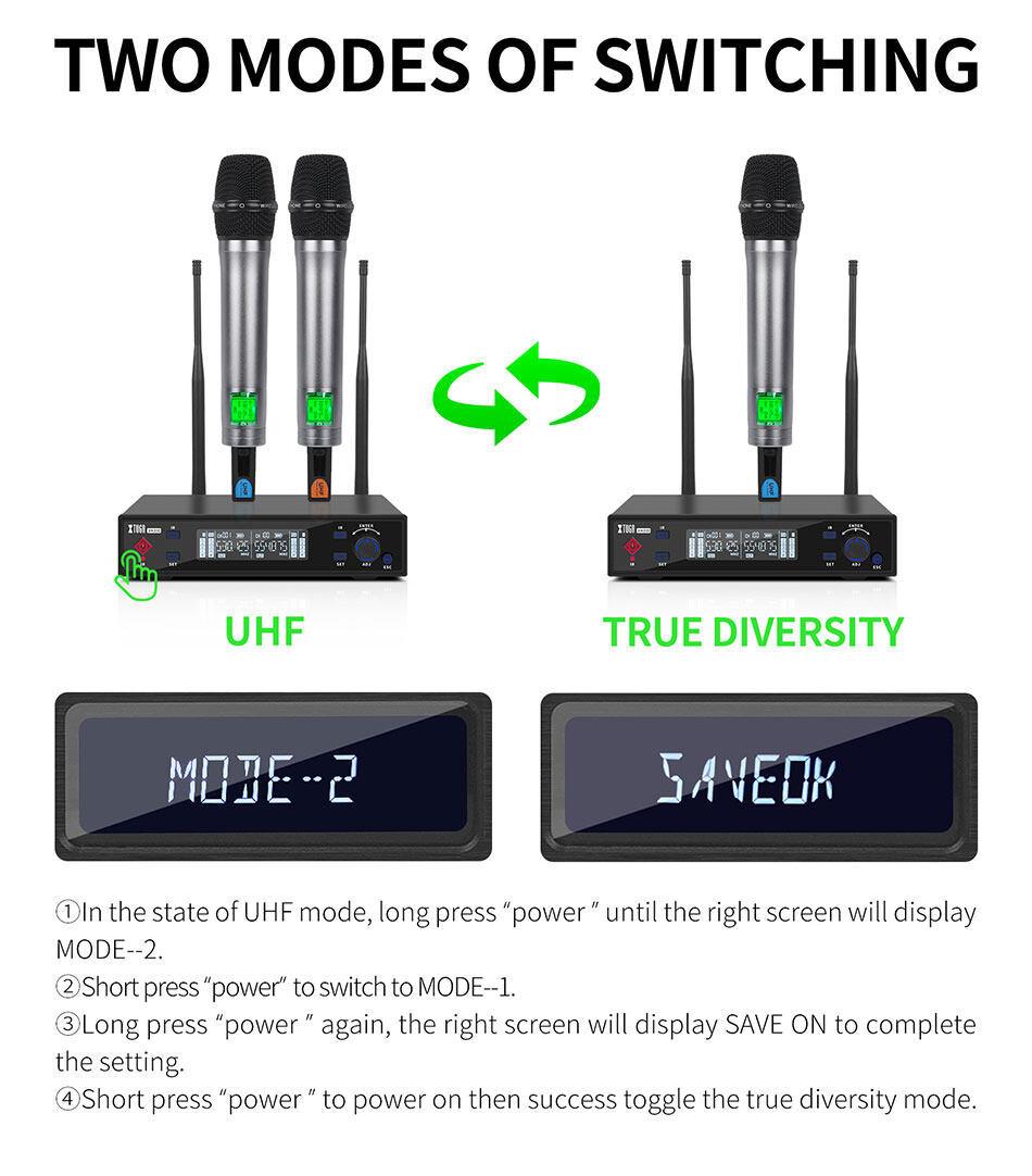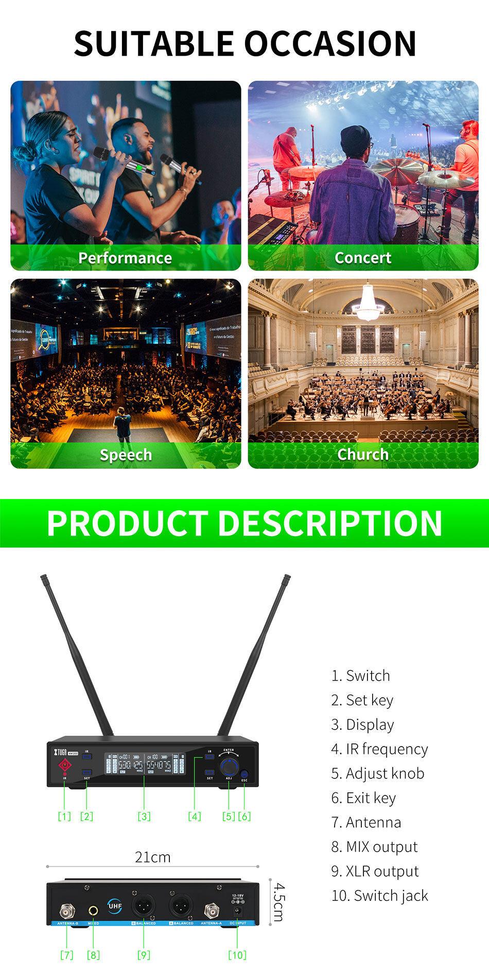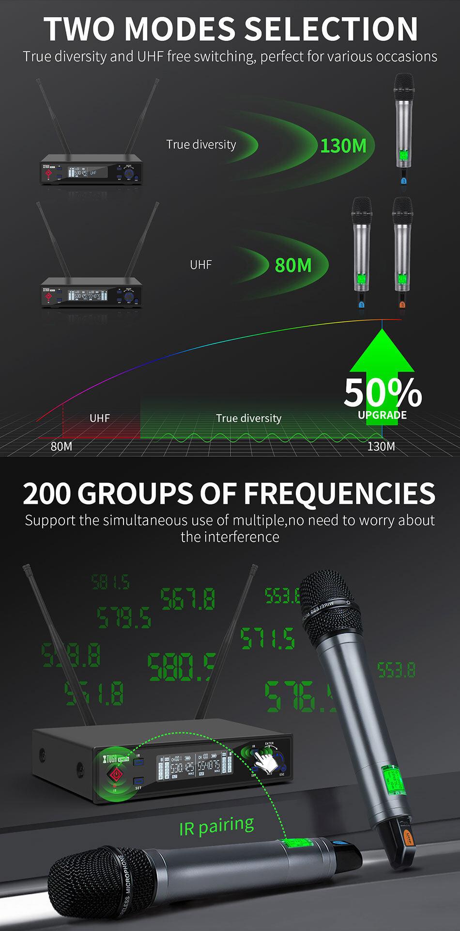 Micrófono de mano metálico profesional de doble canal de segmento U de modo dual de arrastre transfronterizo, micrófono de frecuencia infrarroja, precio al por mayor