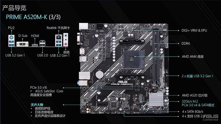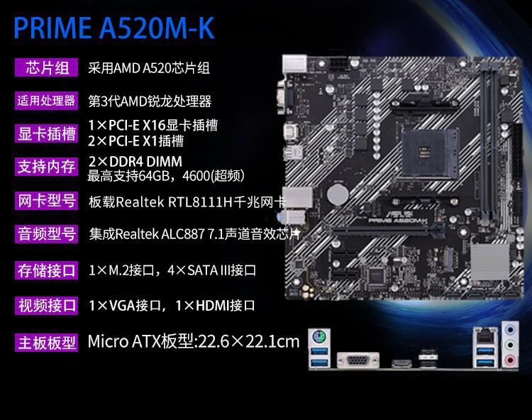 Computadora de escritorio Asus A520M-K para juegos, placa base de oficina compatible con CPU con interfaz AMD 5500AM4