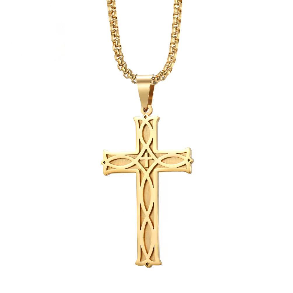 Comercio electrónico transfronterizo, collar con cruz de nudo irlandés, acero de titanio, colgante sencillo y moderno para hombre, estilo de pareja a juego, color resistente.