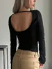 Ropa Europea y Americana 2023 Otoño Versátil Asimétrico Slim Top de Fondo Camiseta Cuello Redondo Color Puro Slim Mangas Largas