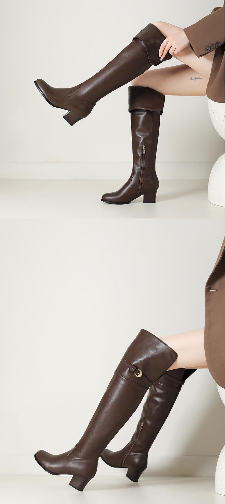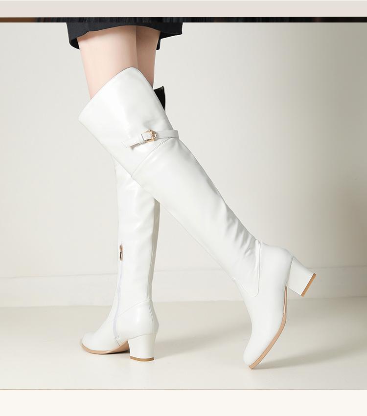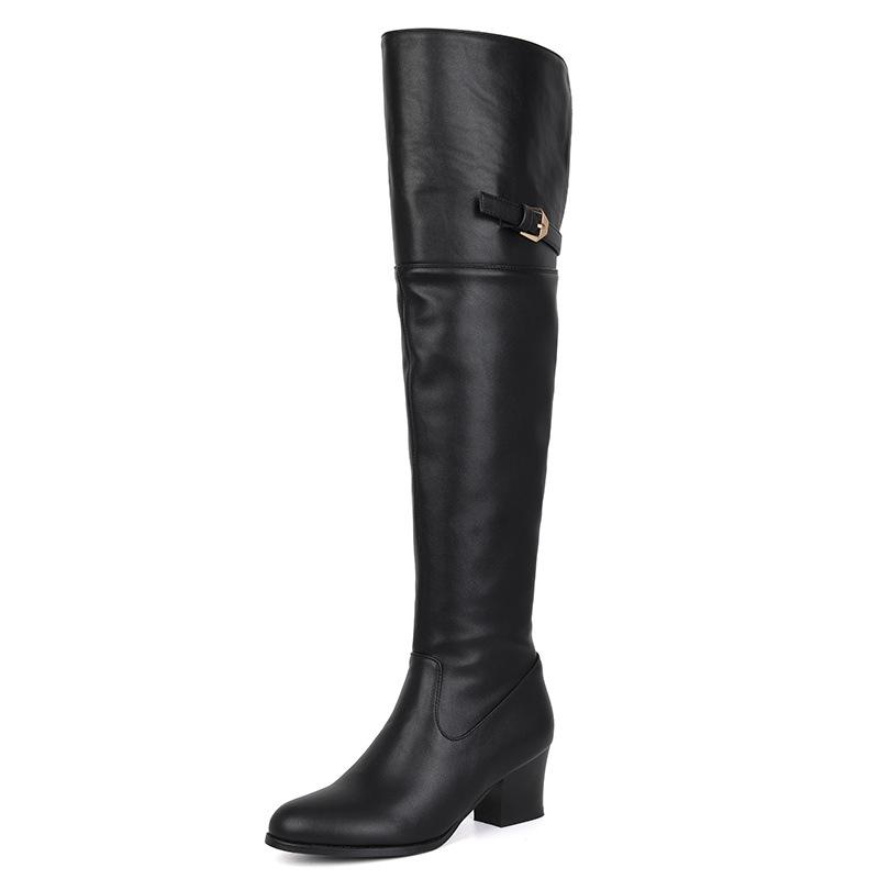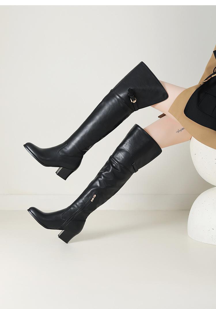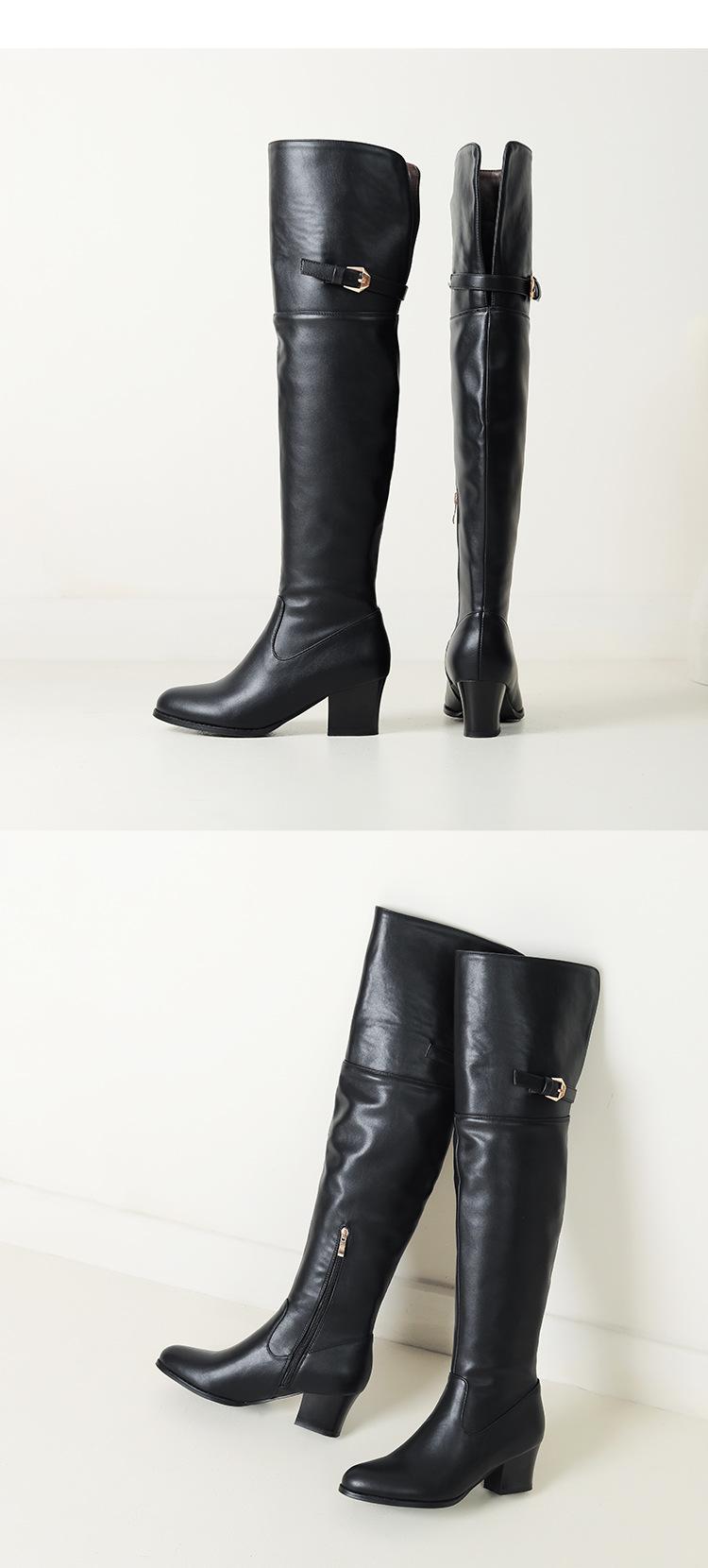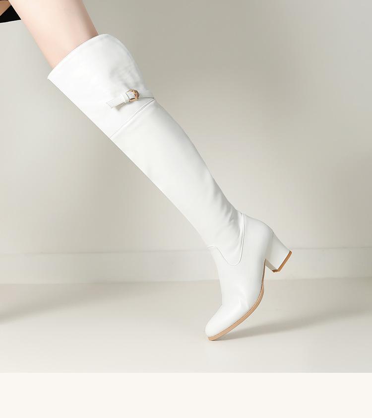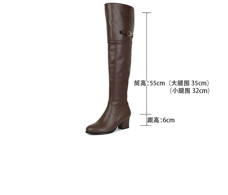 33 -- 43 botas de talla grande punta redonda tacón grueso hebilla de cinturón botas hasta la rodilla otoño e invierno nuevas botas de tacón alto para mujer zapatos transfronterizos de comercio exterior