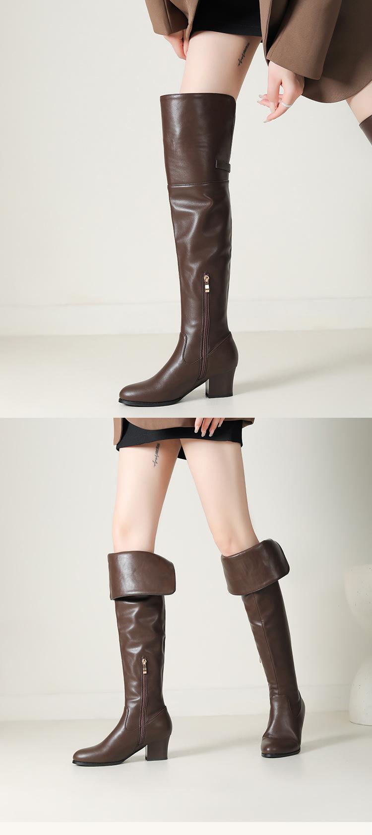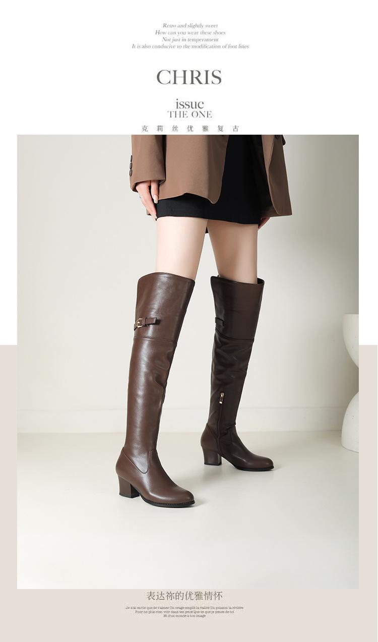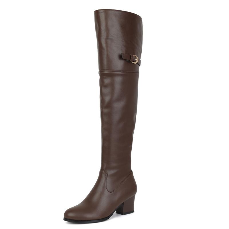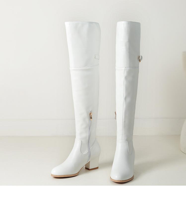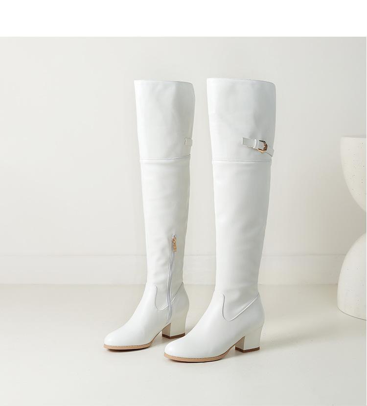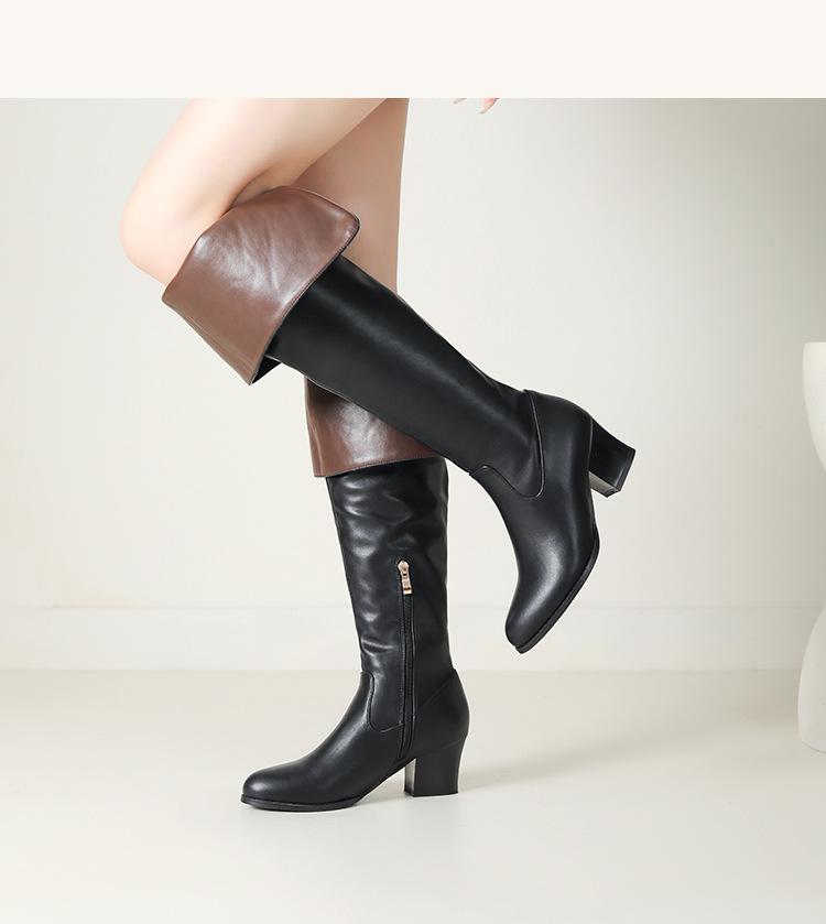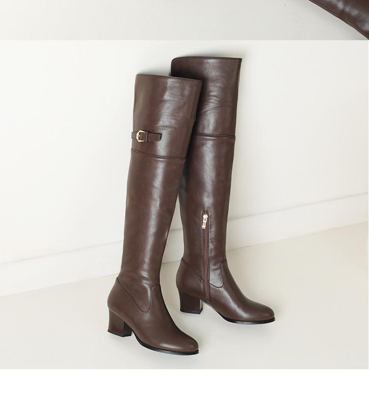 33 -- 43 botas de talla grande punta redonda tacón grueso hebilla de cinturón botas hasta la rodilla otoño e invierno nuevas botas de tacón alto para mujer zapatos transfronterizos de comercio exterior