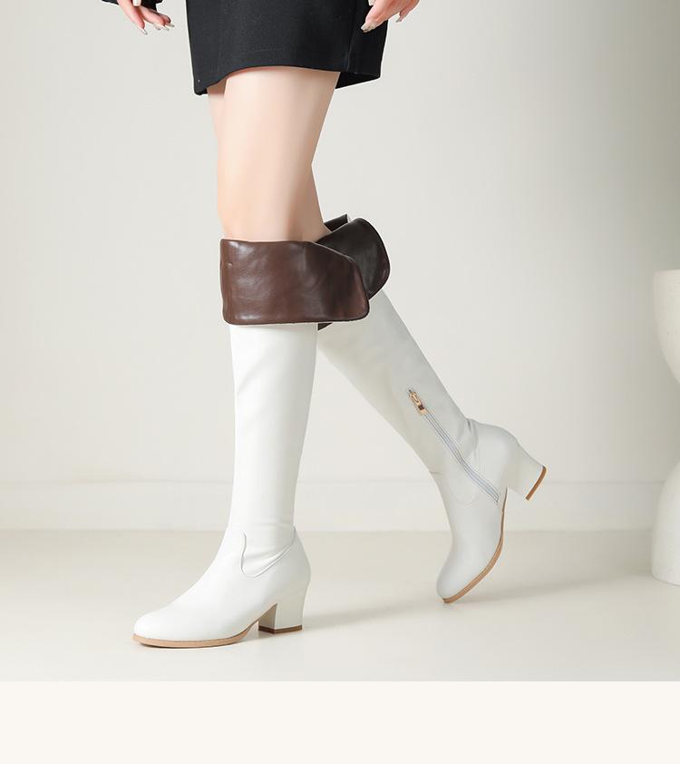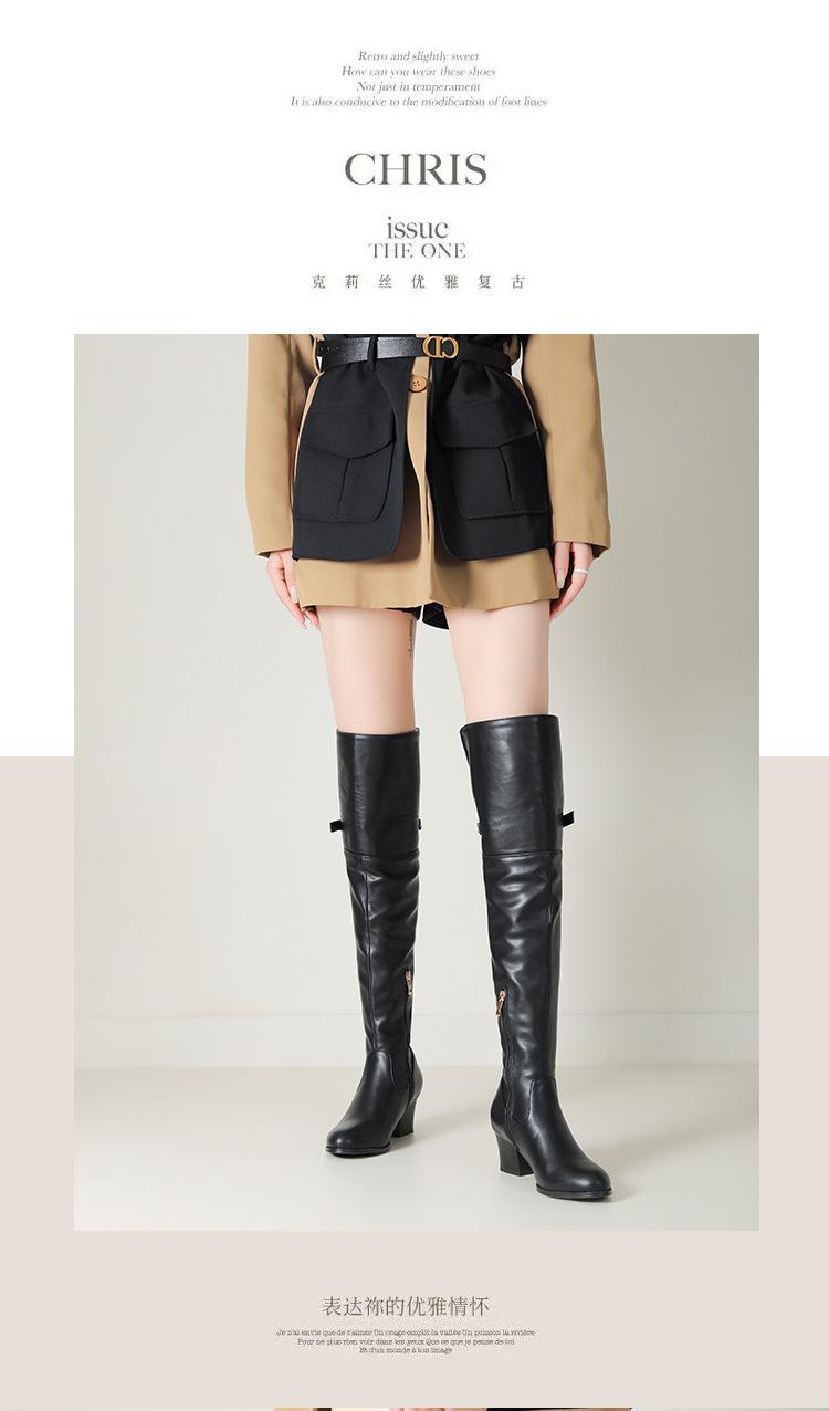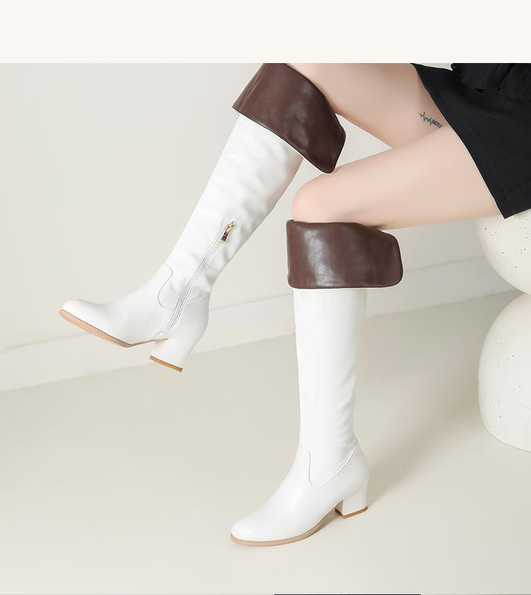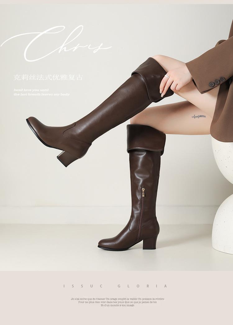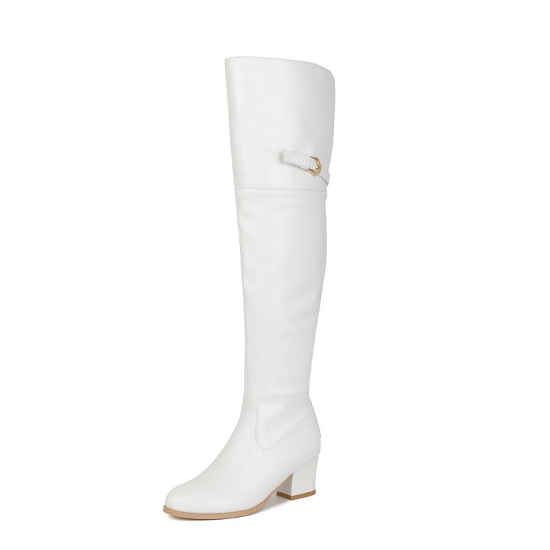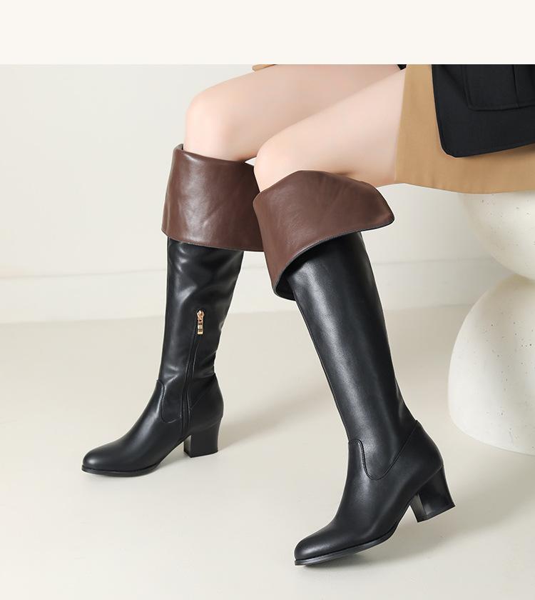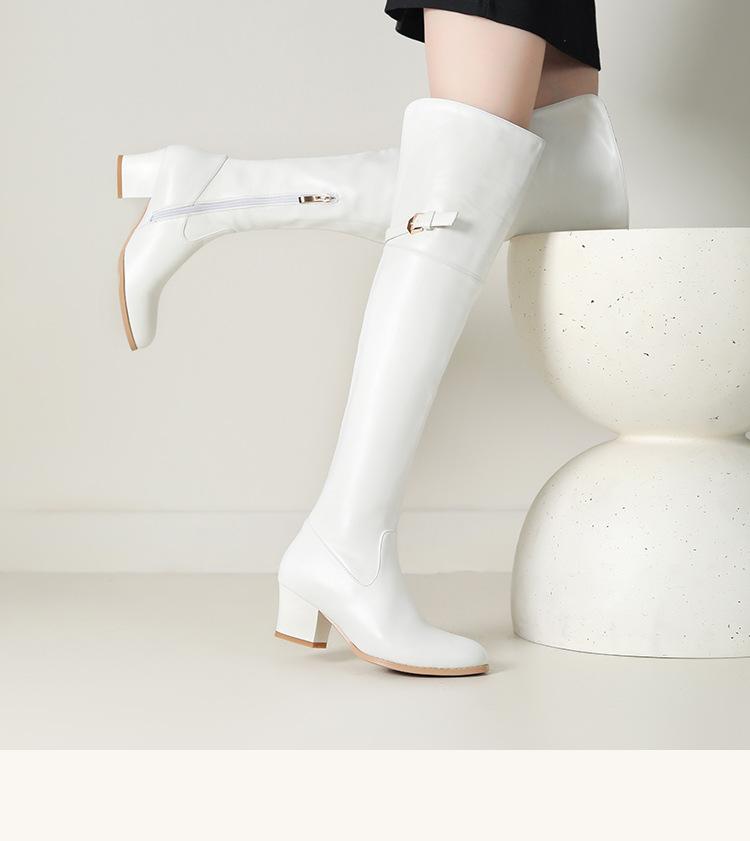 33 -- 43 botas de talla grande punta redonda tacón grueso hebilla de cinturón botas hasta la rodilla otoño e invierno nuevas botas de tacón alto para mujer zapatos transfronterizos de comercio exterior