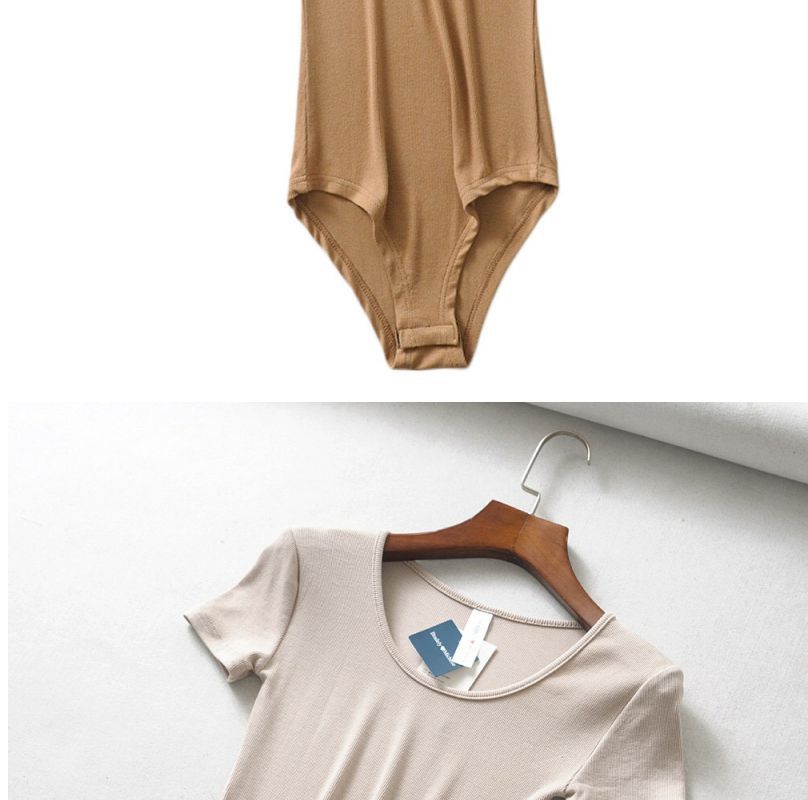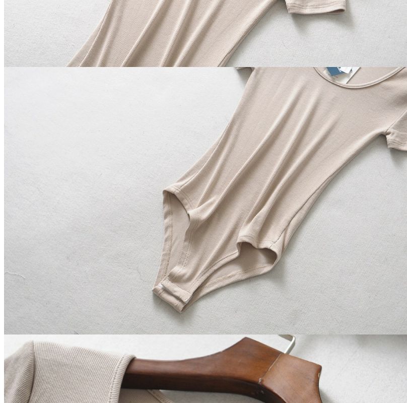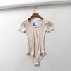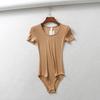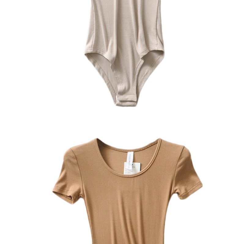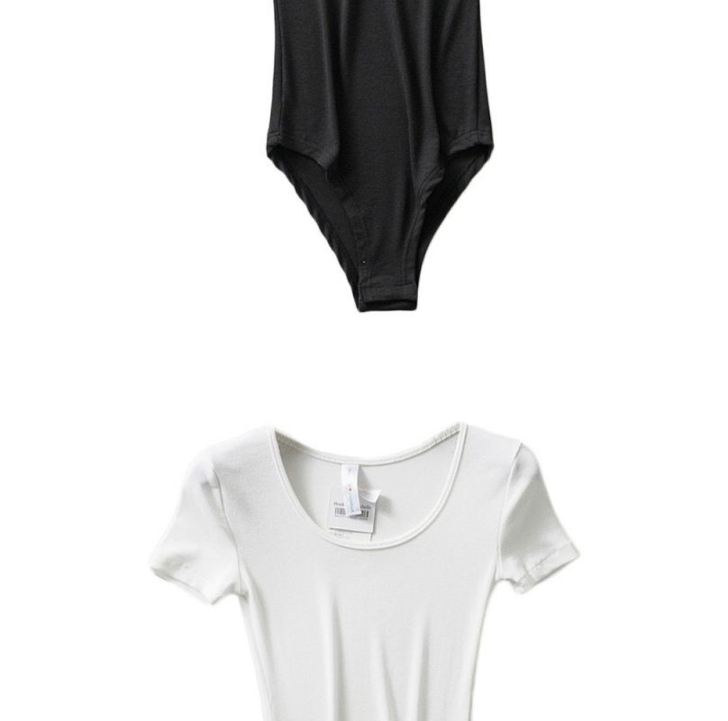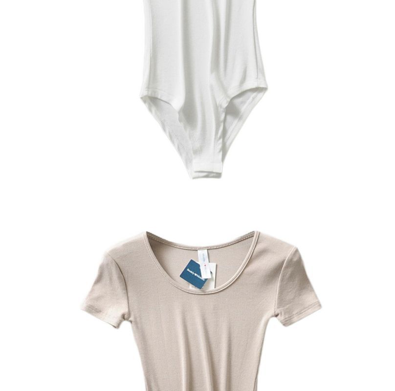 Mono de camiseta de manga corta con cuello redondo bajo y adelgazante estilo retro INS de estilo europeo y americano de nicho, ropa interior de moda de verano para mujer