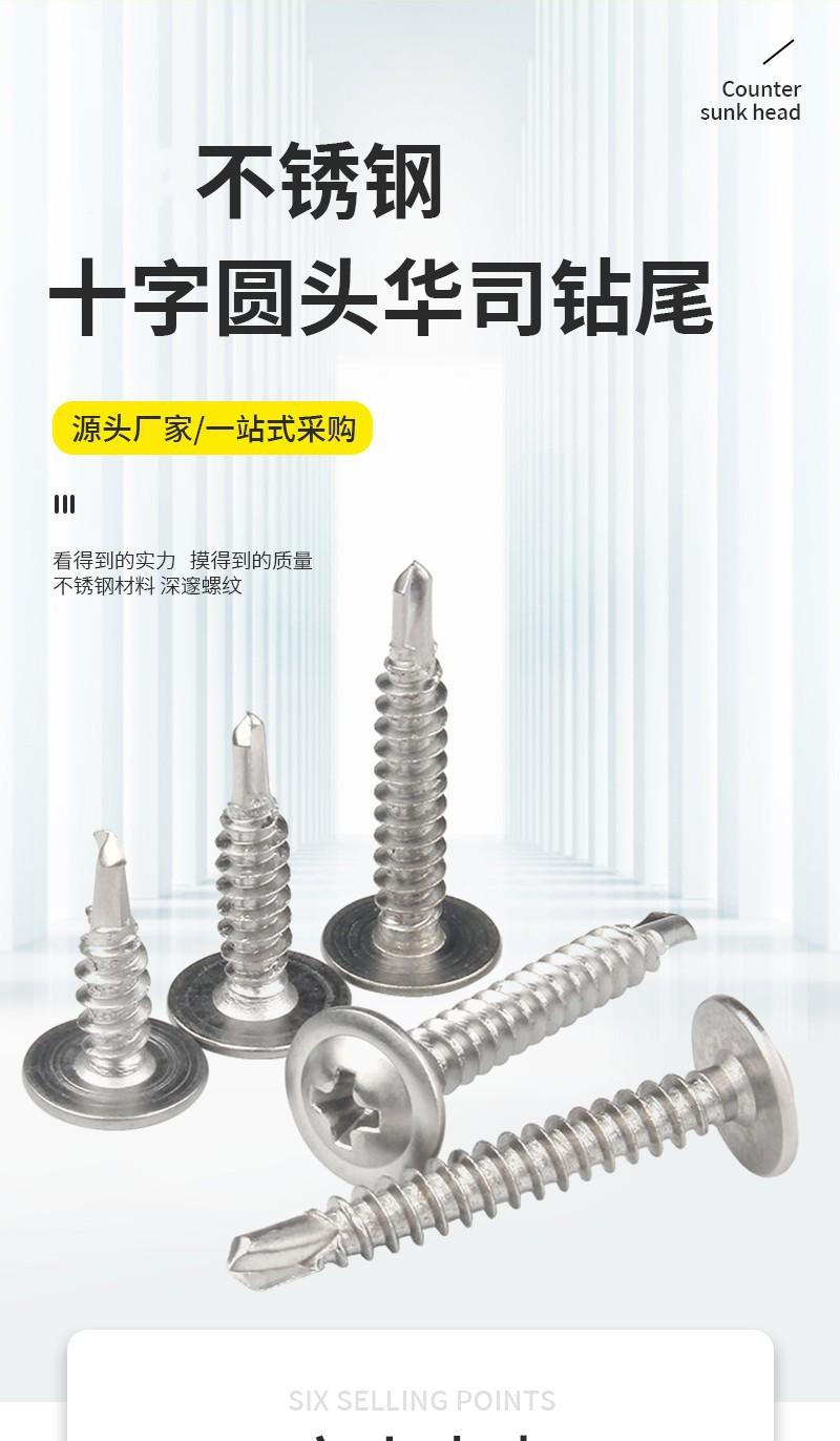 410 tornillo de cola de taladro de cabeza plana grande acero inoxidable 304 acolchado autorroscante autoperforante cruz cabeza redonda wasi tornillo de cola de milano