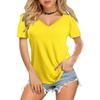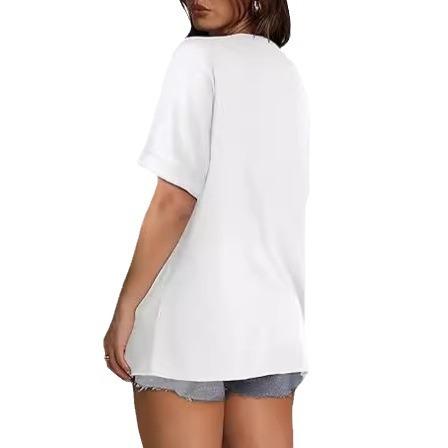 Camiseta informal de manga corta para mujer de Amazon, verano 2024, comercio exterior, estilo europeo y americano, holgada, color liso, con cuello en V.