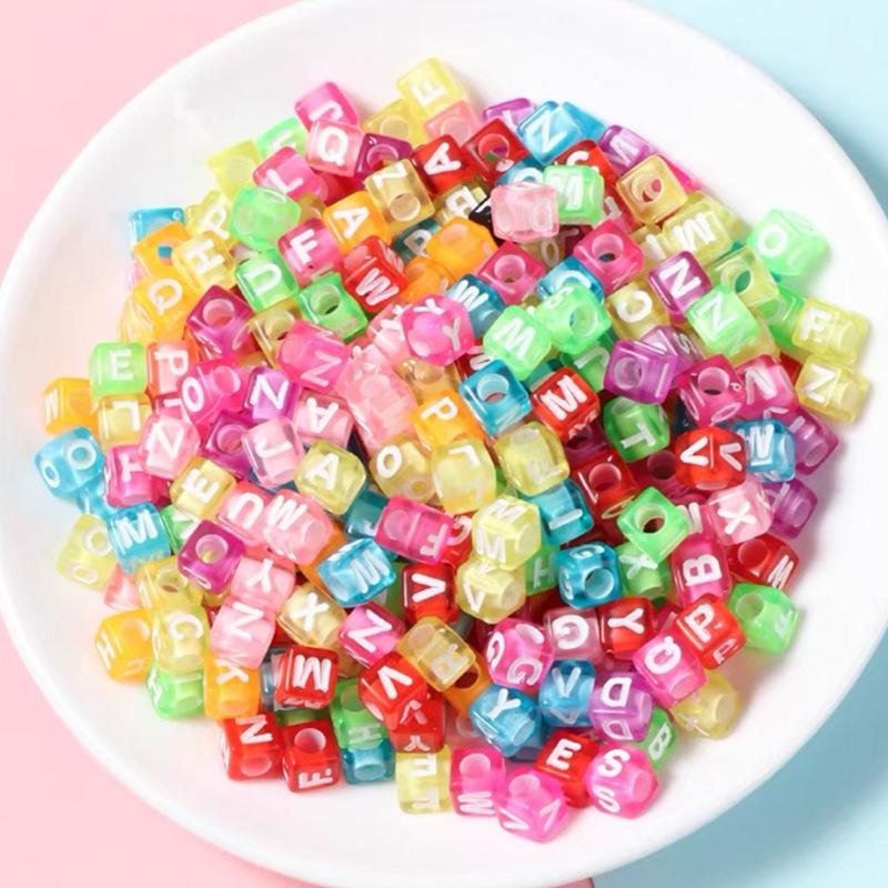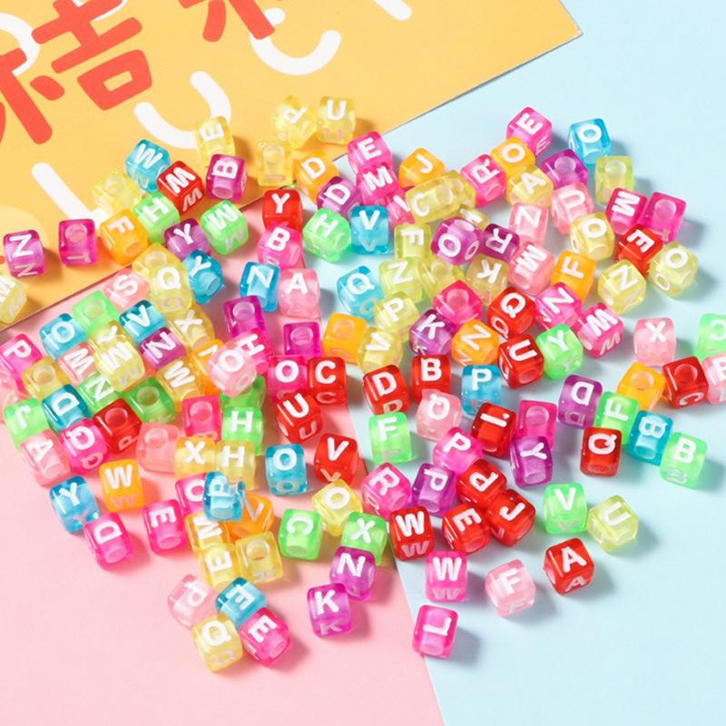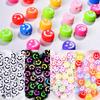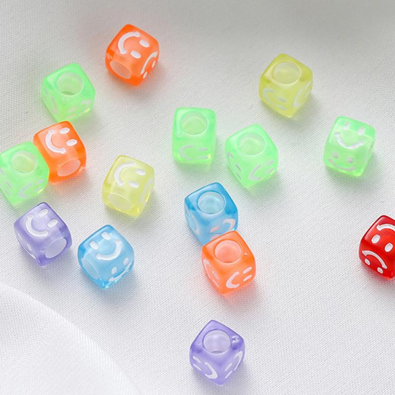Cuentas acrílicas con forma de cara sonriente y letras inglesas, 6 mm, transparentes, cuadradas, sueltas, accesorios para colgantes, material con cuentas hecho a mano