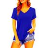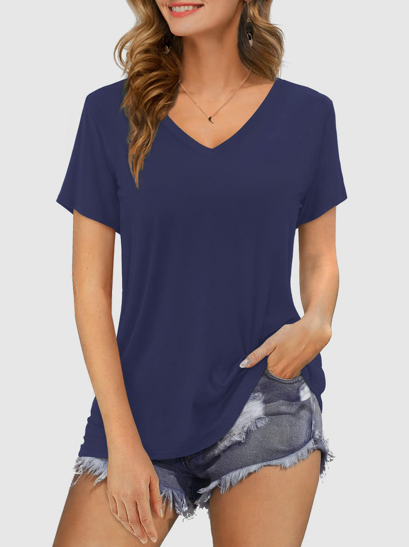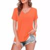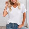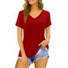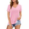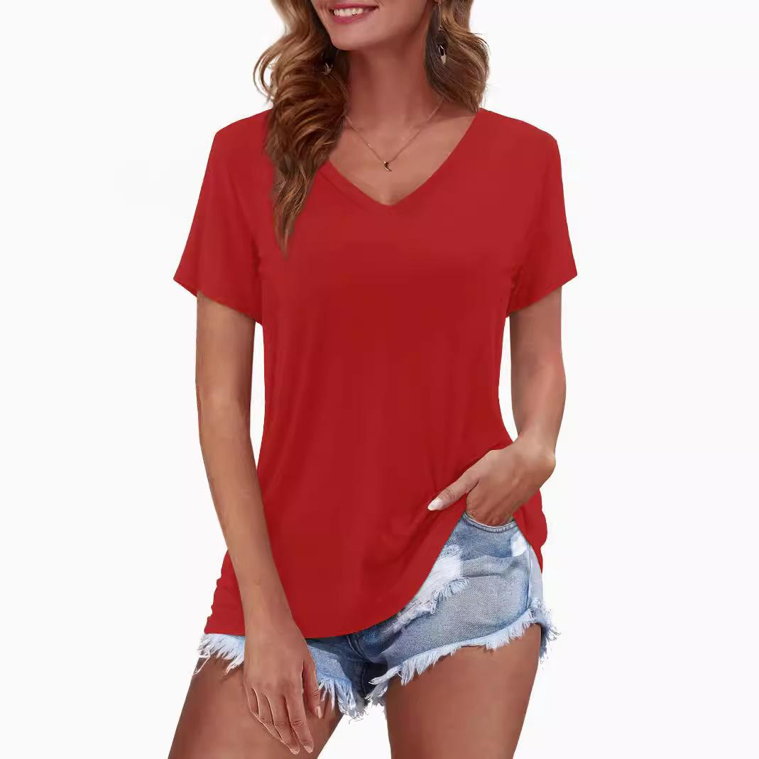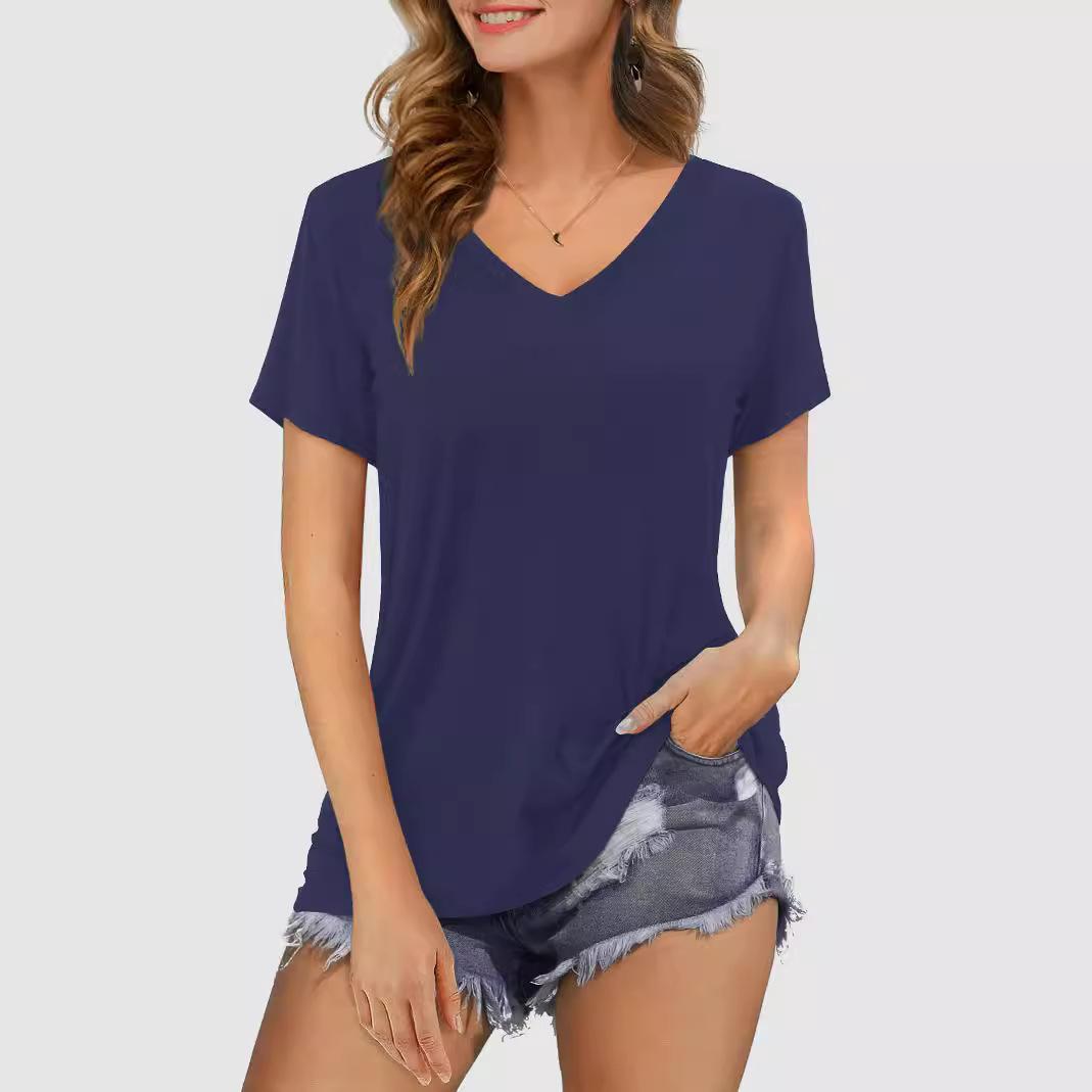 Camiseta de manga corta holgada con escote en V y color sólido informal de verano para mujer europea y americana con deseo de comercio exterior transfronterizo de 2024