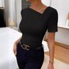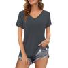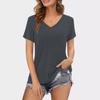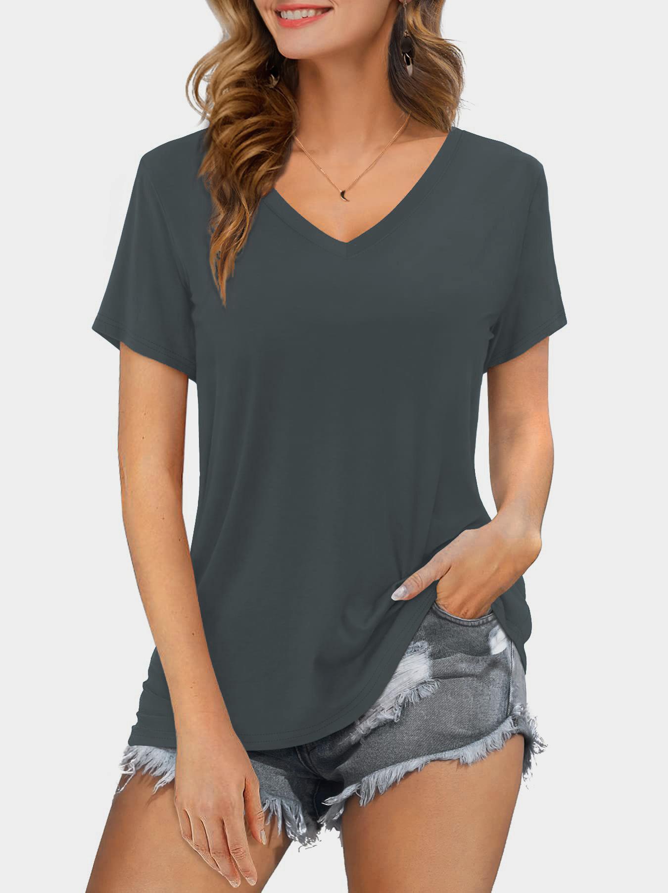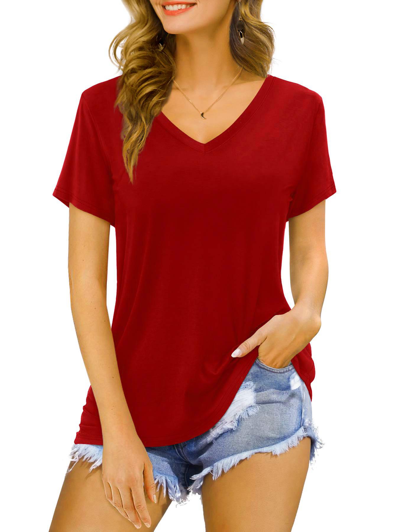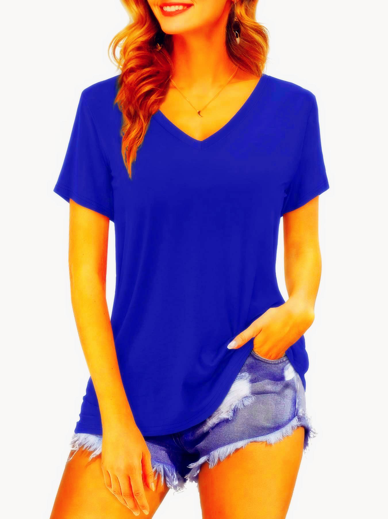Camiseta de manga corta holgada con escote en V y color sólido informal de verano para mujer europea y americana con deseo de comercio exterior transfronterizo de 2024