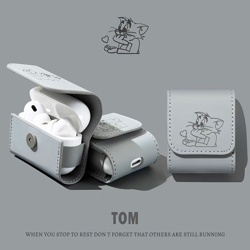 Estuche de cuero con diseño de gato y ratón para auriculares inalámbricos Bluetooth Apple AirPods 1/2.ª generación AirPodspro