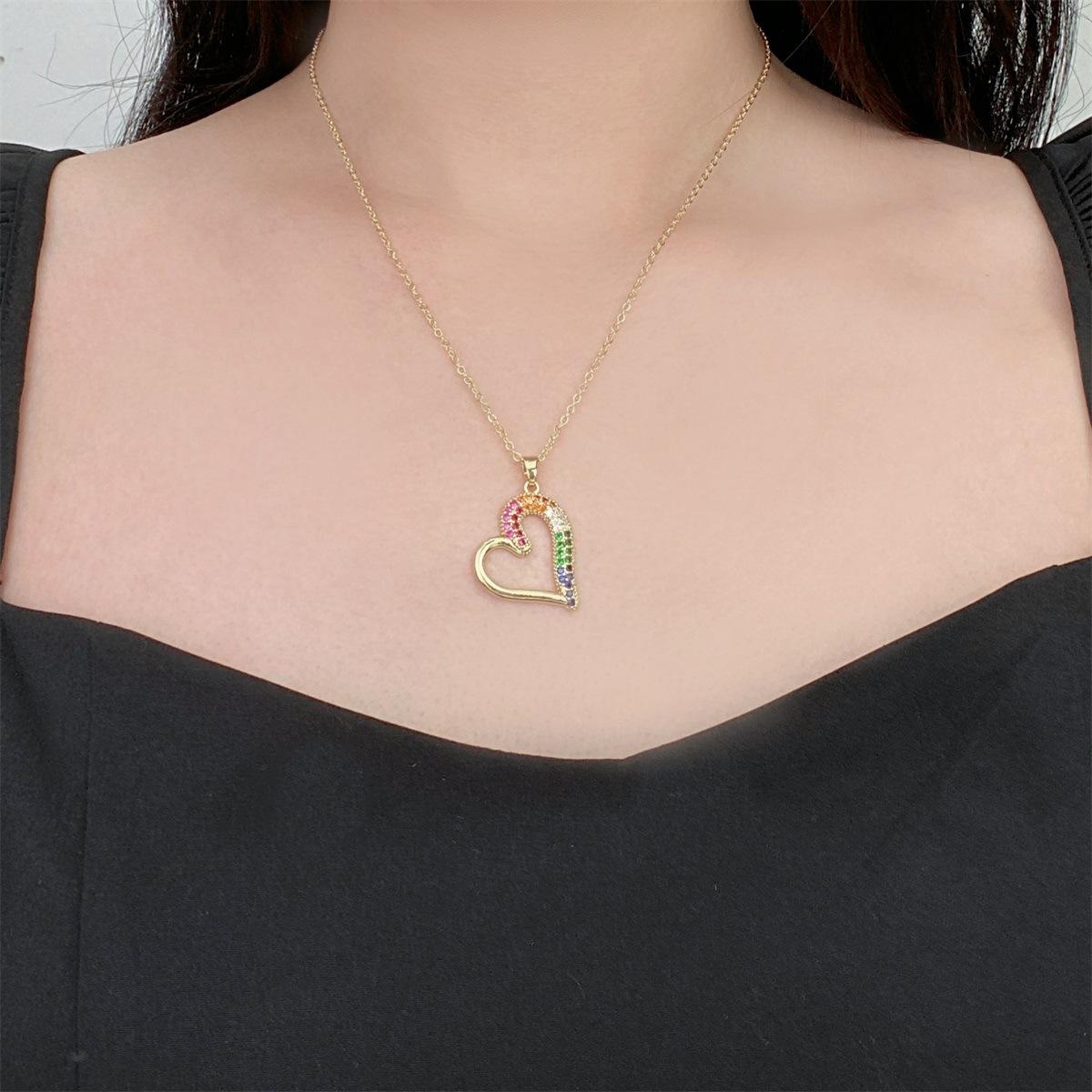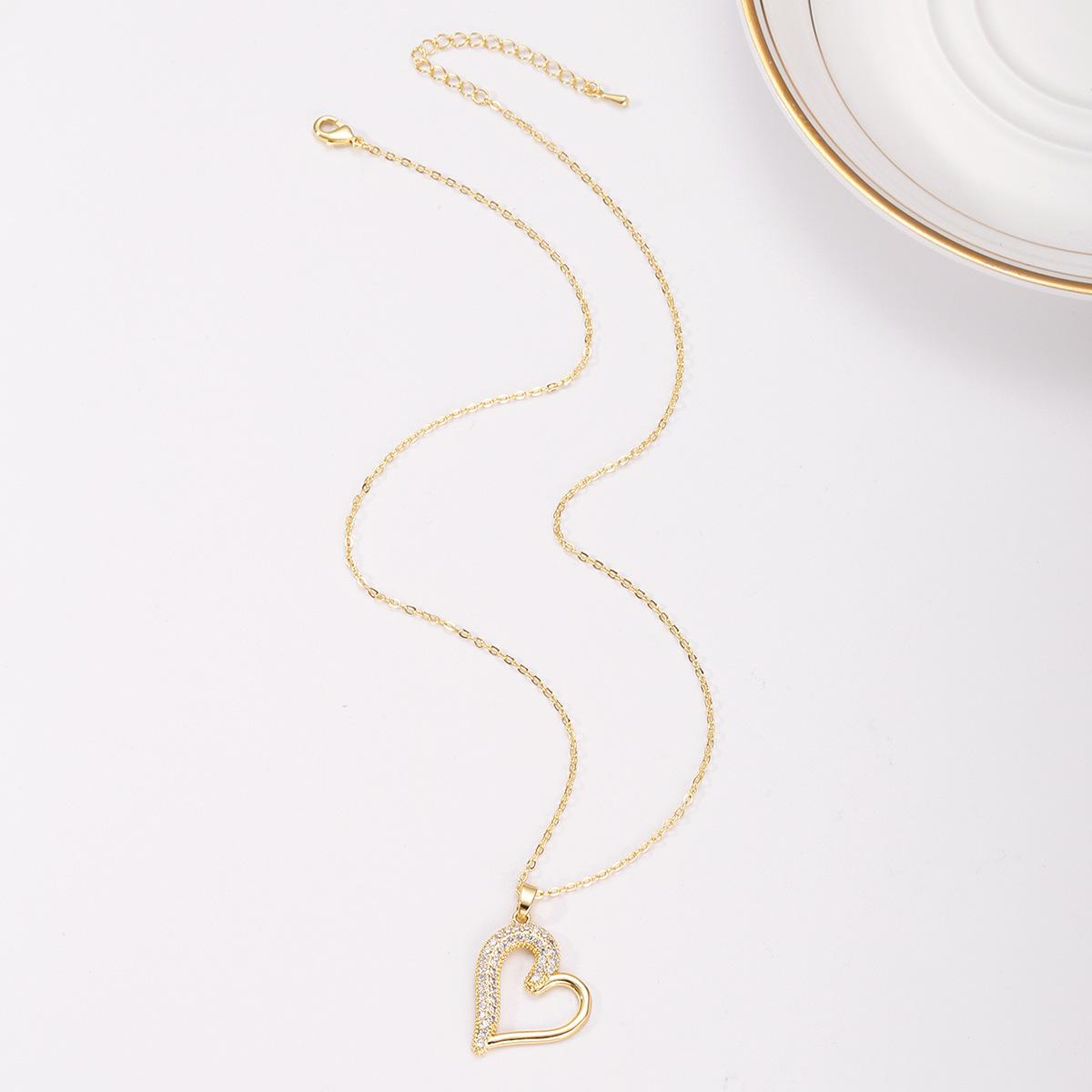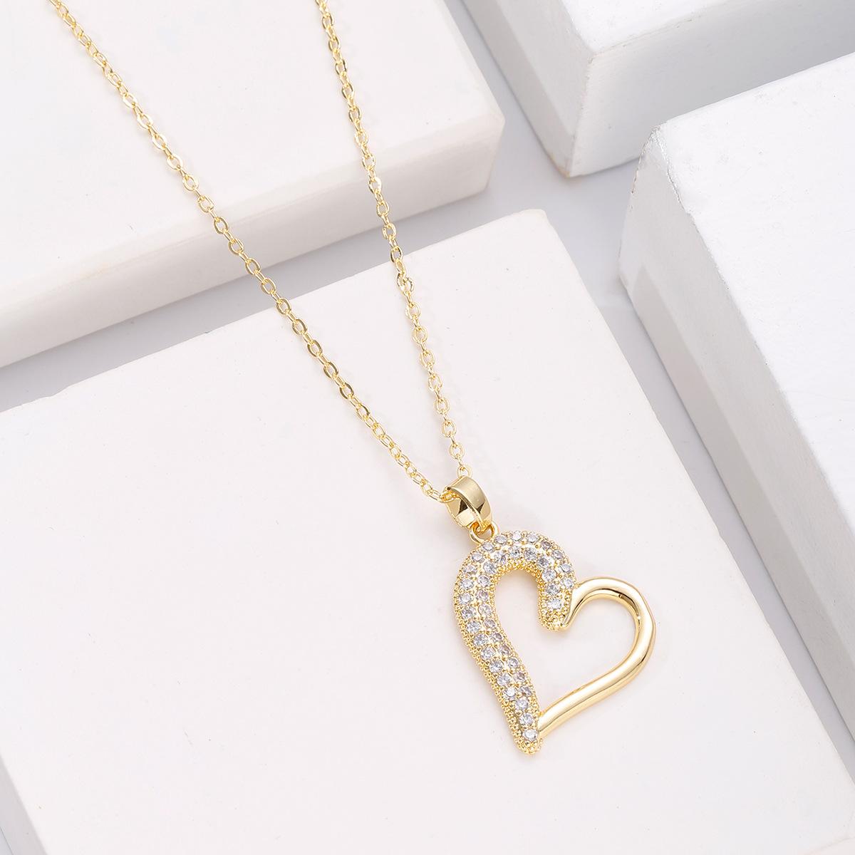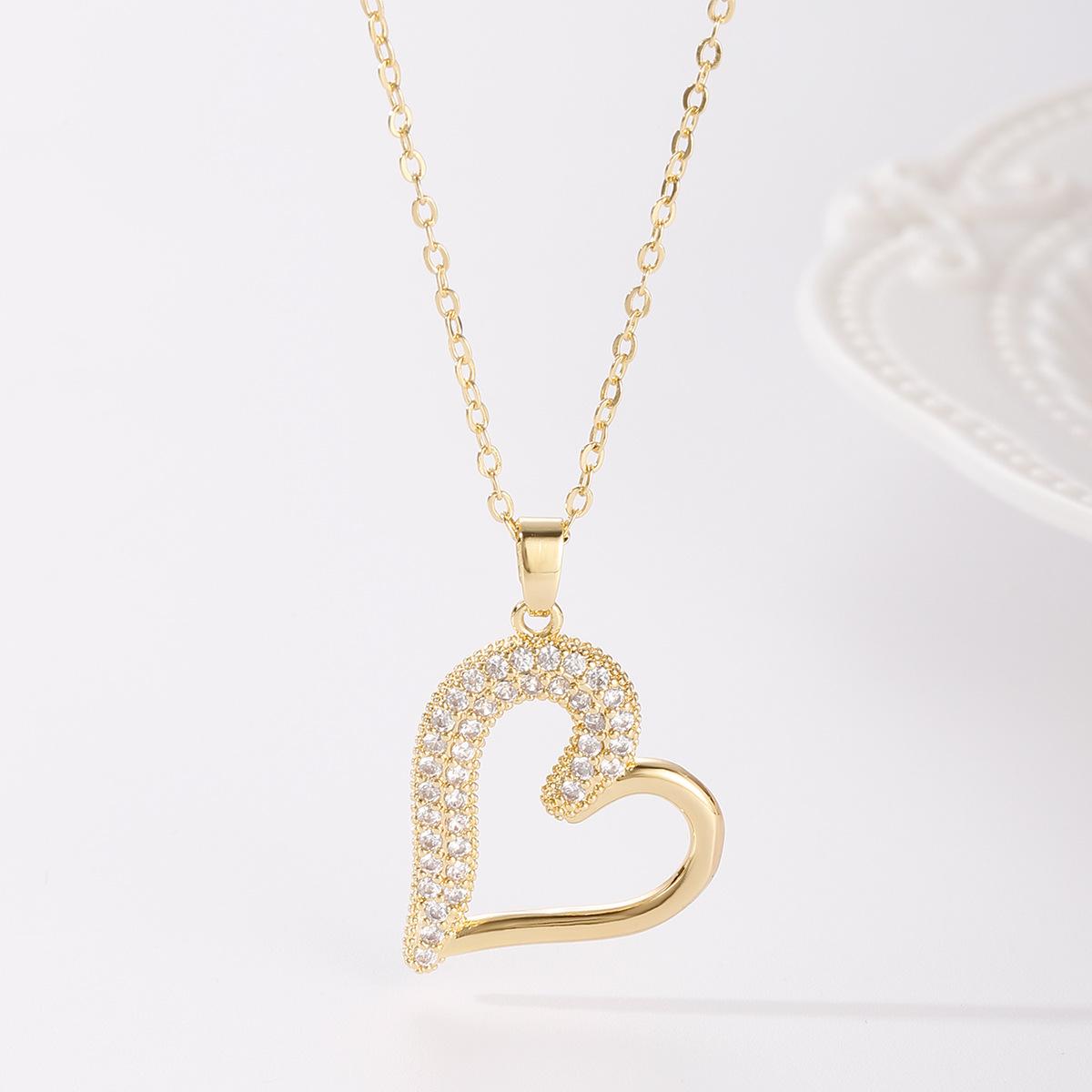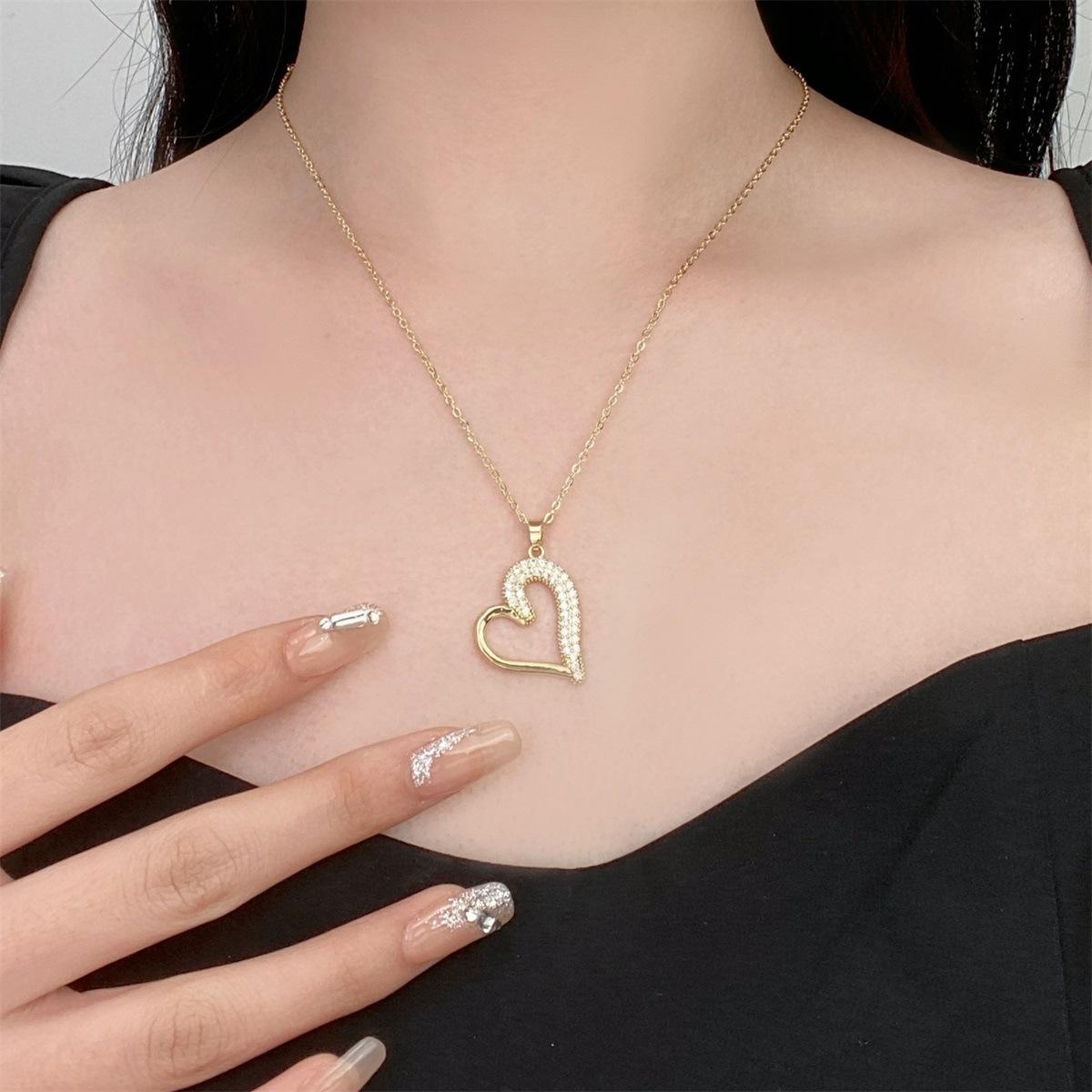 Collar de acero de titanio 2023, nuevo colgante de cobre con microincrustaciones de circonitas, diseño de corazón de lujo, cadena de clavícula con sentido del sentido.