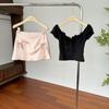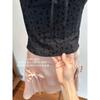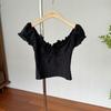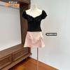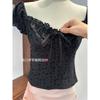 Traje de chicas sexys para mujer Estilo francés Encaje negro Manga corta Verano para mujer Nuevo Combinación con todo Cintura alta Falda midi Conjunto de dos piezas