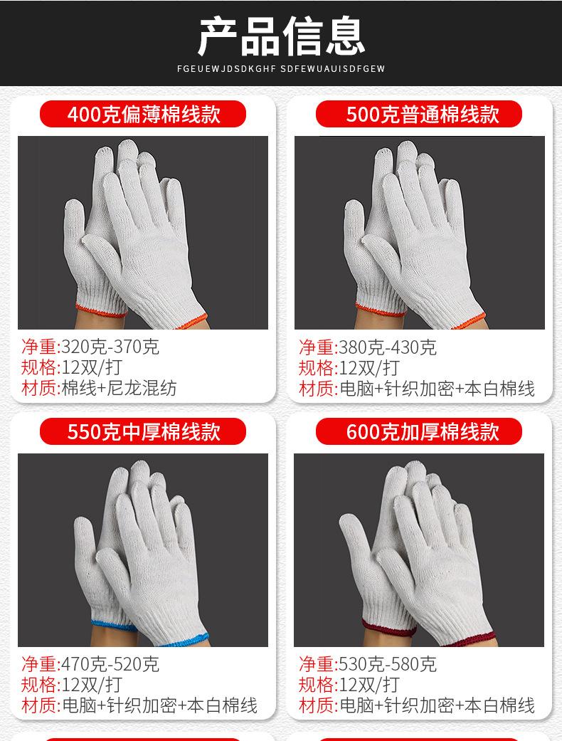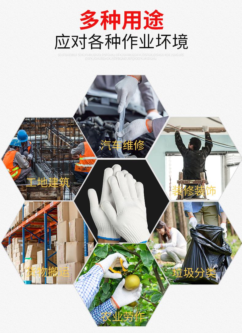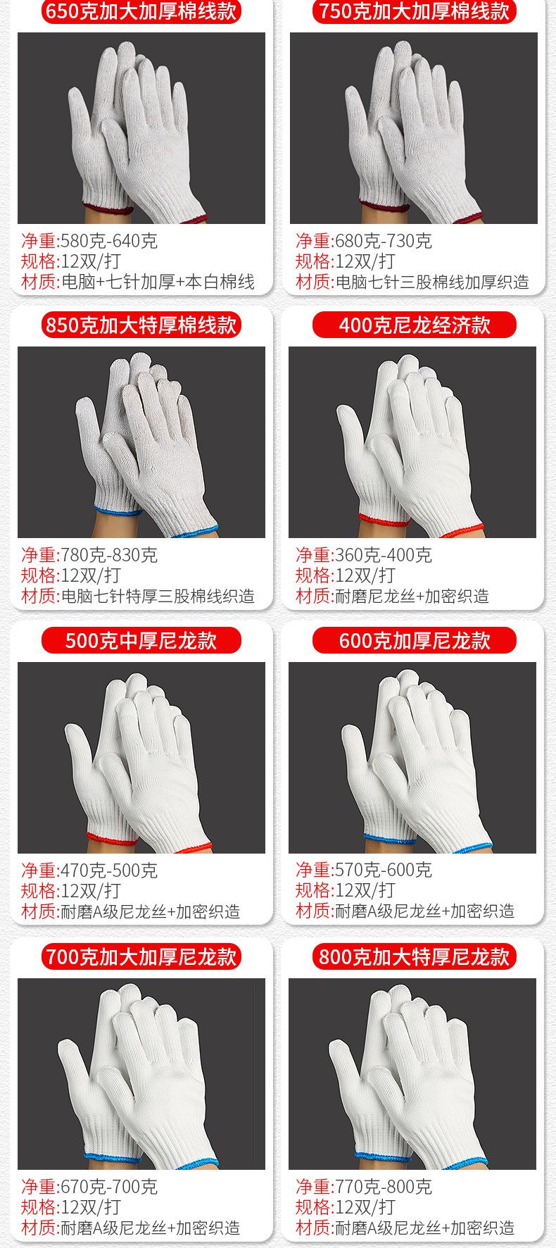 Guantes de algodón blanco al por mayor guantes de algodón blanco tejido engrosado Trabajo guantes de fábrica resistentes al desgaste Trabajo guantes de nailon