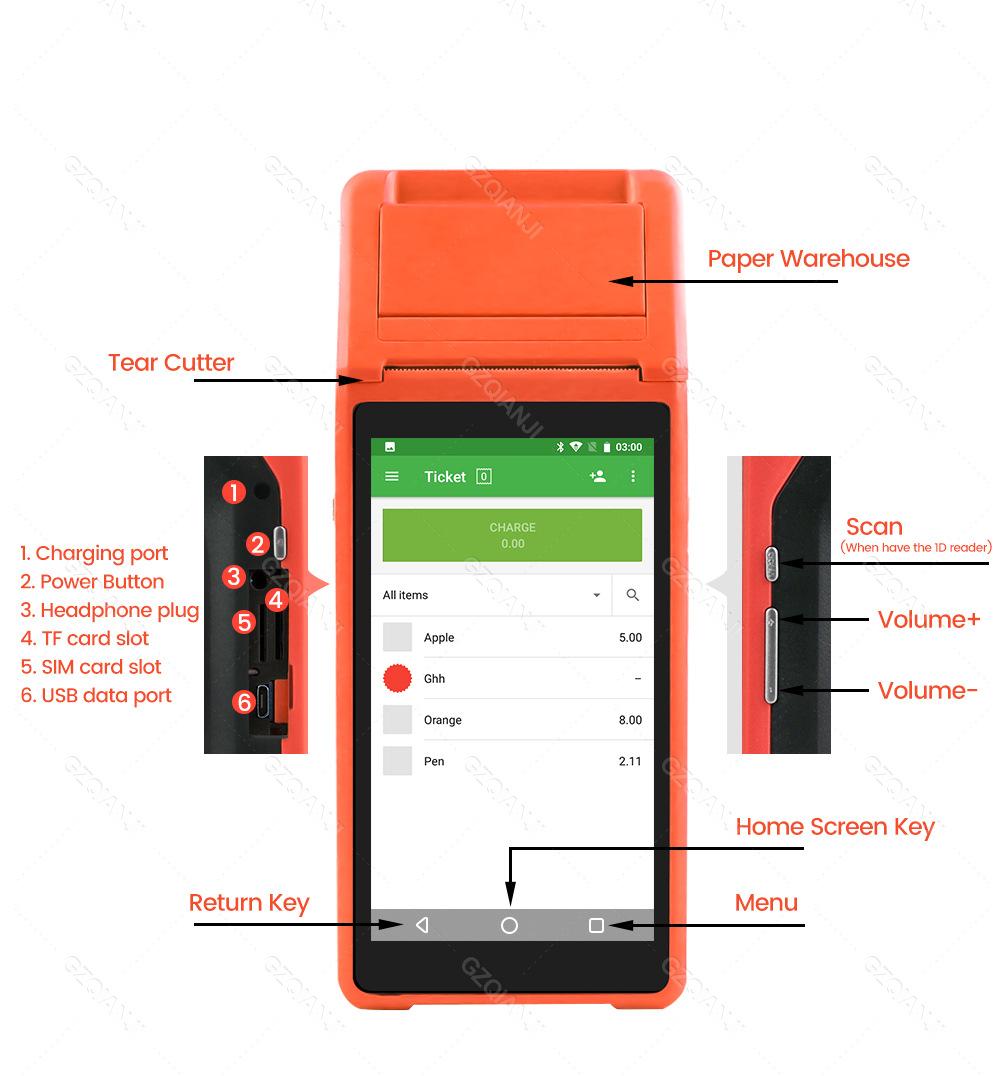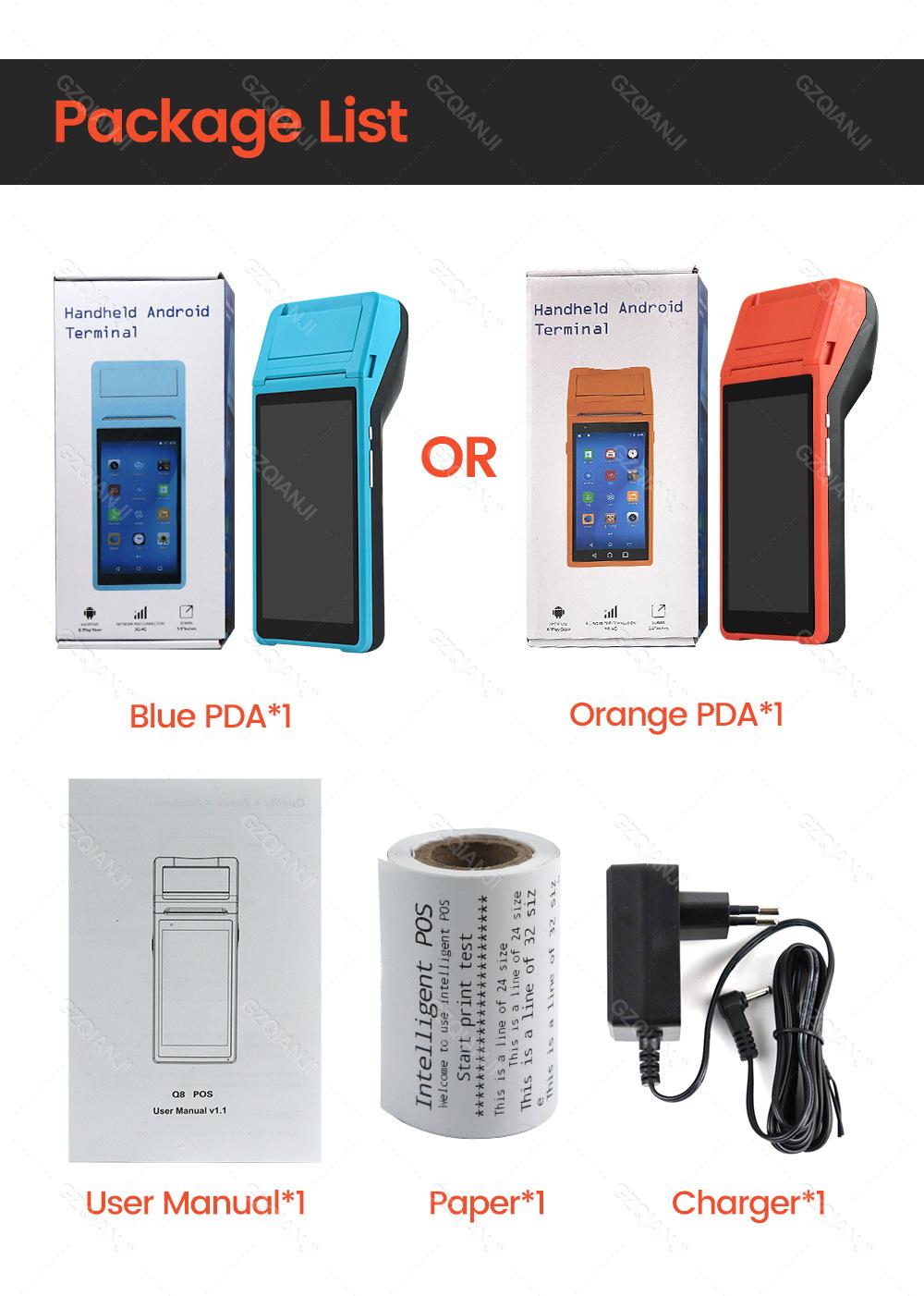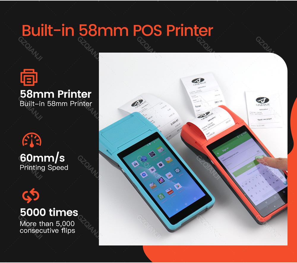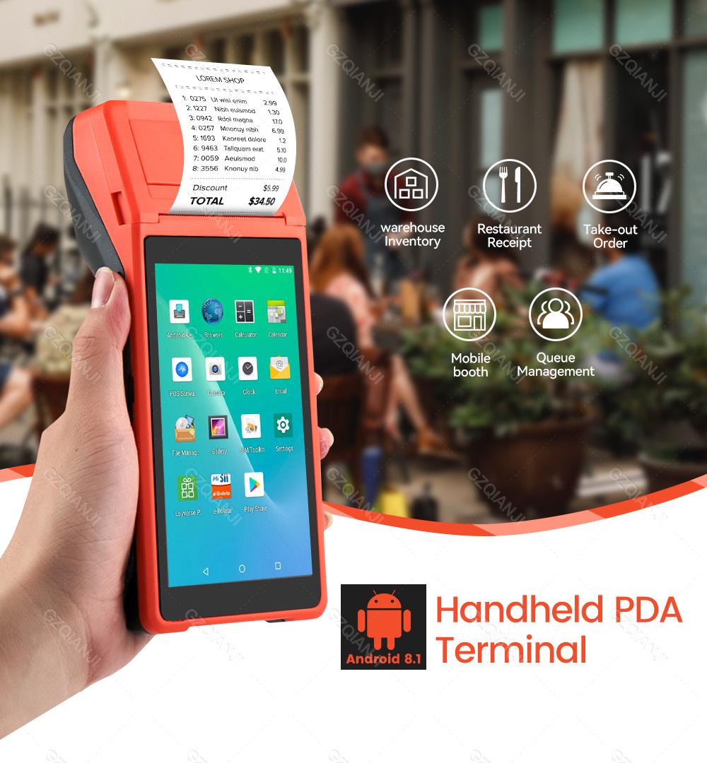 Comercio exterior Android inteligente de mano PDA impresora POS wifi recibo térmico máquina todo en uno, ¡versión en inglés puede ser exportada!