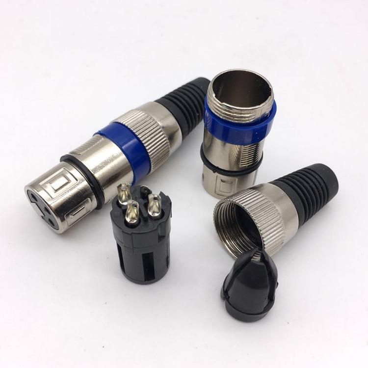 Micrófono KTV de metal corto de tres núcleos con base Caron y mezclador de audio, base Caron de tres núcleos con anillo azul chapado en oro.