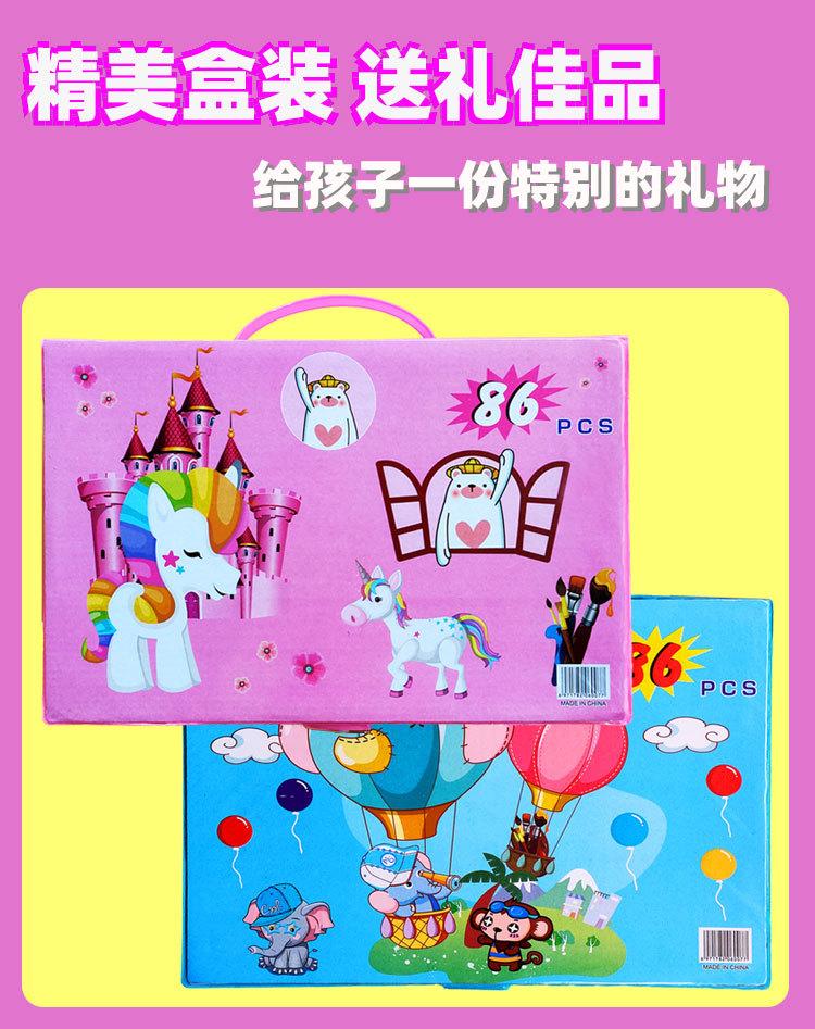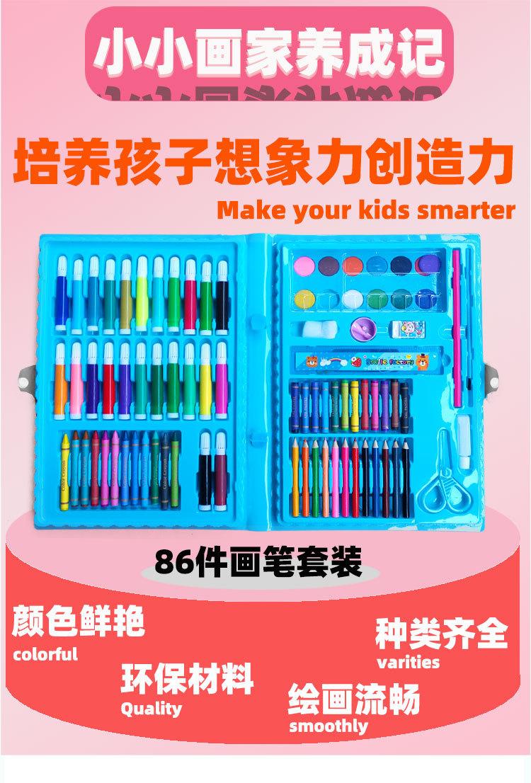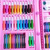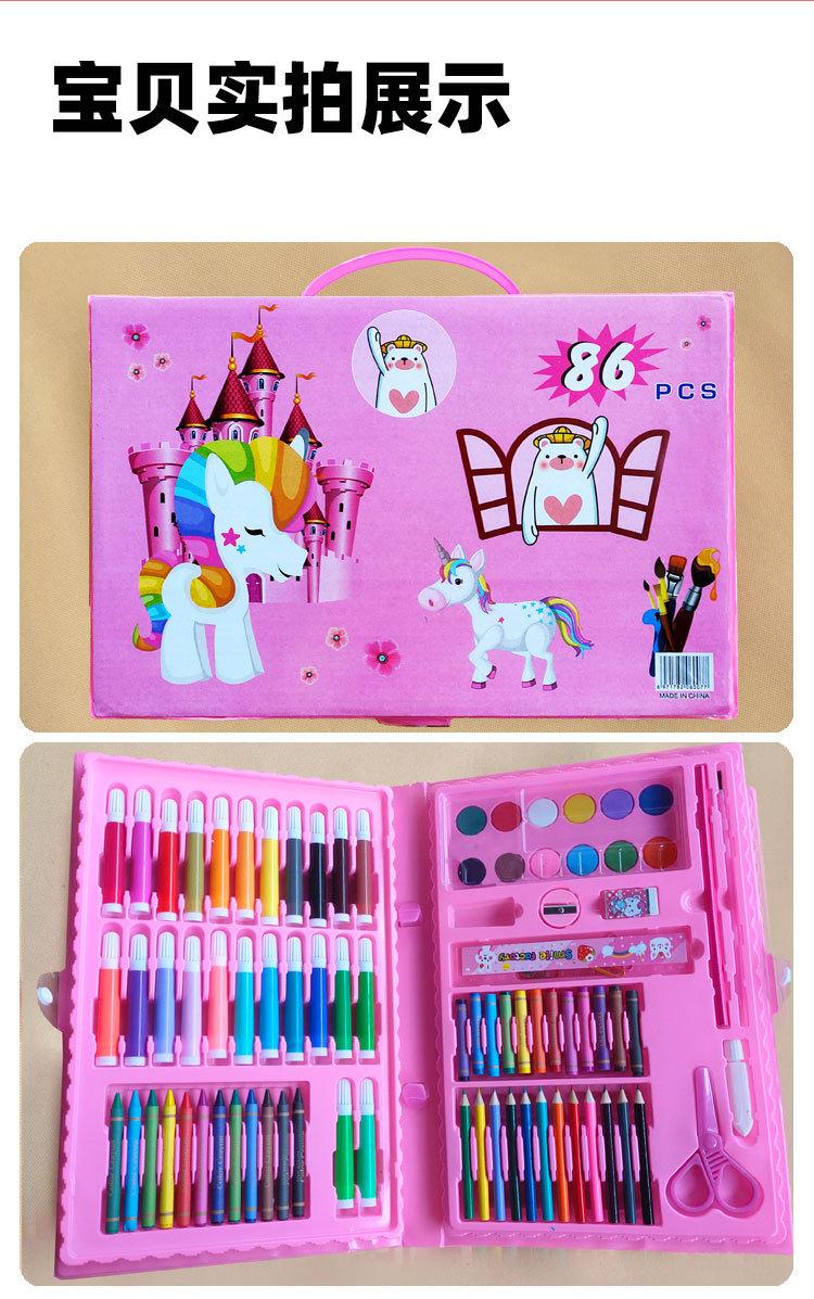 Estructura interna: Contiene 24 bolígrafos de acuarela, 12 crayones de colores, 12 barras de cera de colores, 12 lápices de colores,