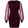 Vestido tubo de otoño europeo y americano nuevo, de malla, con escote en V y lentejuelas, ajustado y sexy.