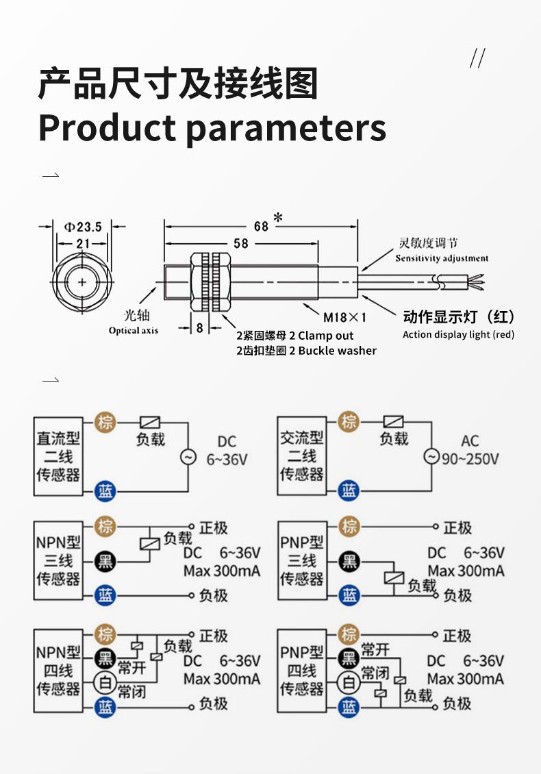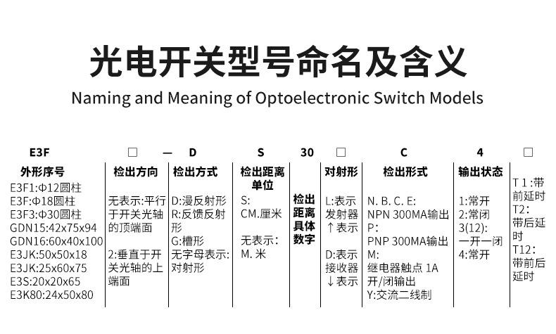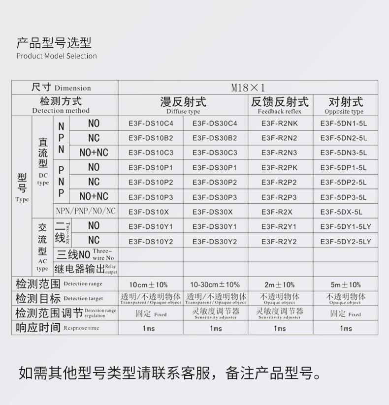 E3F-DS30C4 DC three-wire NPN normally open, E3F-DS30B2 DC three-wire NPN normally closed, E3F-DS30C3 DC three-...