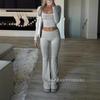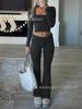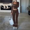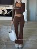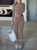 Traje de dos piezas de Amazon Leisure Sports, ajustado, de punto, de manga larga y pantalones, para mujer, transfronterizo europeo y americano, 2024
