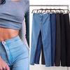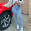 Pantalones vaqueros estilo europeo y americano para mujer, de talla grande, color melocotón, elásticos, ajustados, con cintura elástica, tipo lápiz, con envoltura en la cadera, de mezclilla.