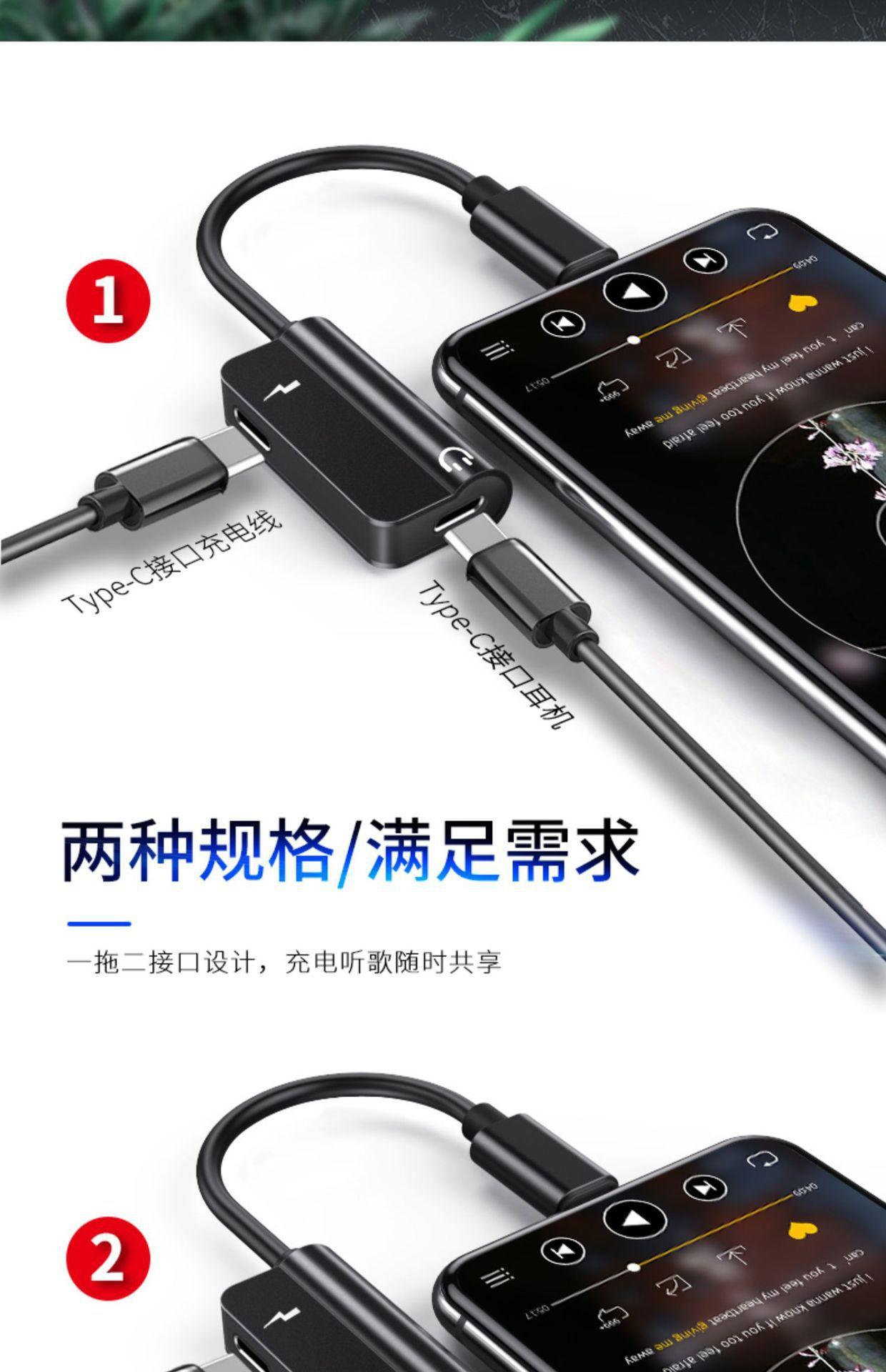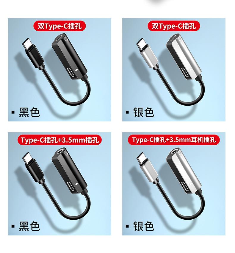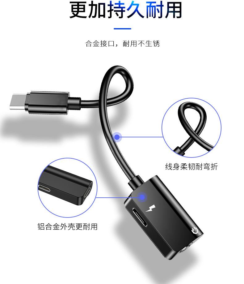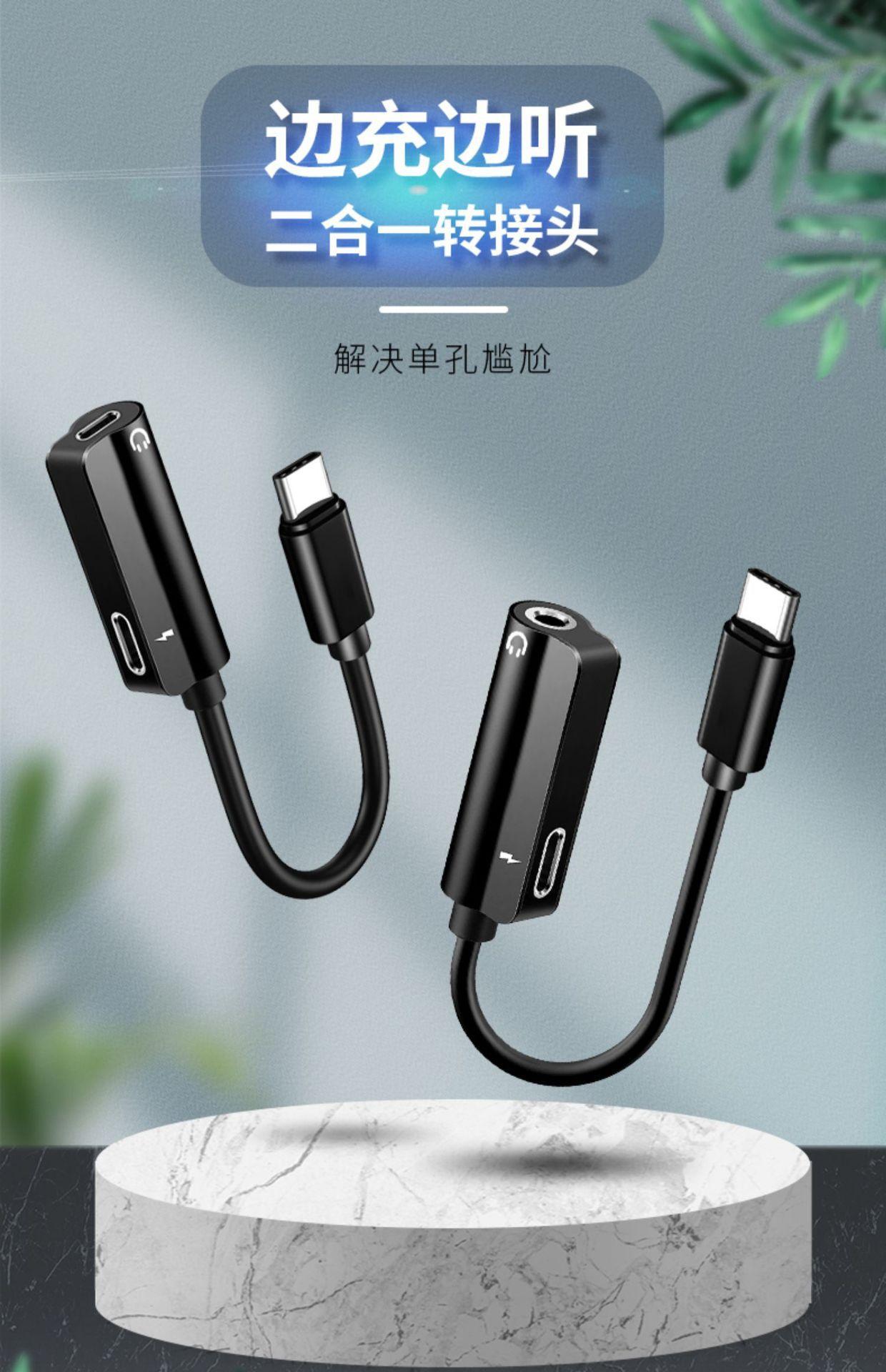 Adaptador de auriculares tipo C, interfaz de 3,5 mm, carga, escucha de música, cable convertidor de teléfono móvil tipo C dos en uno