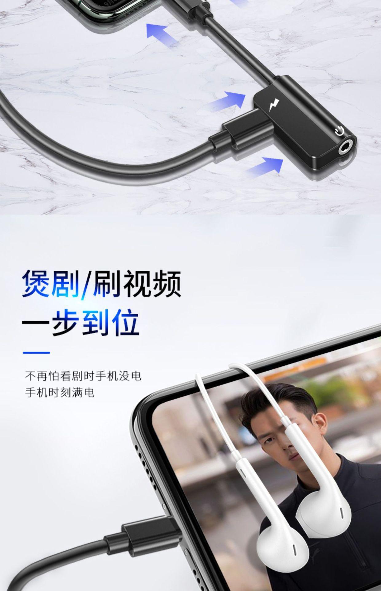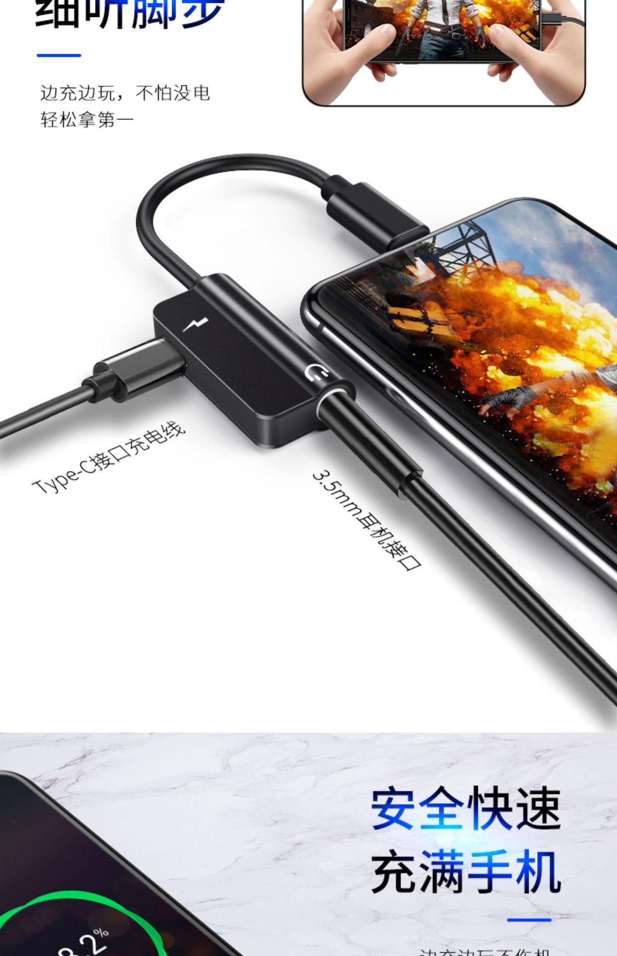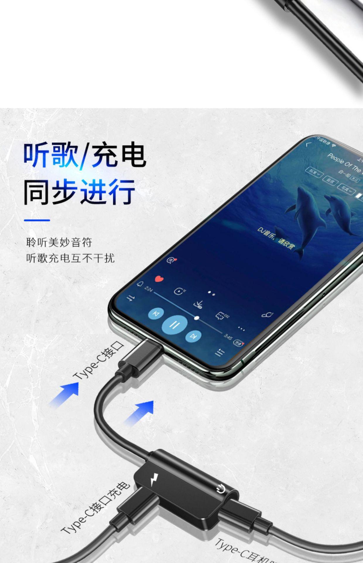 Adaptador de auriculares tipo C, interfaz de 3,5 mm, carga, escucha de música, cable convertidor de teléfono móvil tipo C dos en uno