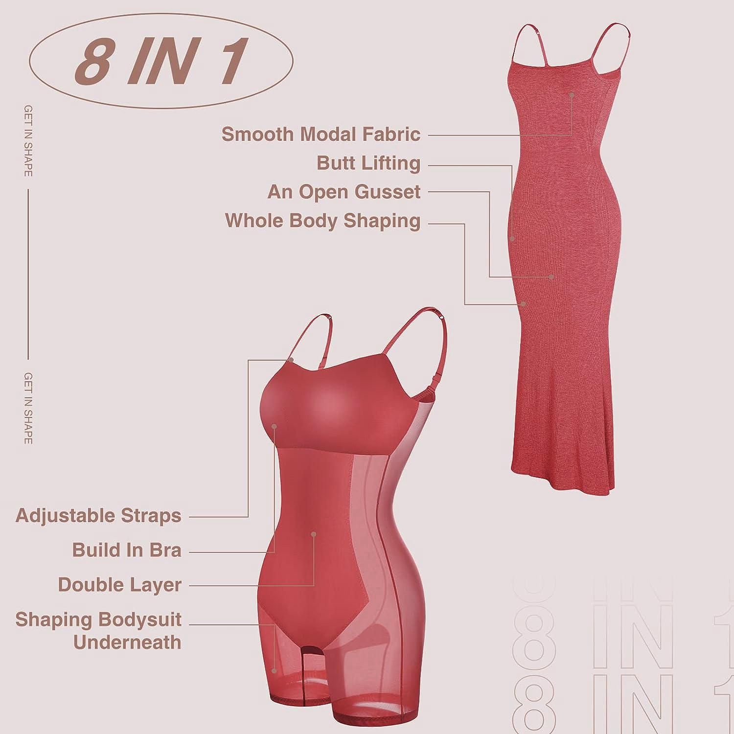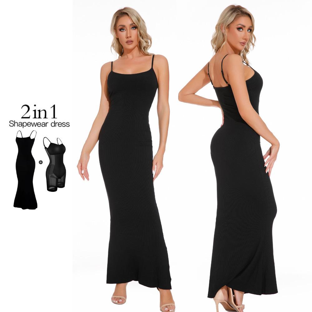 Vestido Camisola Largo 2 en 1 Body Faja Moldeadora Sin Costuras Prenda Moldeadora Delgada Adelgazante Control de Abdomen Venta Caliente Transfronteriza