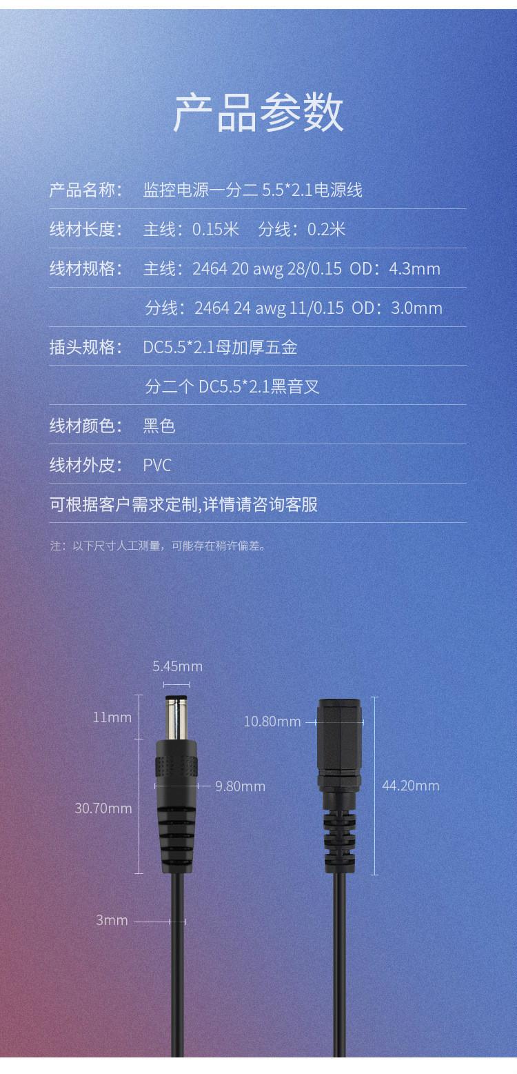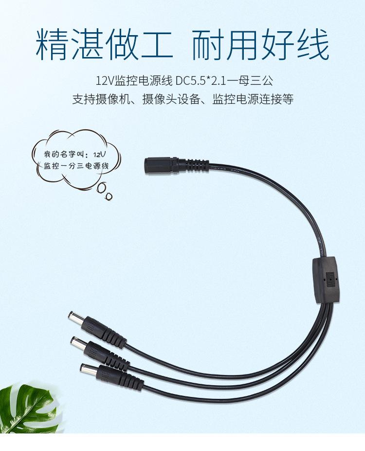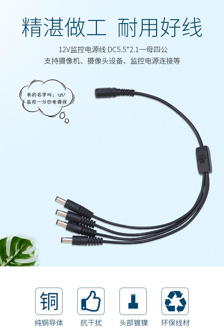 Cable de alimentación CC 1/2/3/4 para cámara de monitoreo, línea de conexión CC 1 a 4, 5,5 x 2,1, 1 hembra, 3 machos