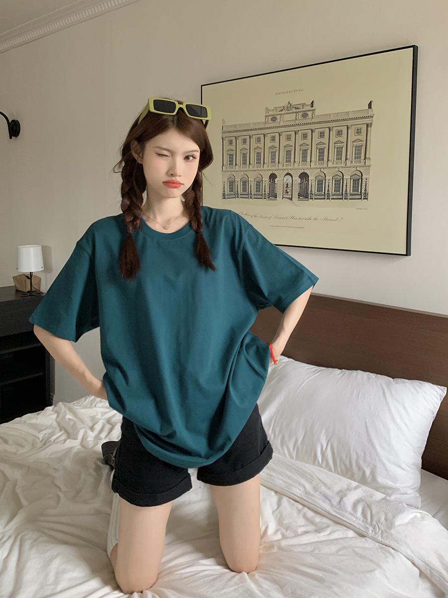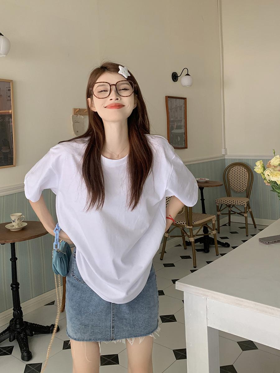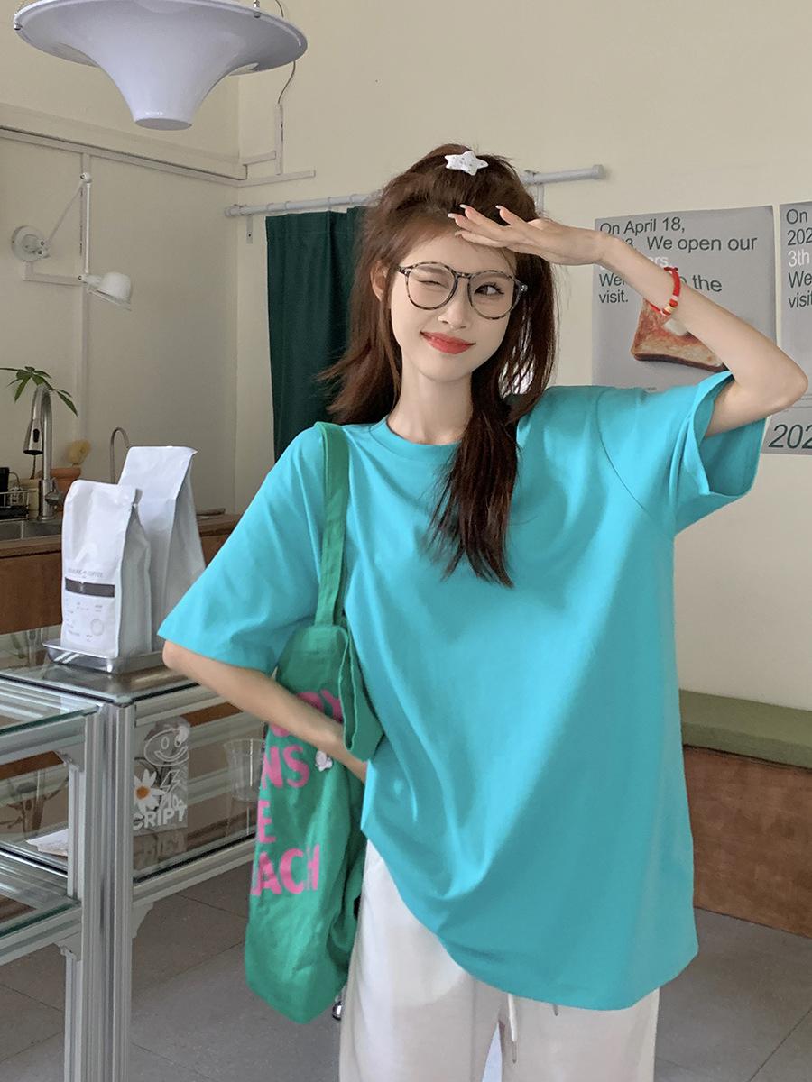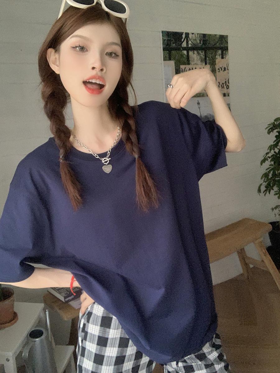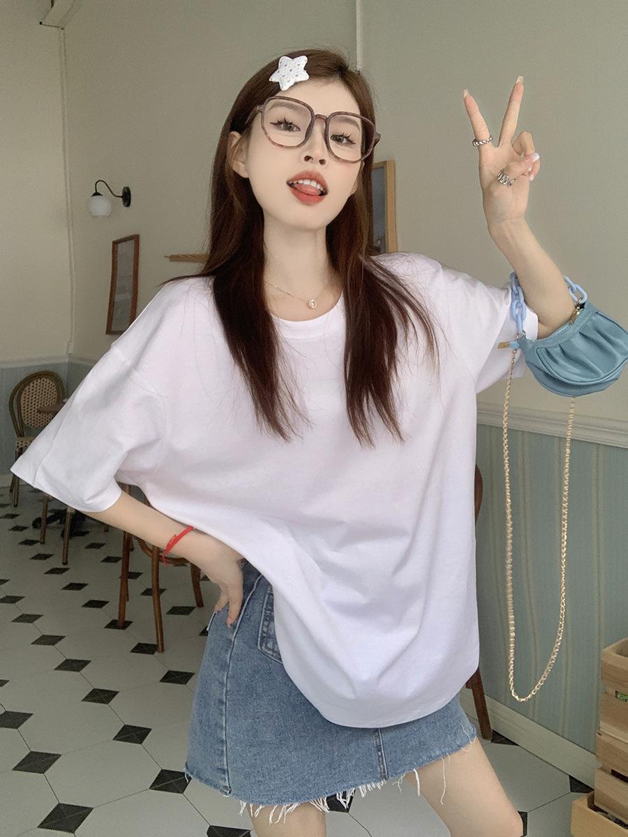 Camiseta de manga corta para mujer, verano 2023, nueva camiseta informal de color sólido, top blanco holgado de algodón para estudiantes, ropa para parejas