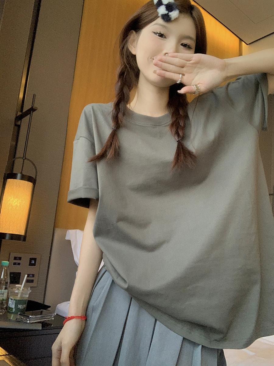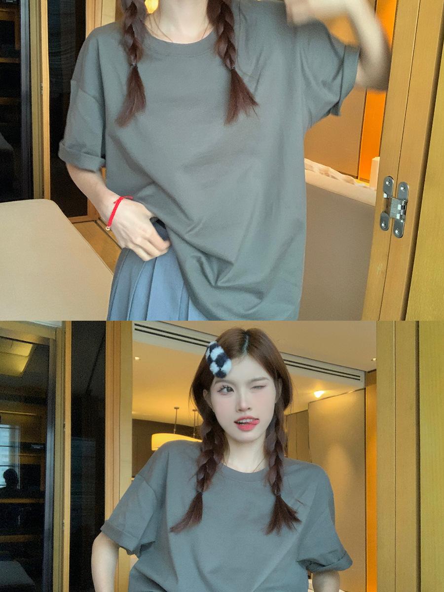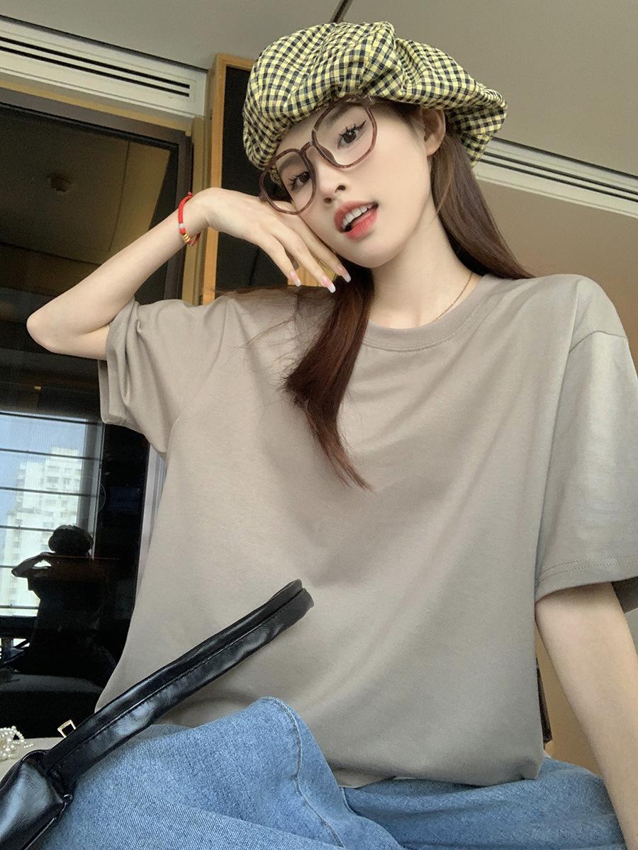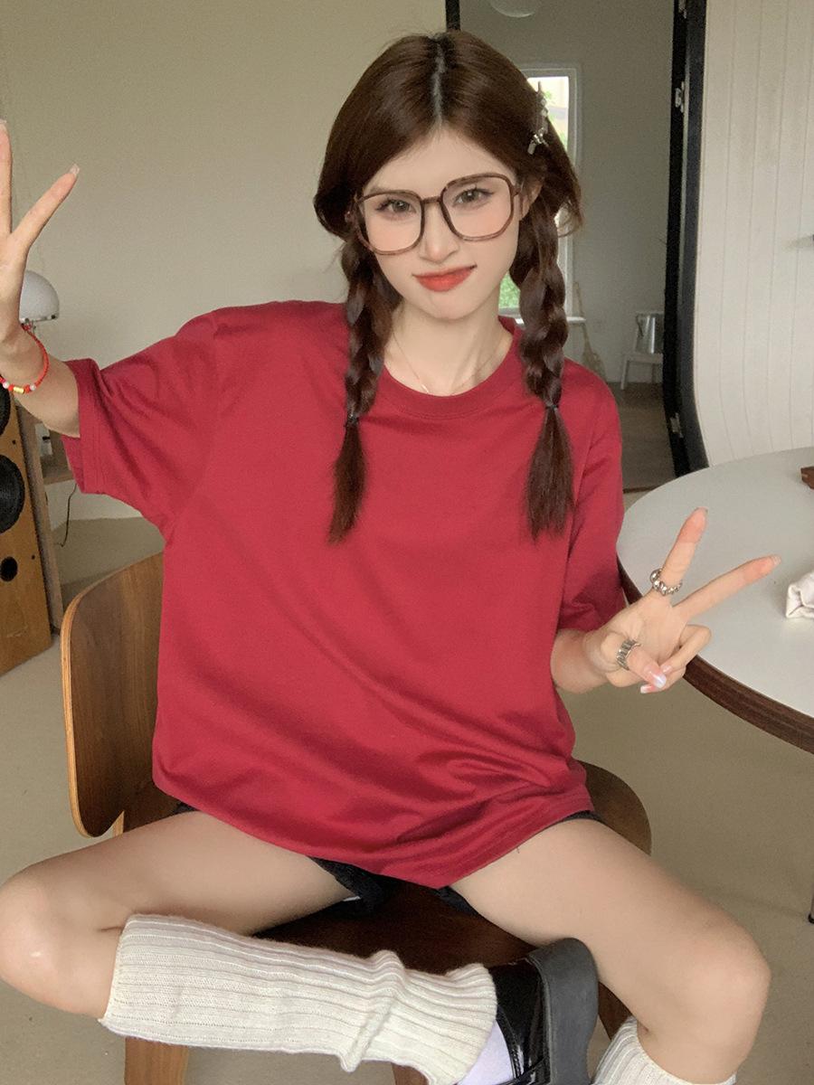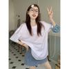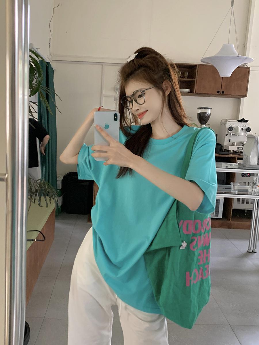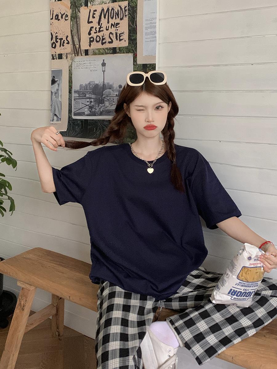 Camiseta de manga corta para mujer, verano 2023, nueva camiseta informal de color sólido, top blanco holgado de algodón para estudiantes, ropa para parejas