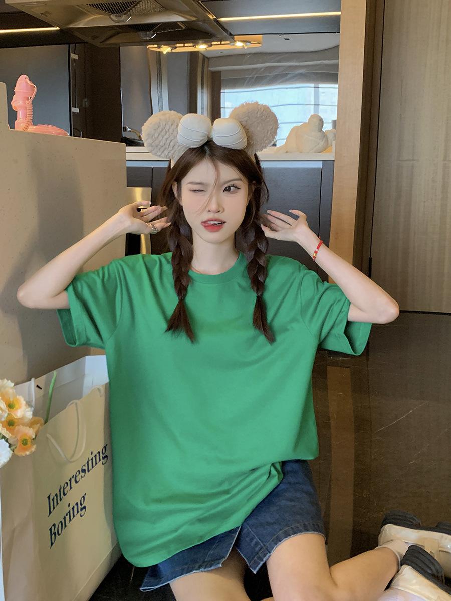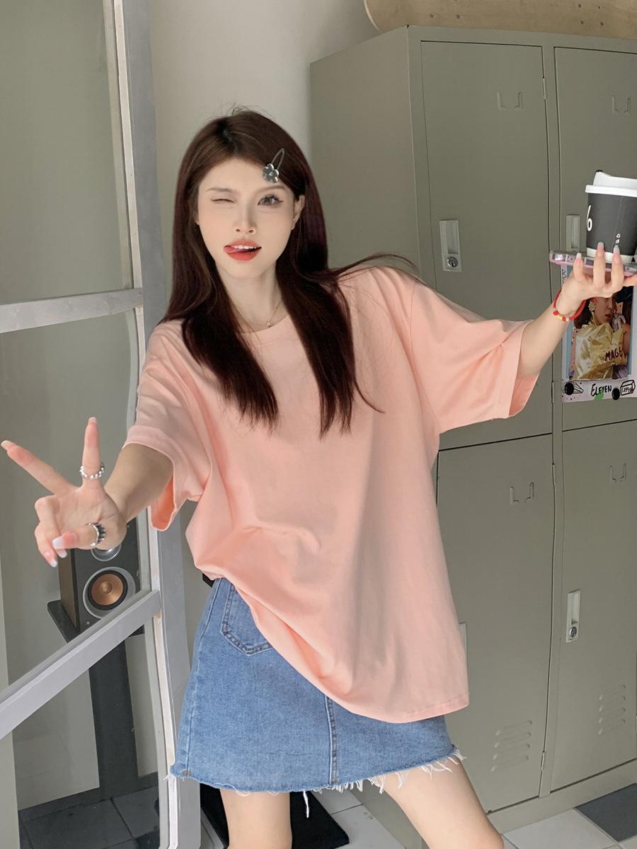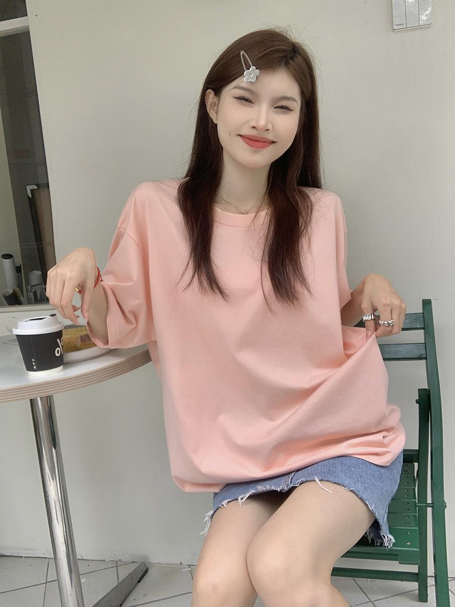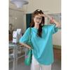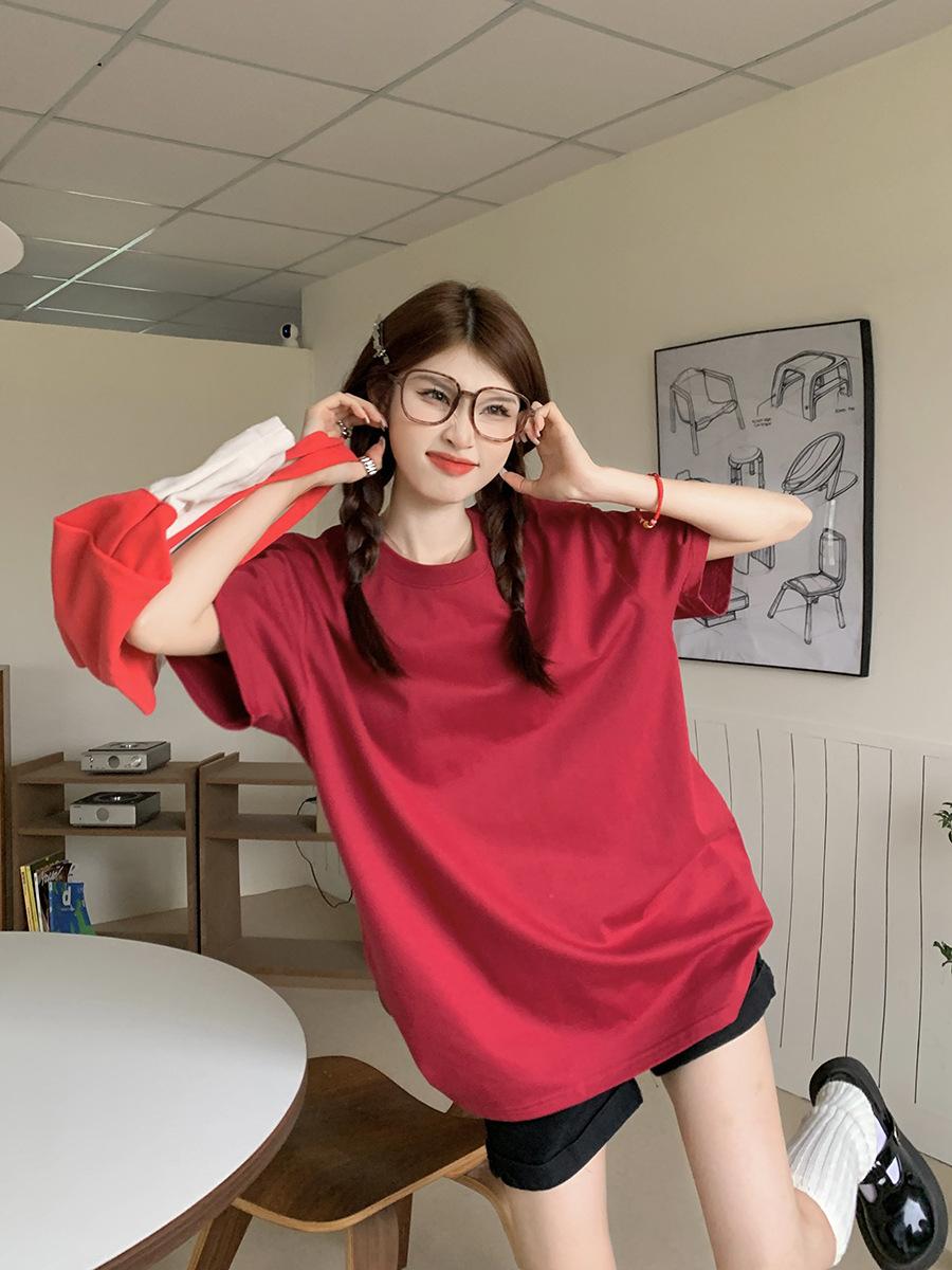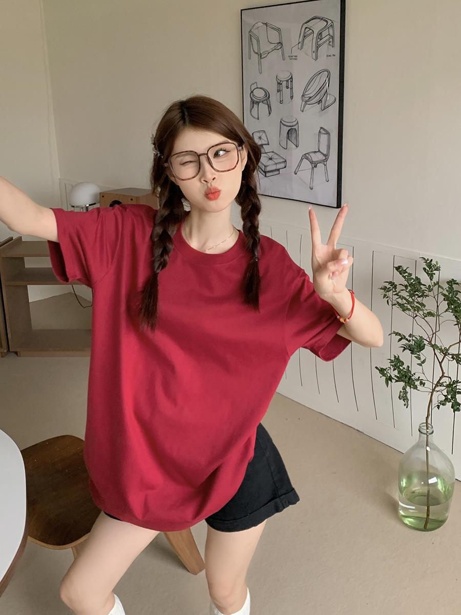 Camiseta de manga corta para mujer, verano 2023, nueva camiseta informal de color sólido, top blanco holgado de algodón para estudiantes, ropa para parejas