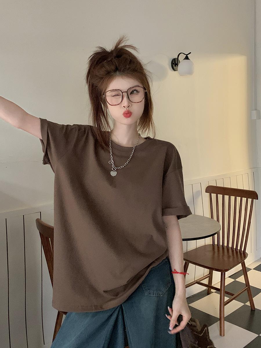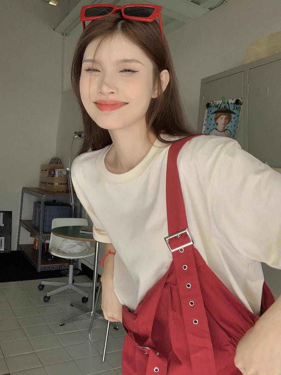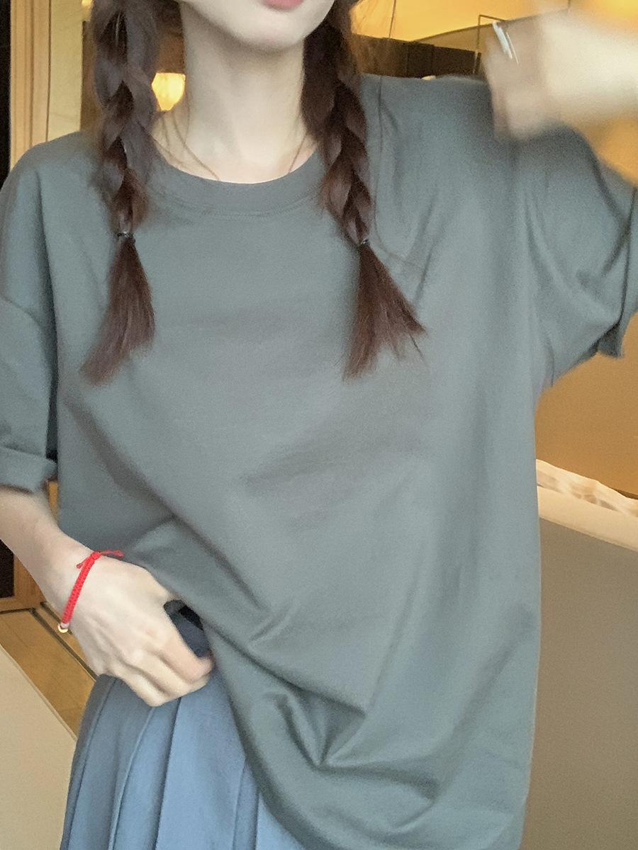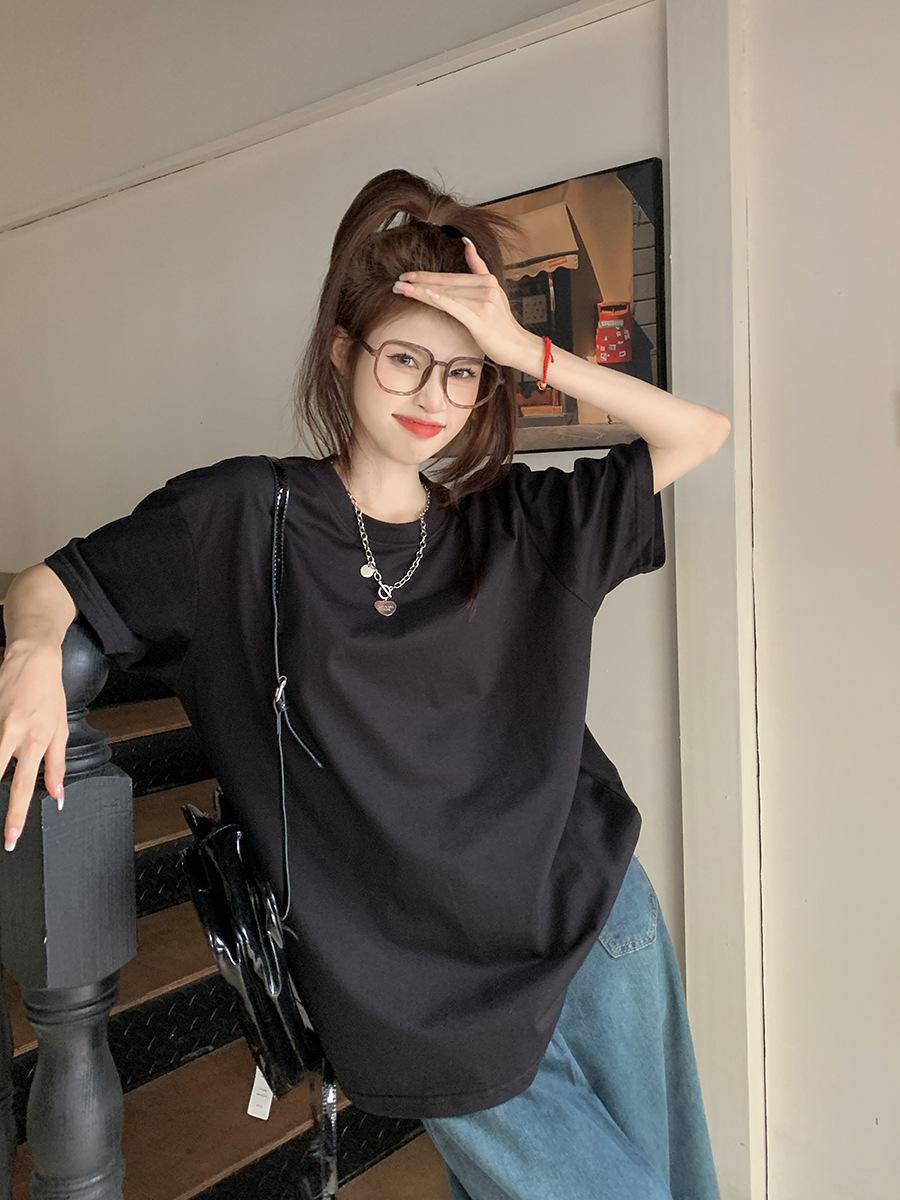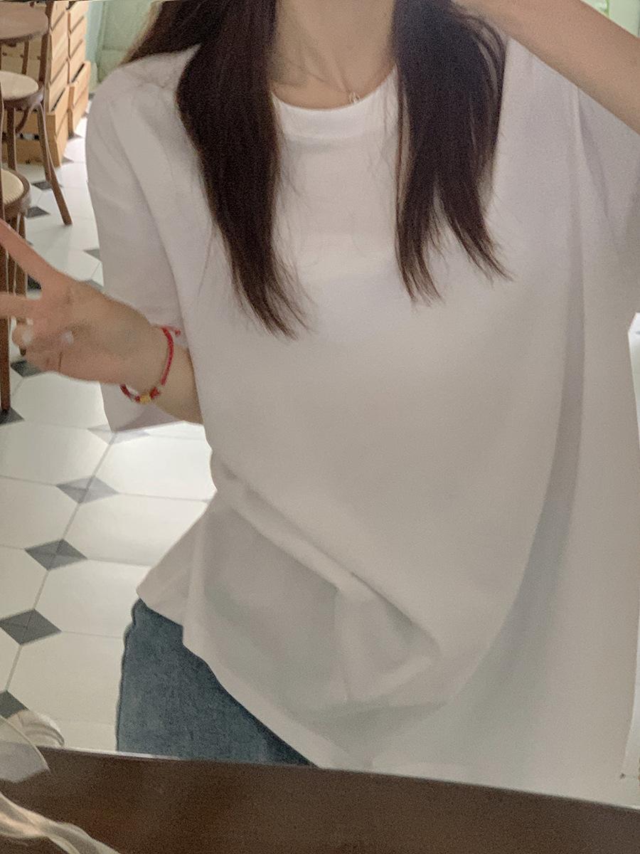 Camiseta de manga corta para mujer, verano 2023, nueva camiseta informal de color sólido, top blanco holgado de algodón para estudiantes, ropa para parejas