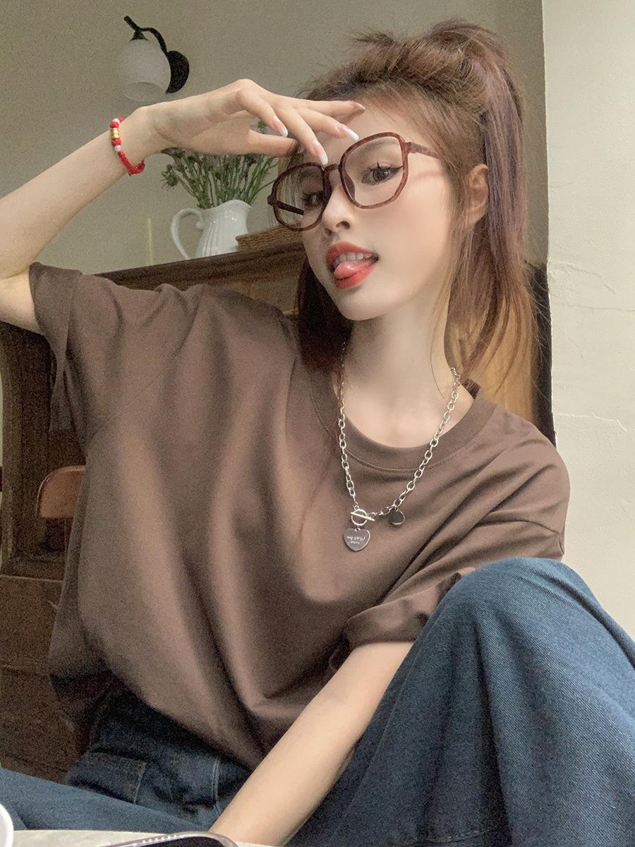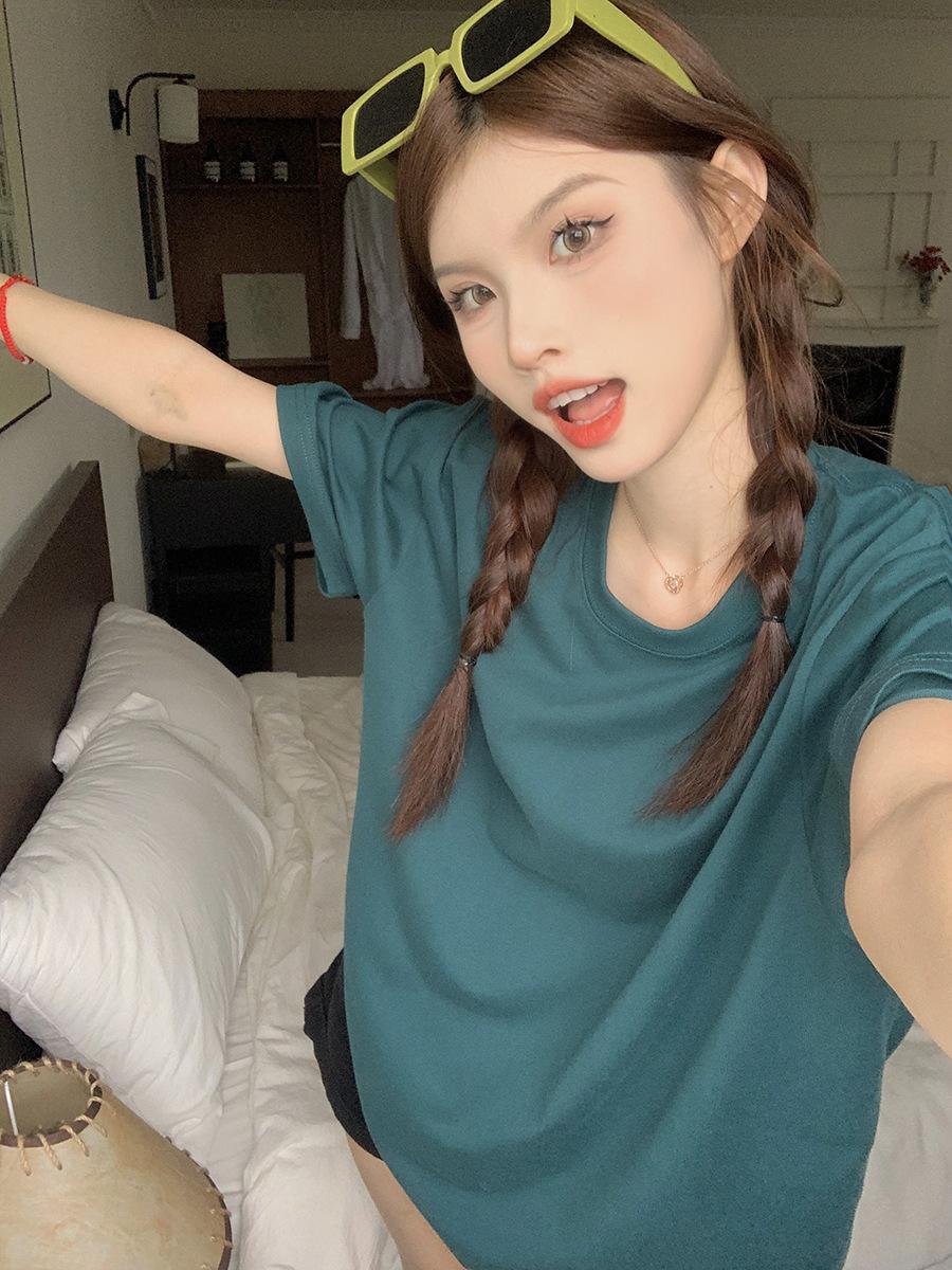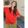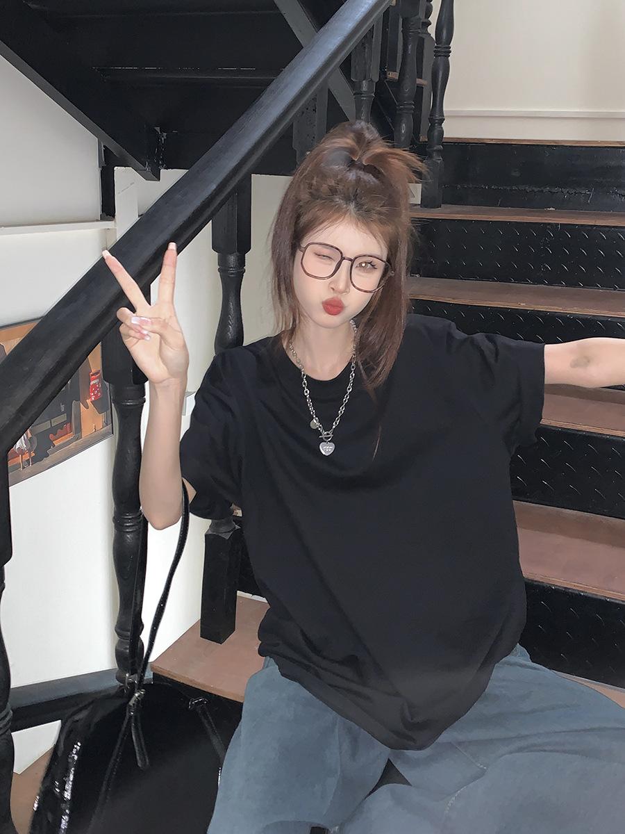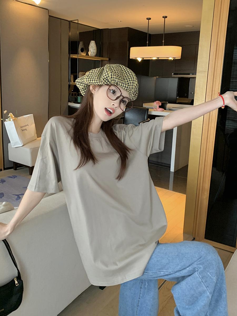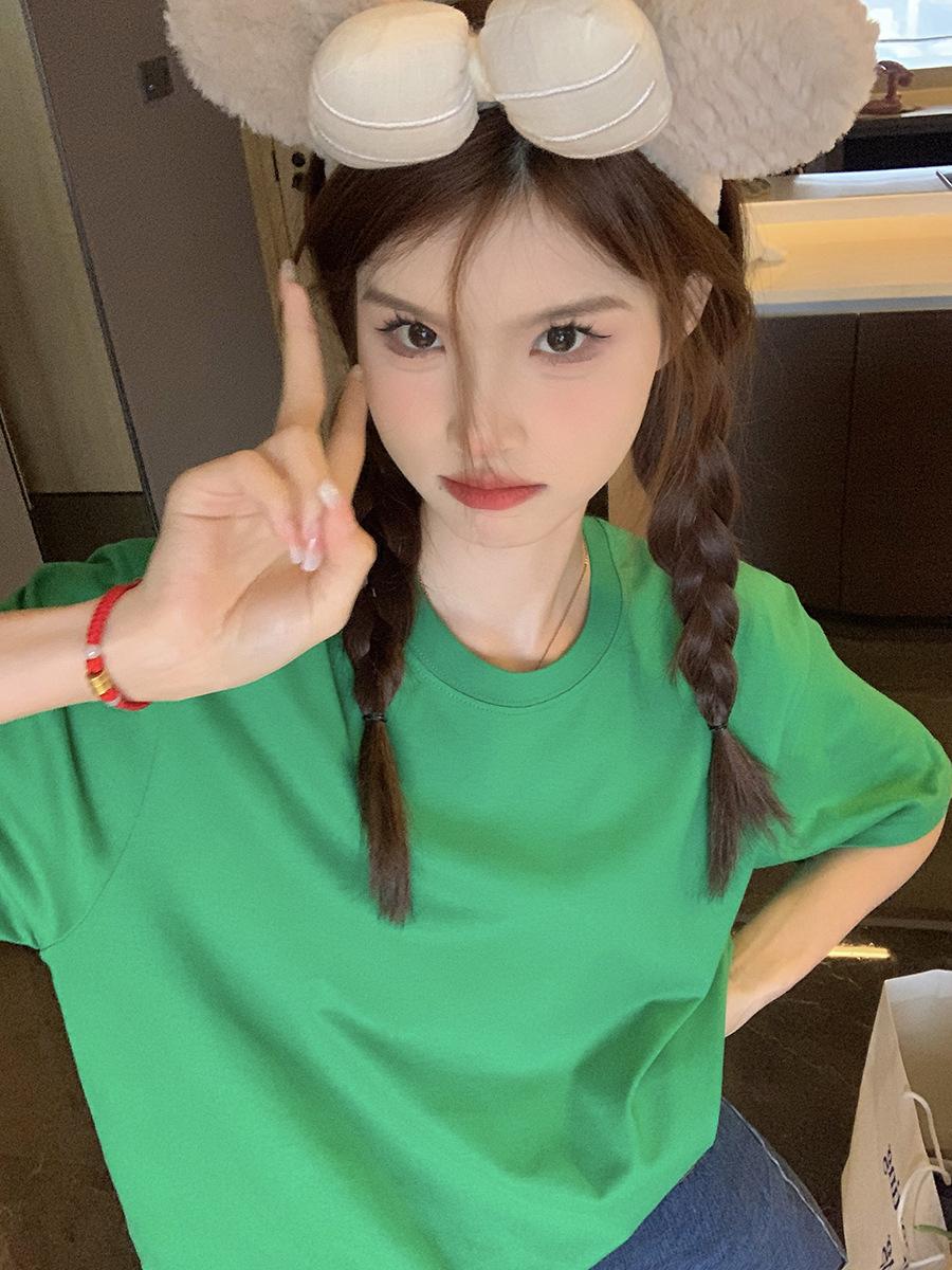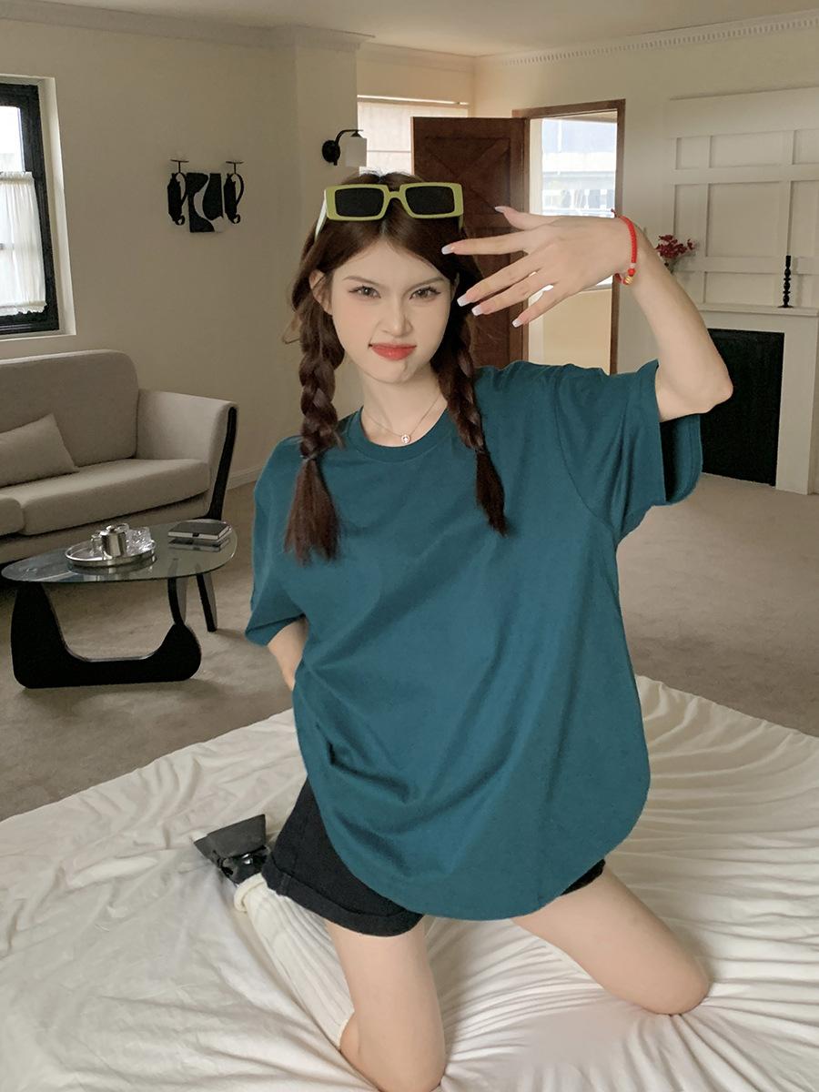 Camiseta de manga corta para mujer, verano 2023, nueva camiseta informal de color sólido, top blanco holgado de algodón para estudiantes, ropa para parejas
