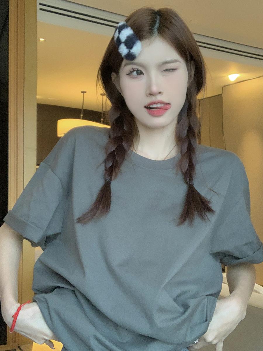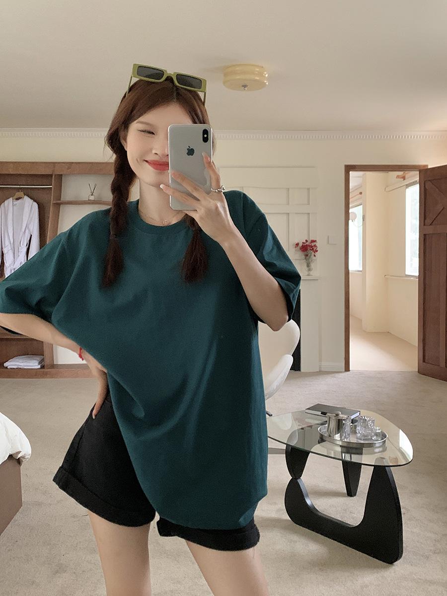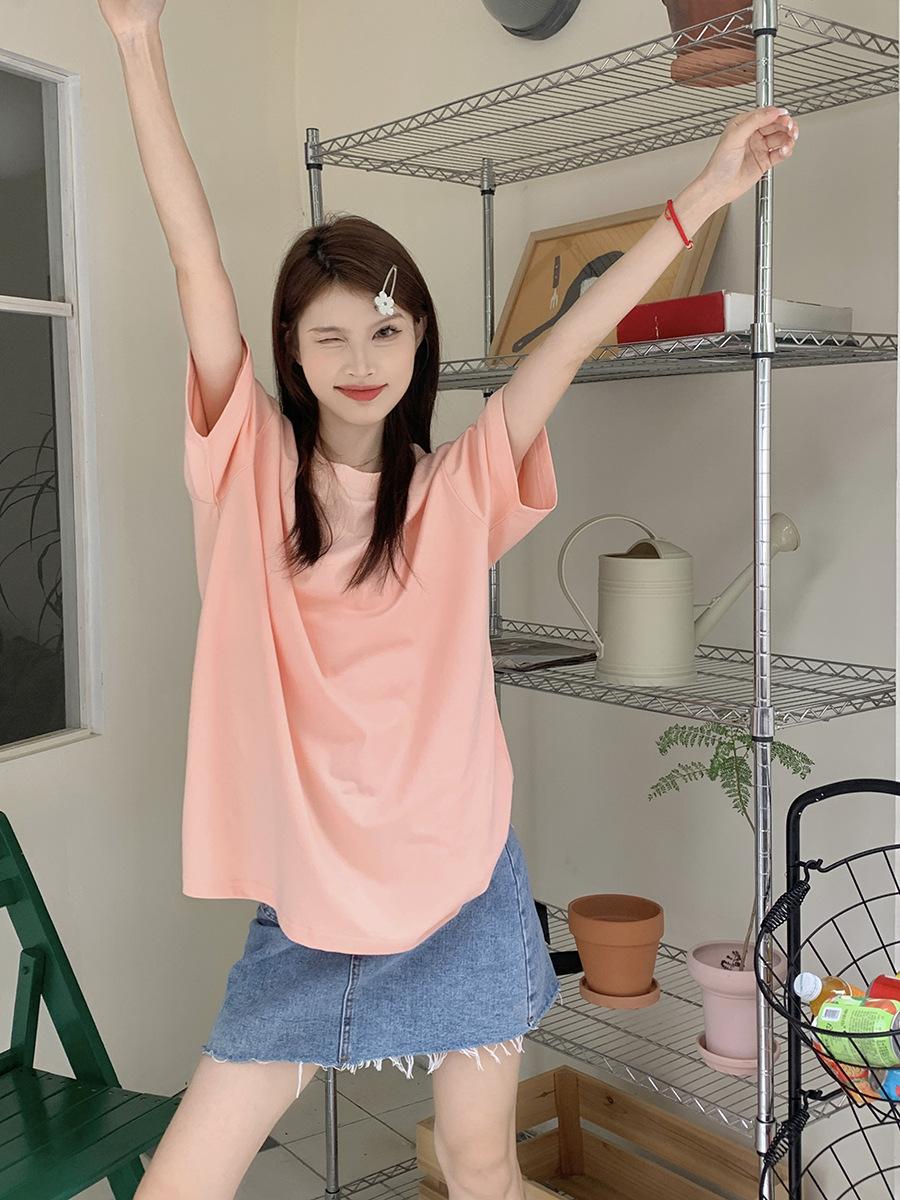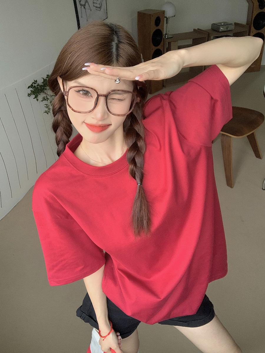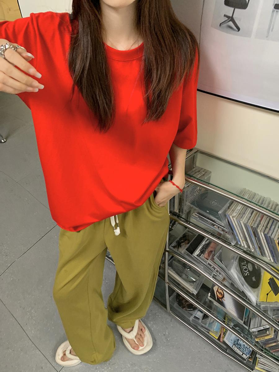 Camiseta de manga corta para mujer, verano 2023, nueva camiseta informal de color sólido, top blanco holgado de algodón para estudiantes, ropa para parejas