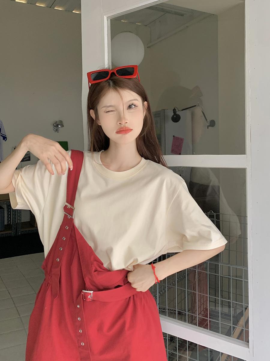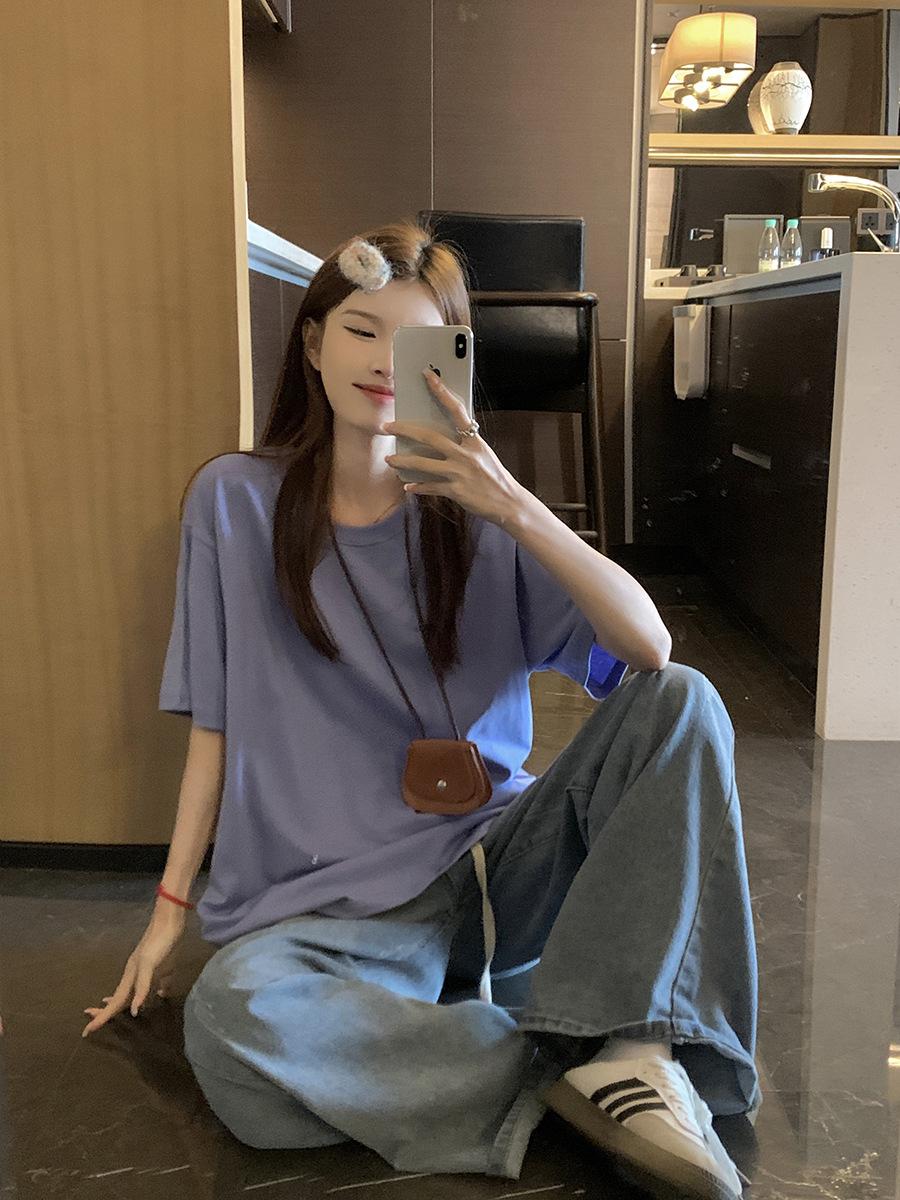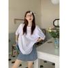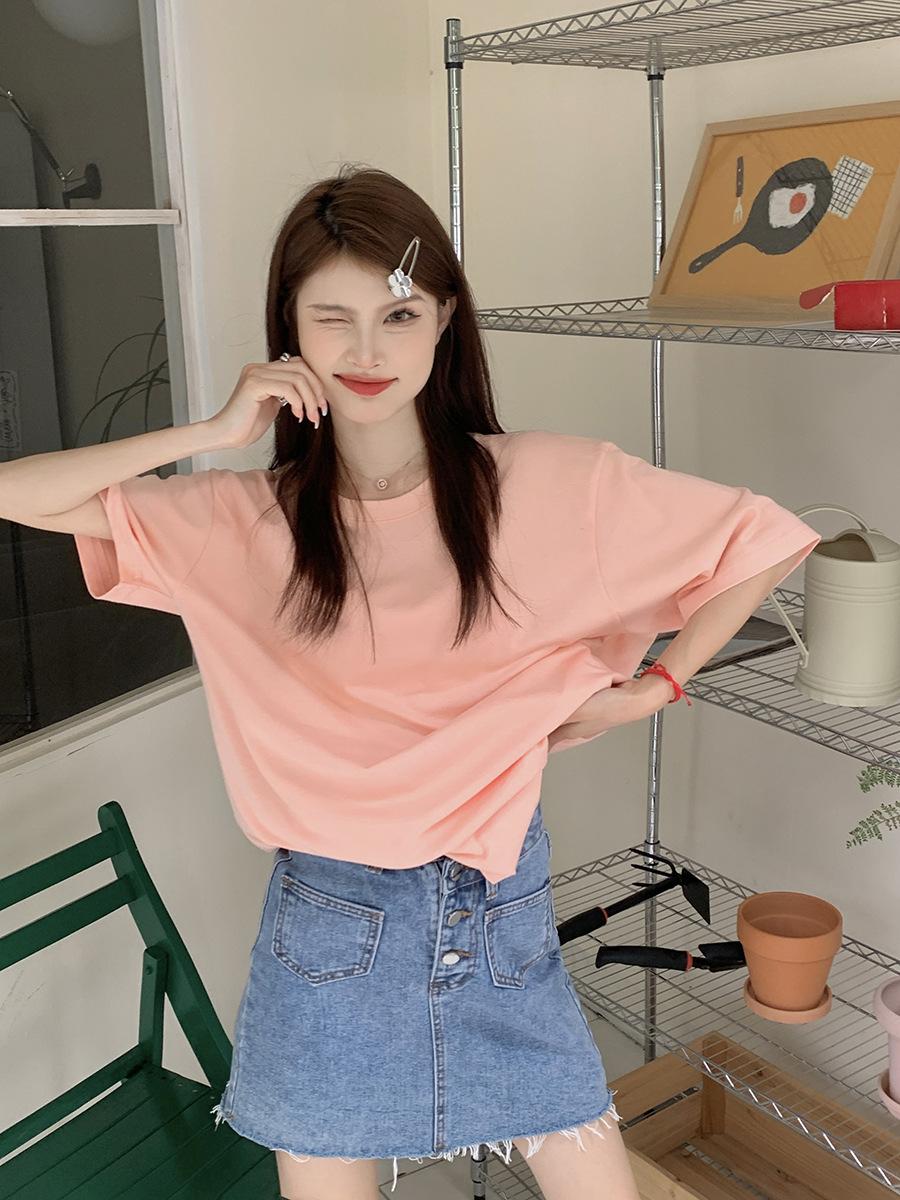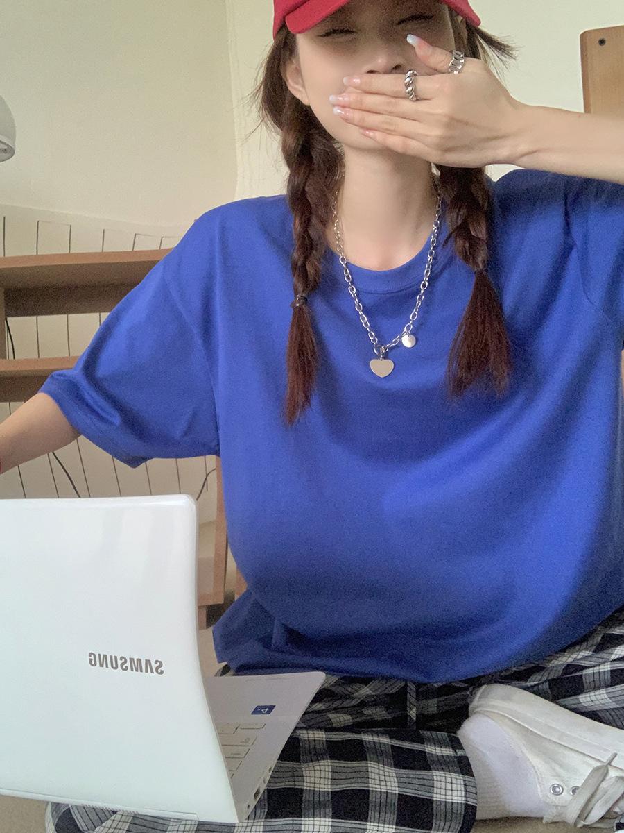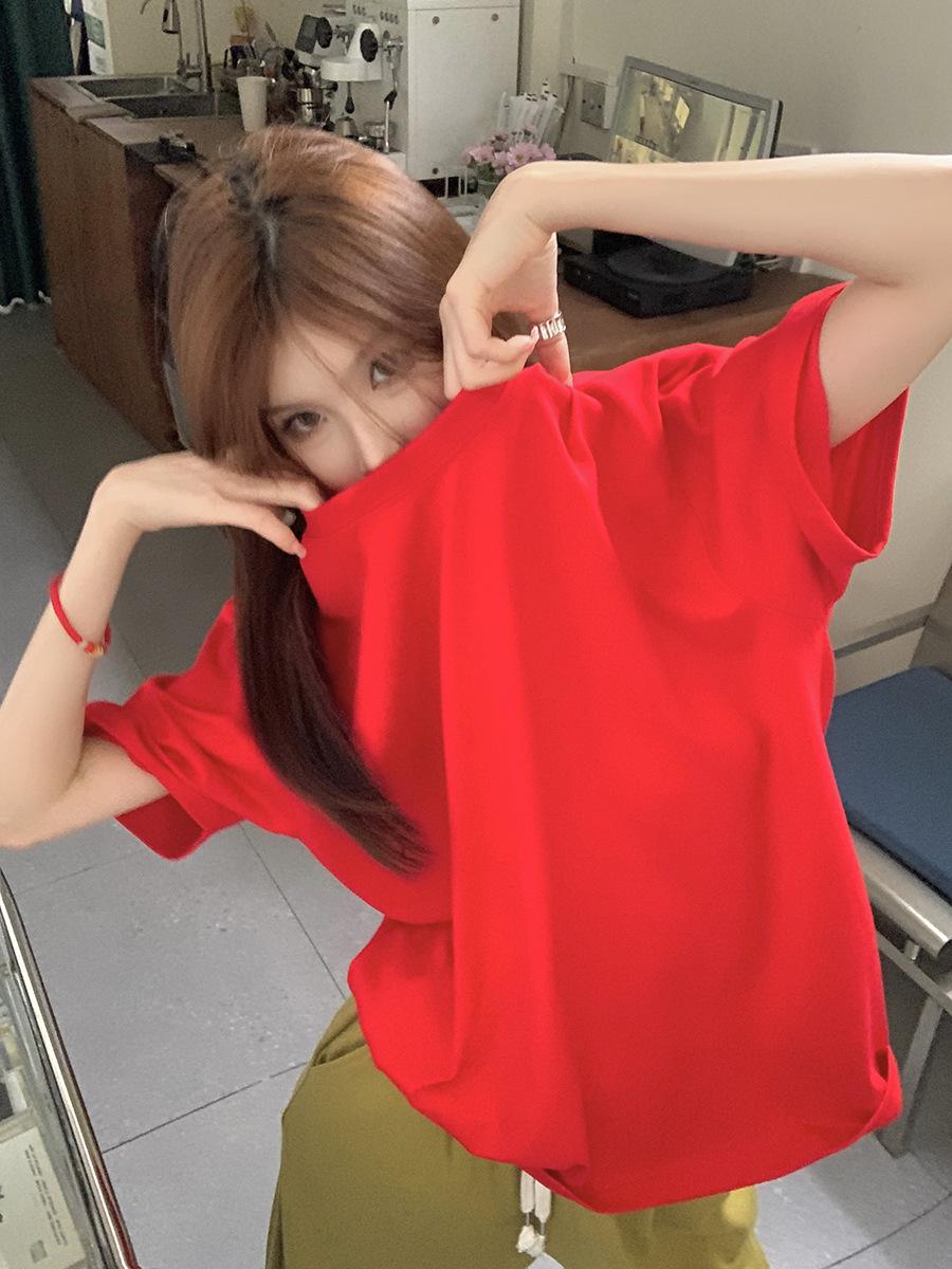 Camiseta de manga corta para mujer, verano 2023, nueva camiseta informal de color sólido, top blanco holgado de algodón para estudiantes, ropa para parejas