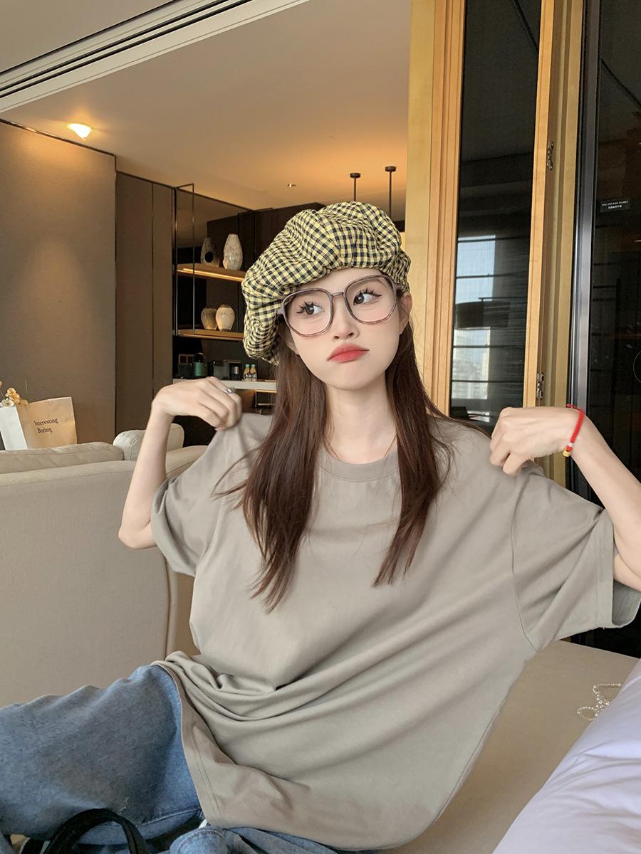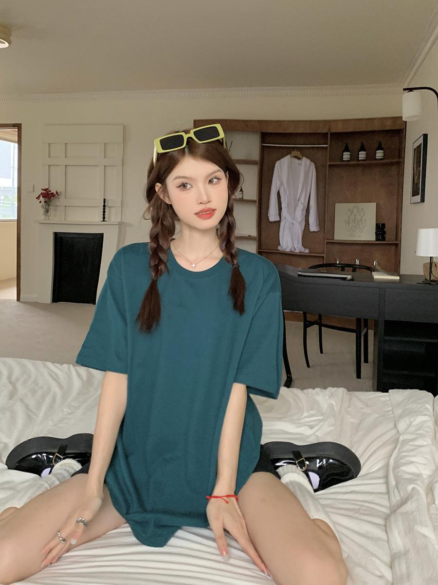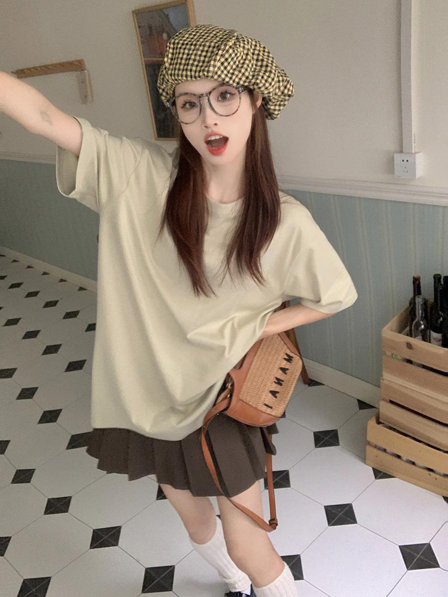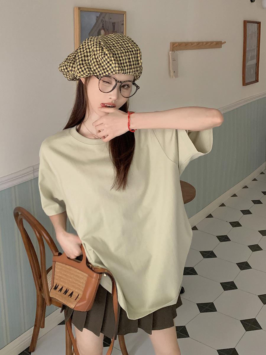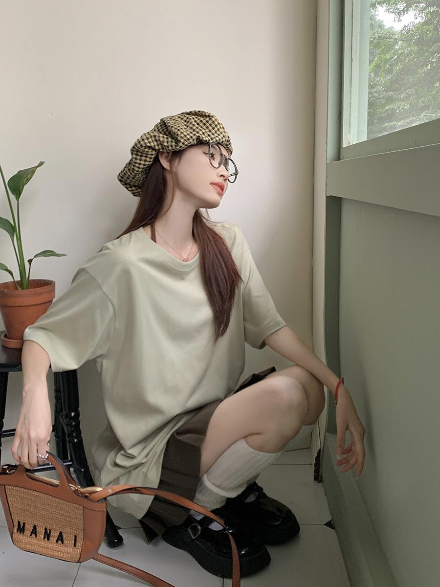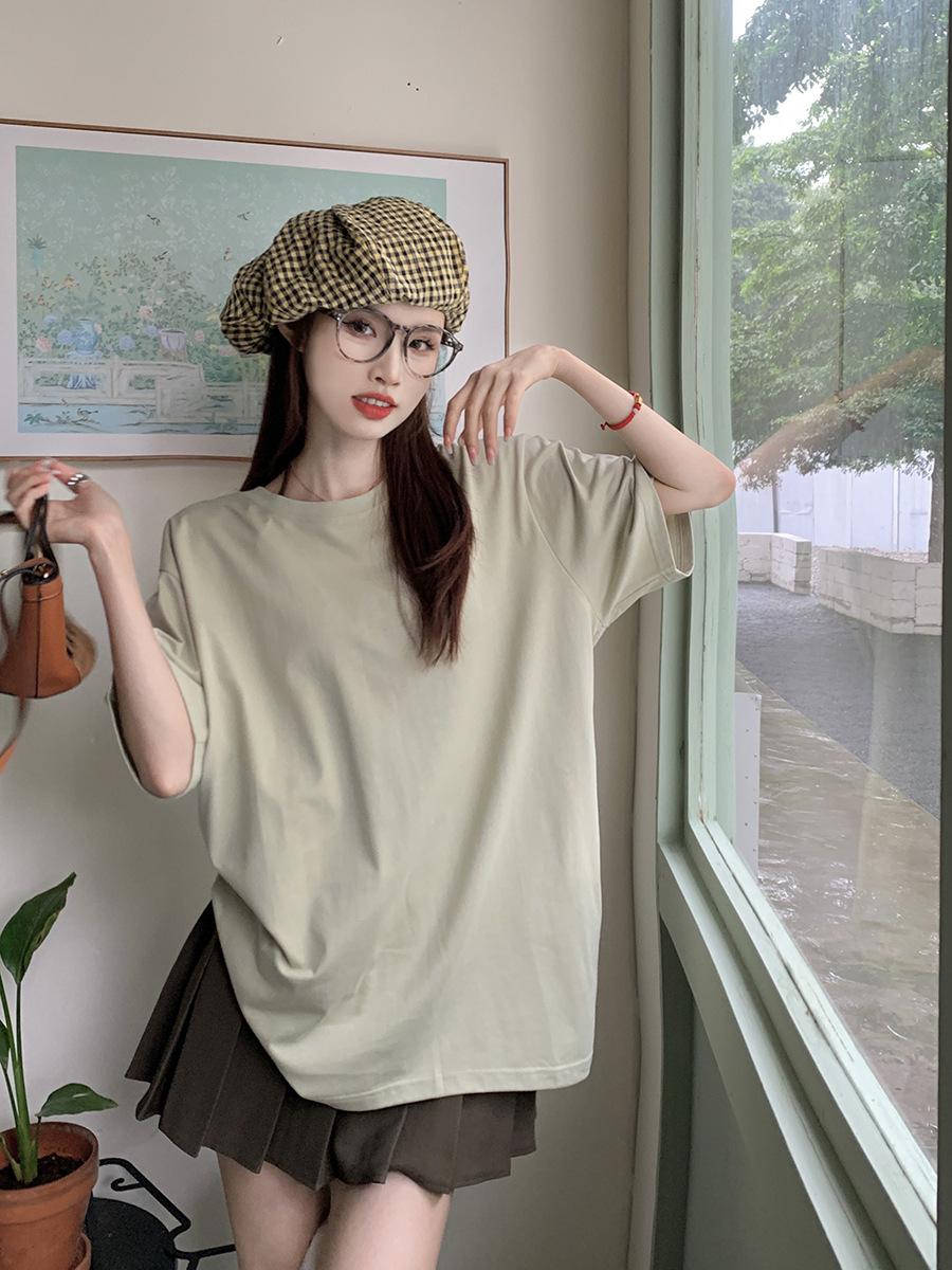 Camiseta de manga corta para mujer, verano 2023, nueva camiseta informal de color sólido, top blanco holgado de algodón para estudiantes, ropa para parejas