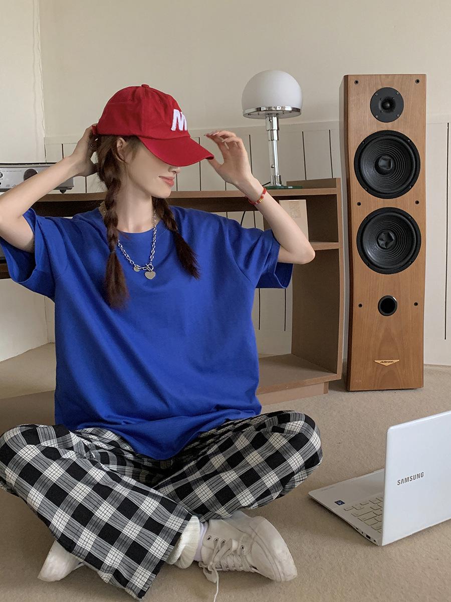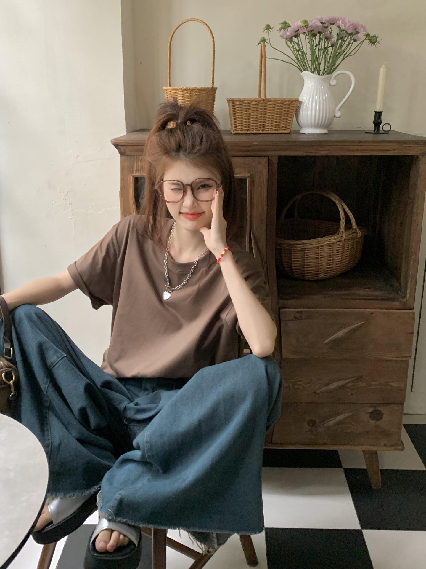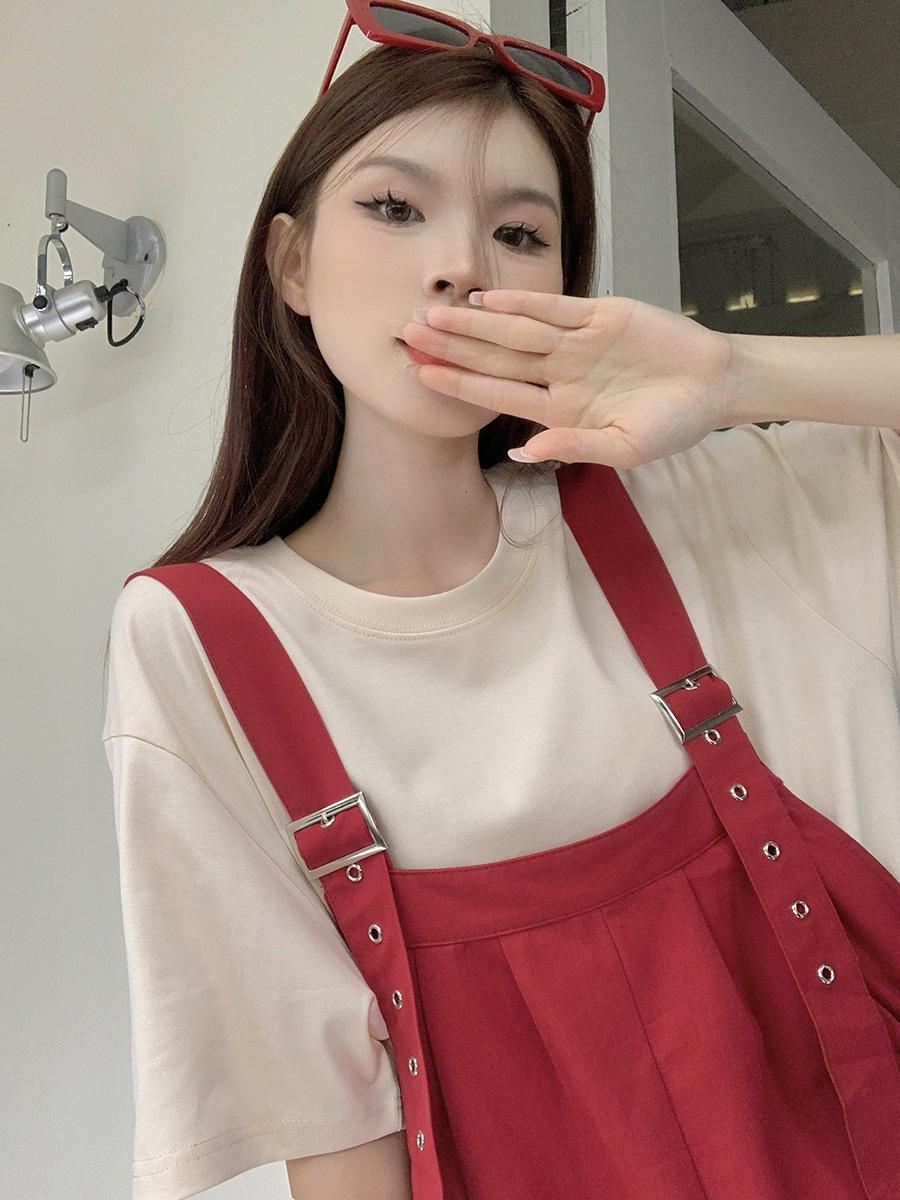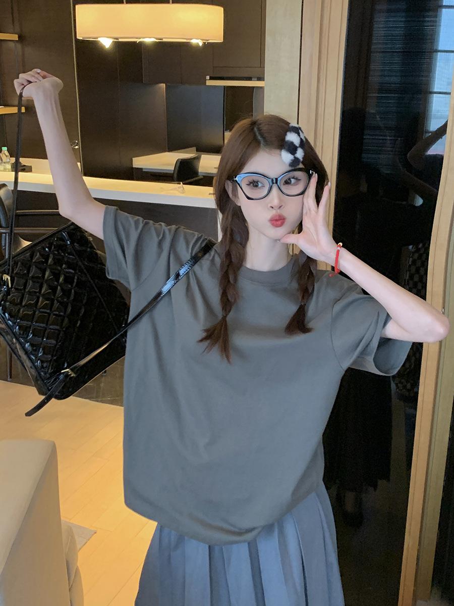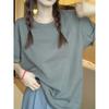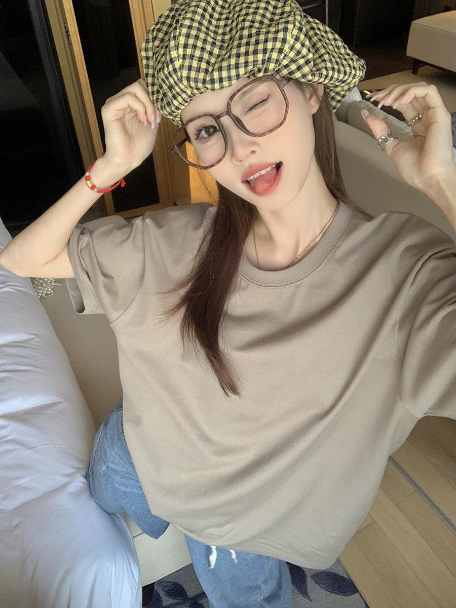 Camiseta de manga corta para mujer, verano 2023, nueva camiseta informal de color sólido, top blanco holgado de algodón para estudiantes, ropa para parejas